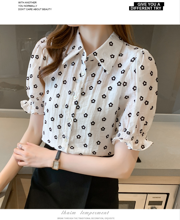 实拍有视频2021夏季新款时尚百搭短袖雪纺衫