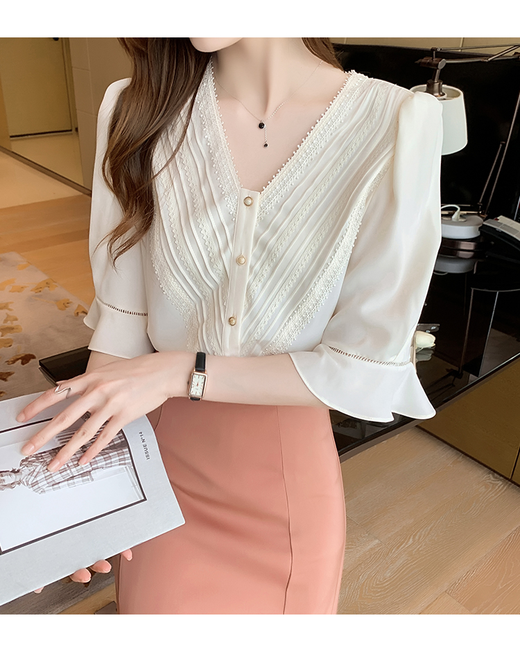 2021实拍◆◆有现货◆◆新款夏款短袖雪纺衫女上衣时尚气质潮流遮肚子小衫