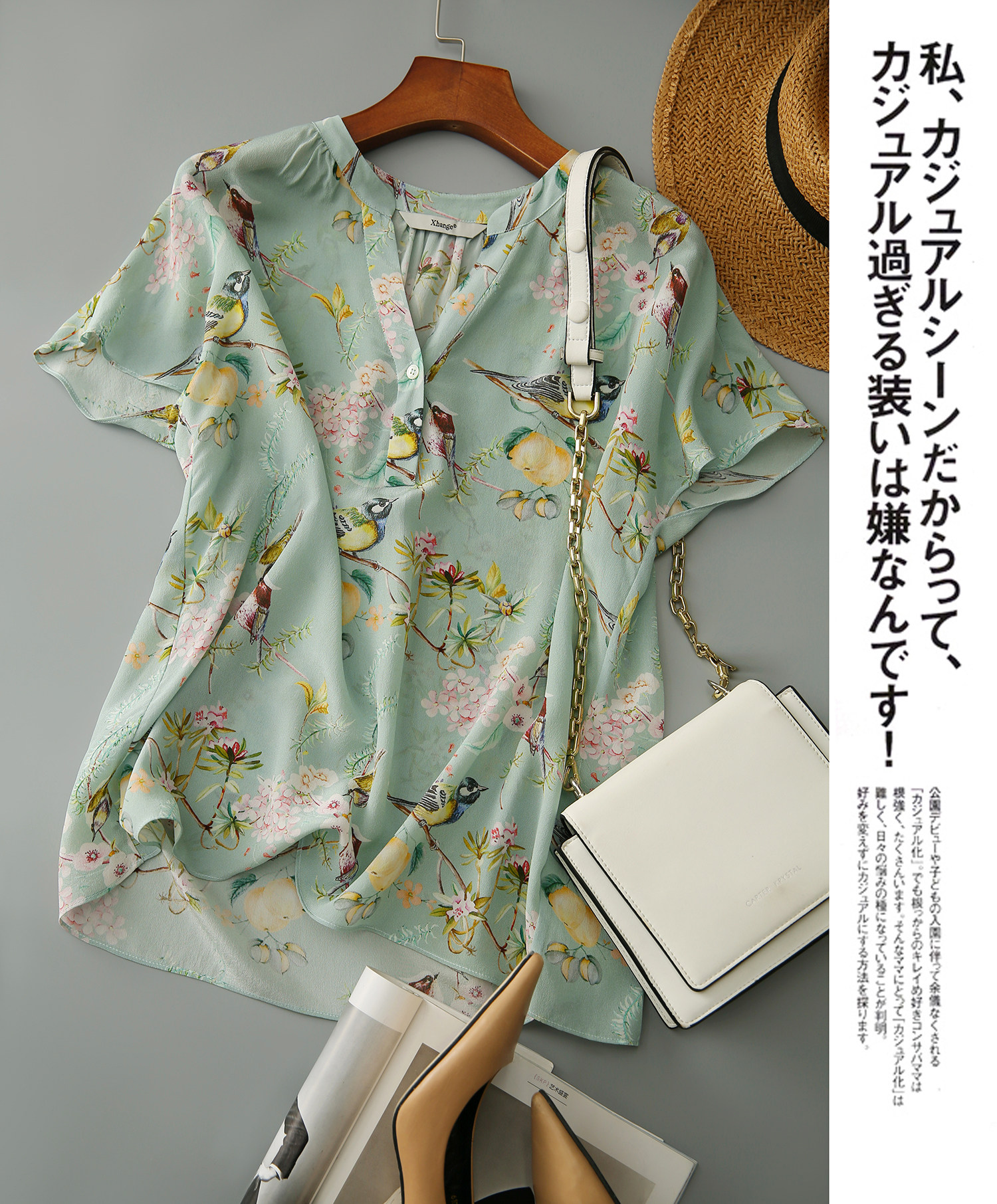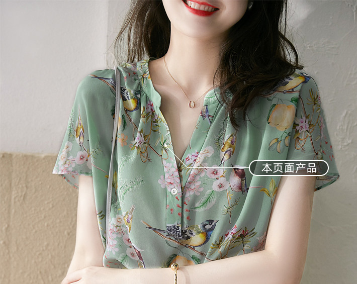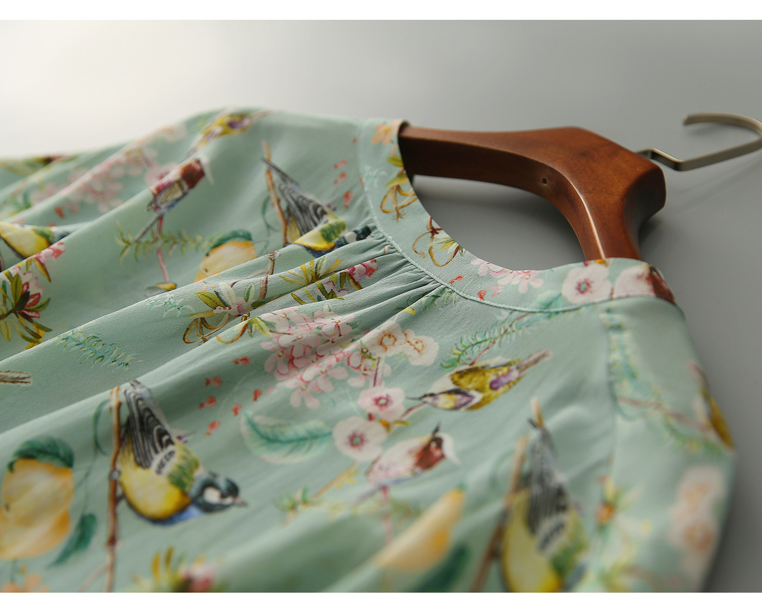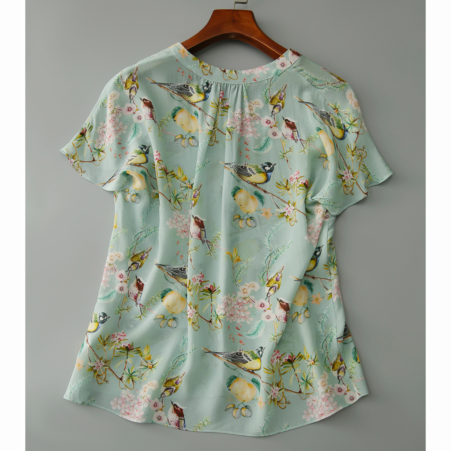 商品名称:[SY316427ML] 笑涵阁 自带清凉感 小清新花鸟印桑蚕丝上衣 面料成分:100%桑蚕丝 洗涤保养:常温手洗/不可漂白/阴凉处悬挂晾干/不可翻转干燥