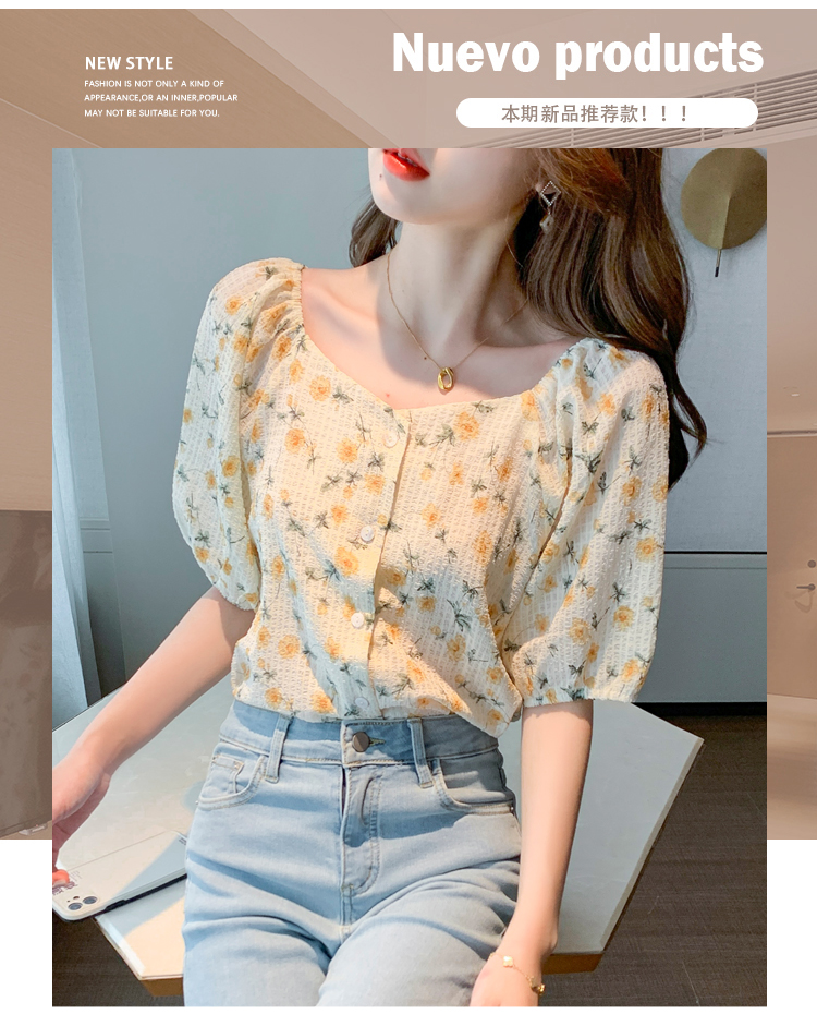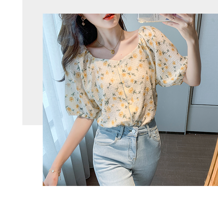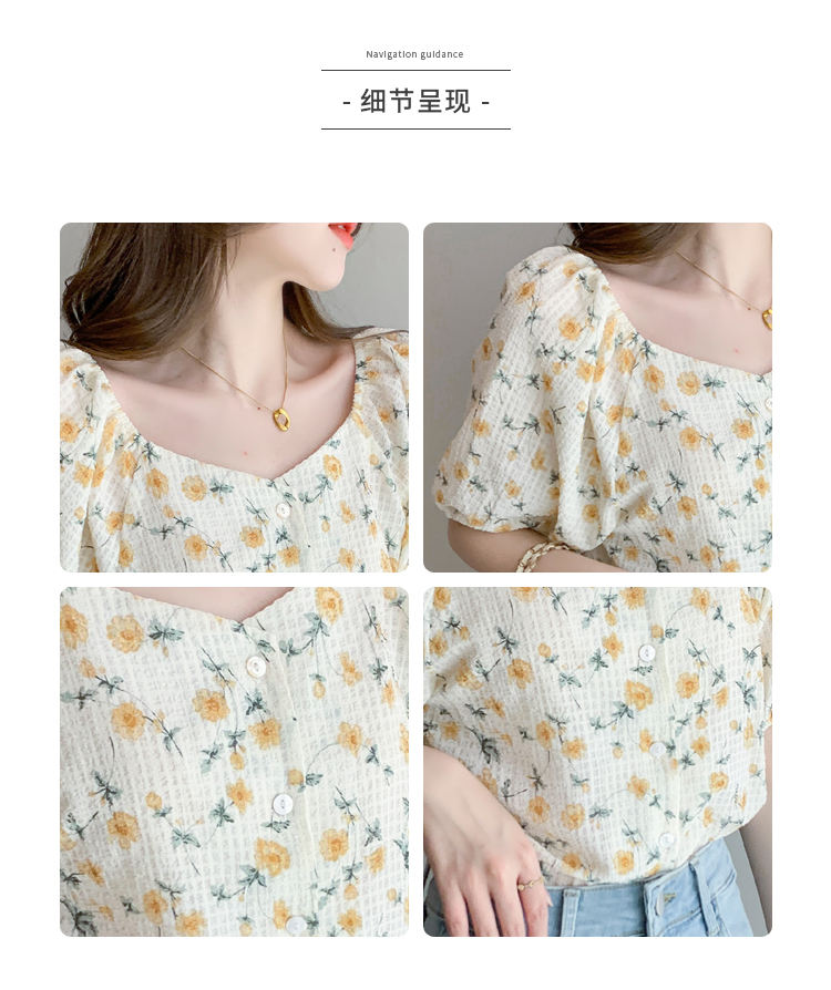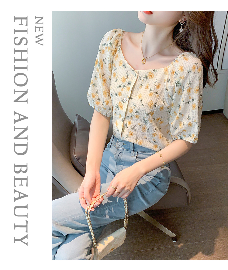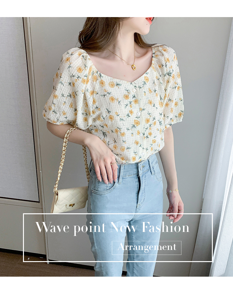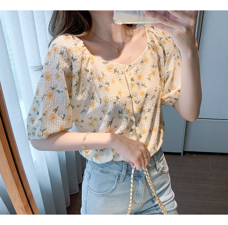 实拍2021夏季新款韩版百搭印花短袖小个子衬衫女上衣夏