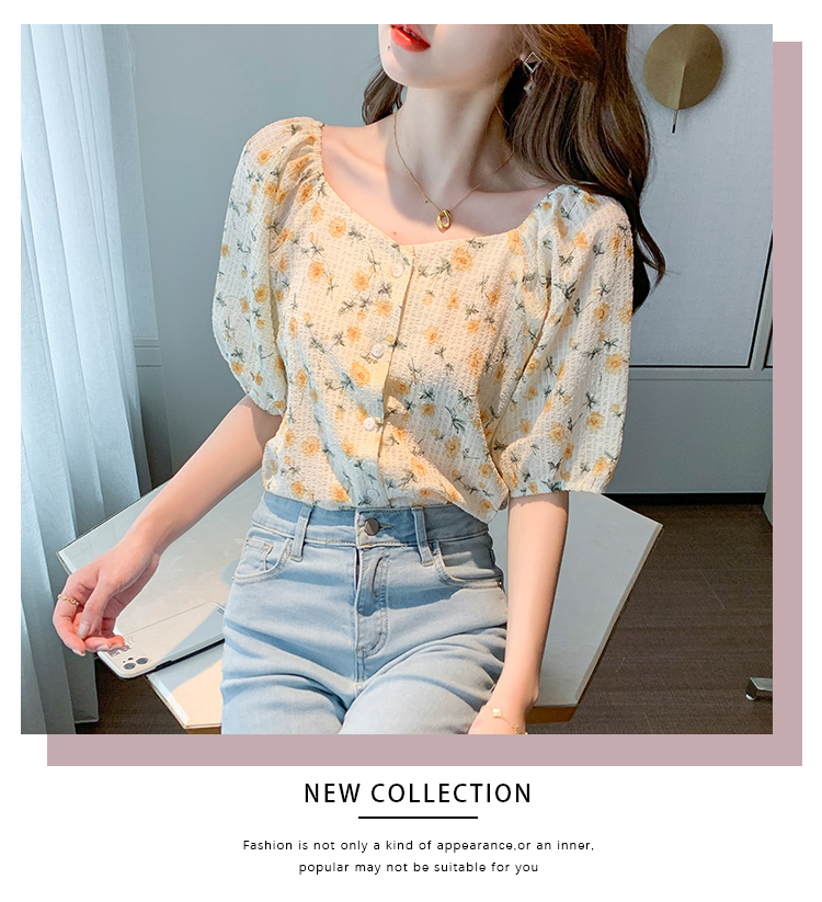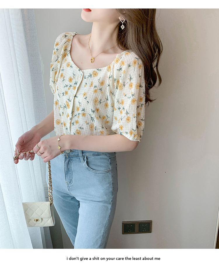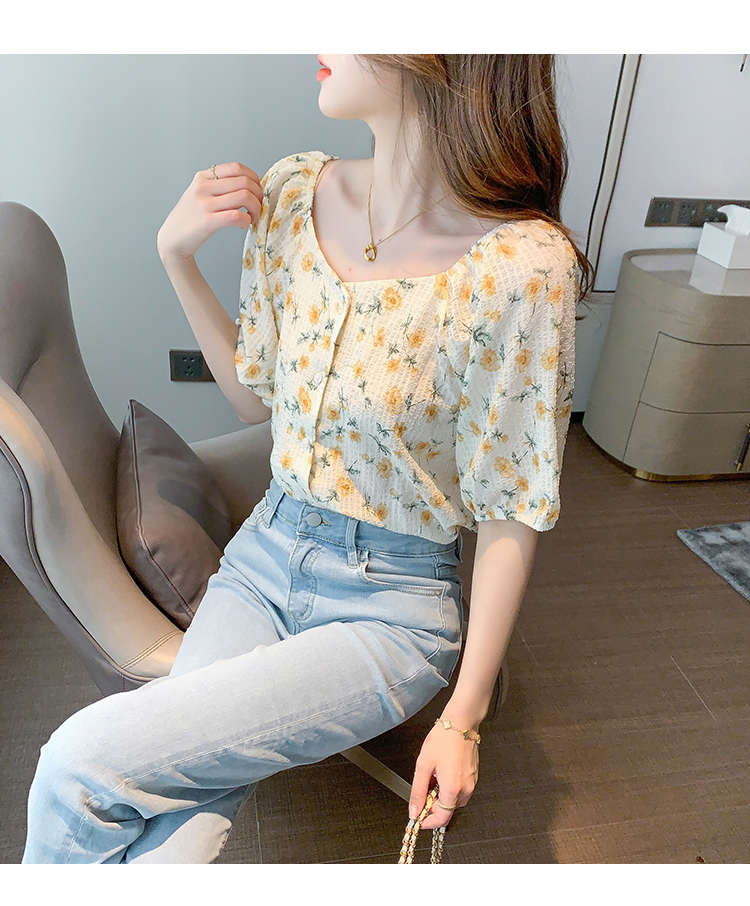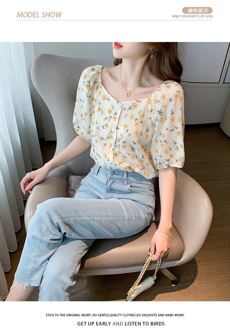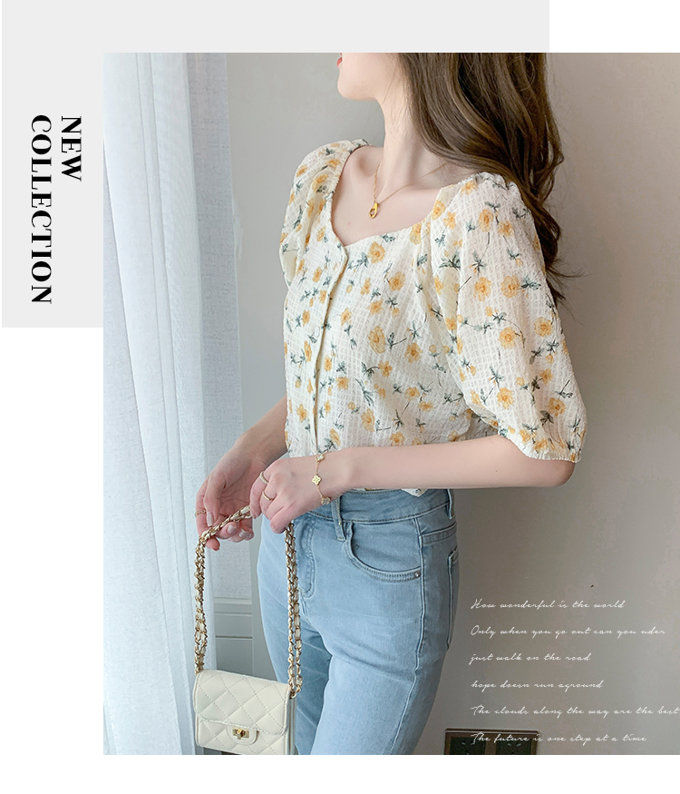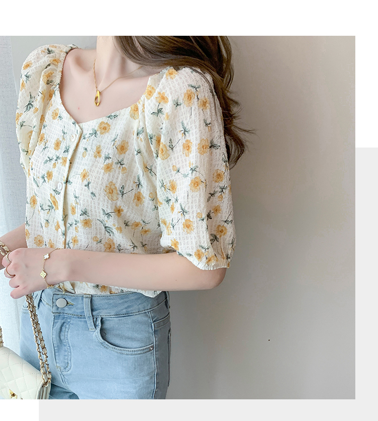 实拍2021夏季新款韩版百搭印花短袖小个子衬衫女上衣夏