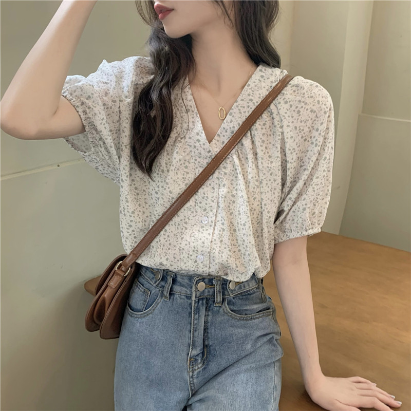 简约气质的韩版碎花衬衫