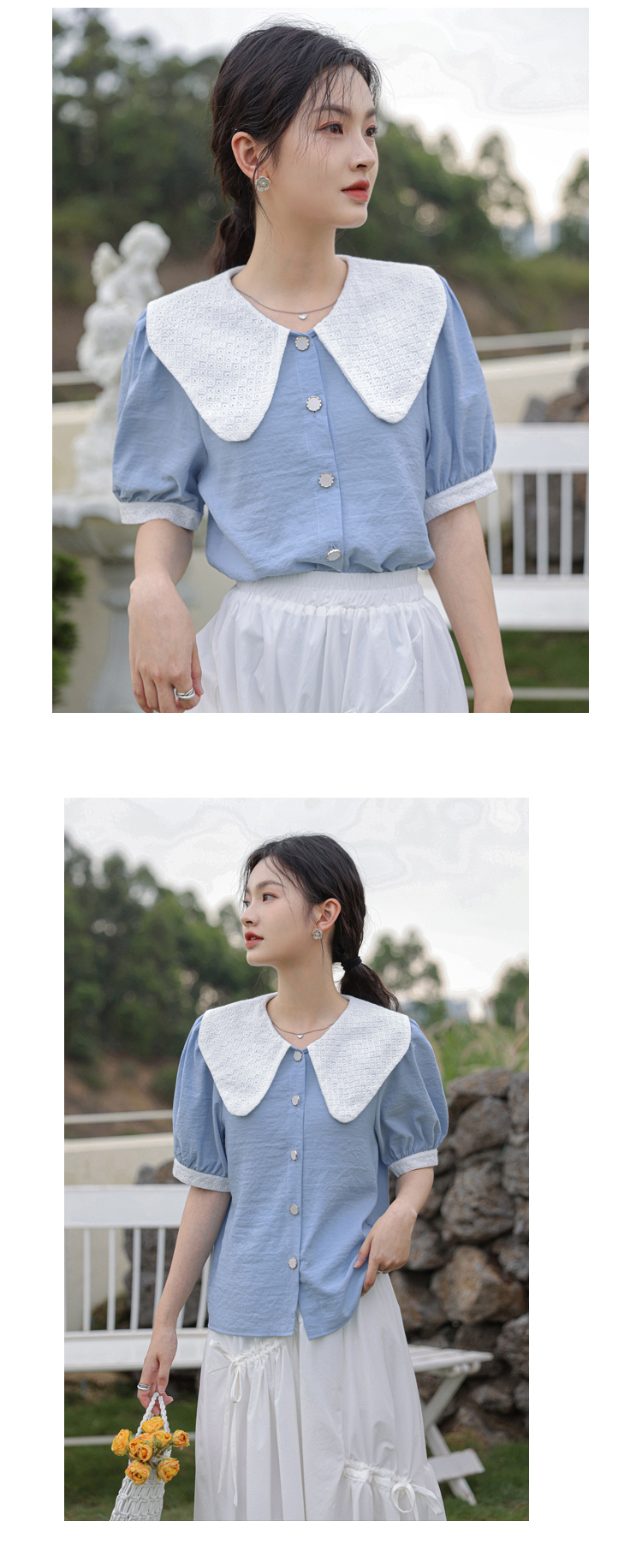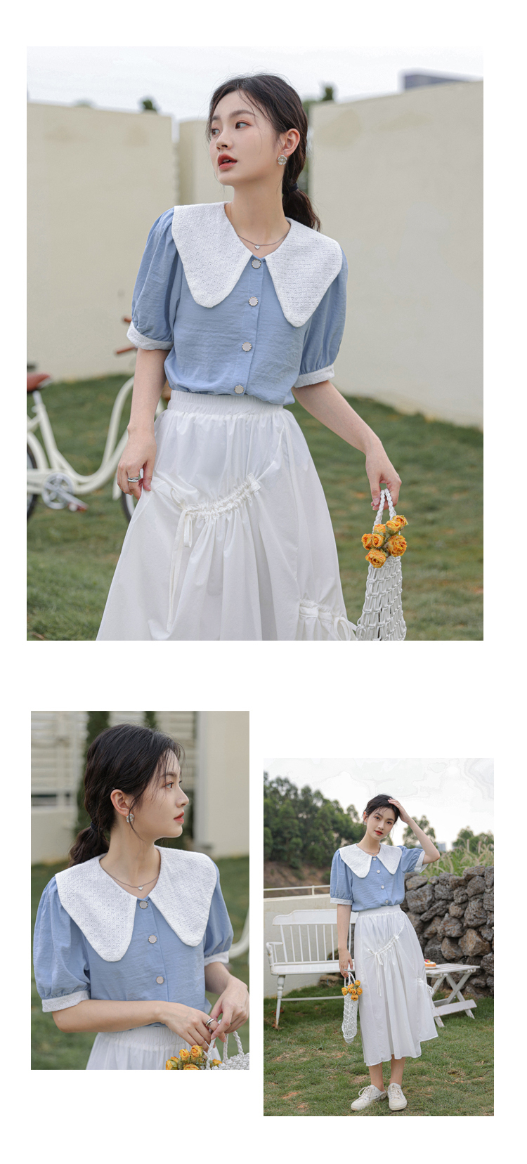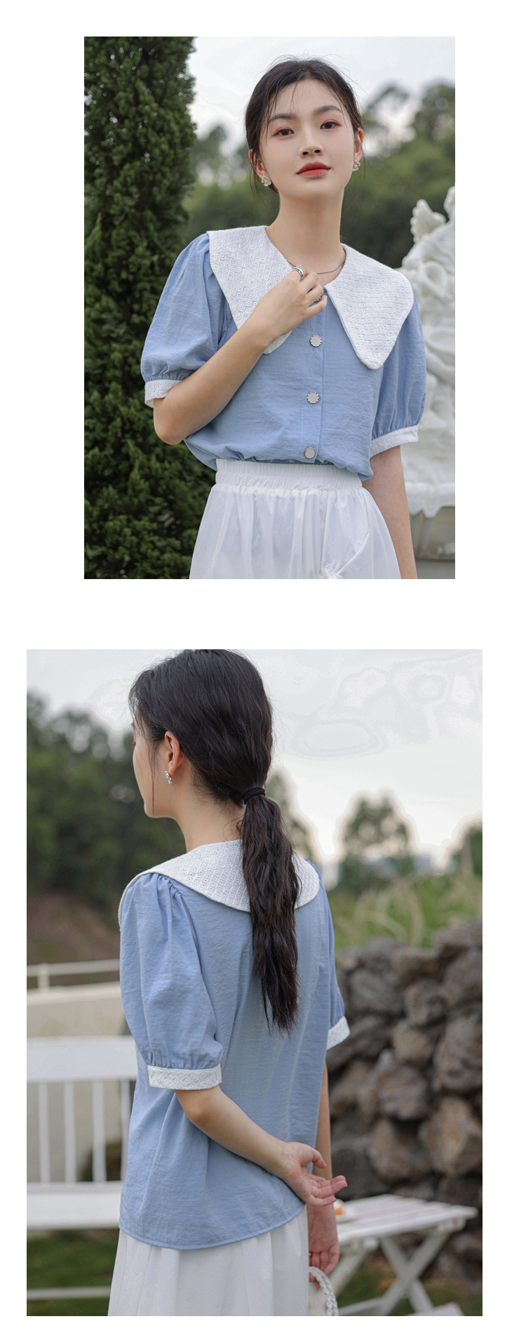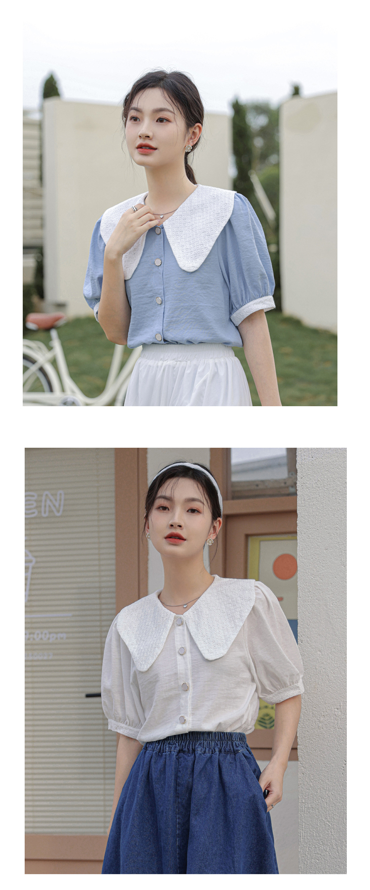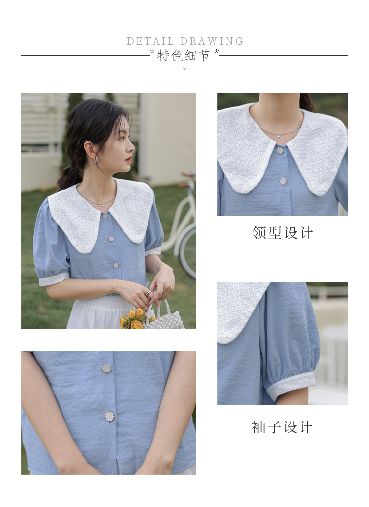 - 领型:娃娃领