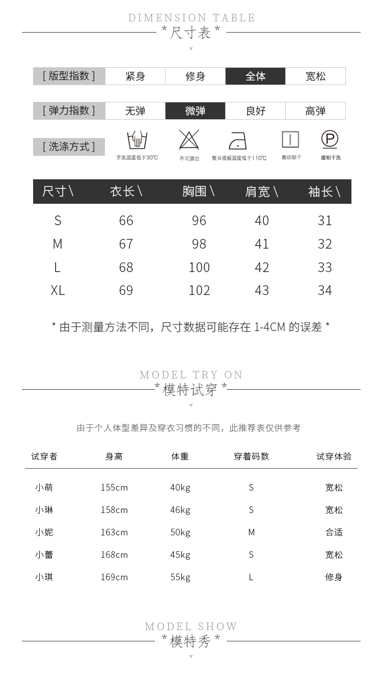 - 服装版型:修身