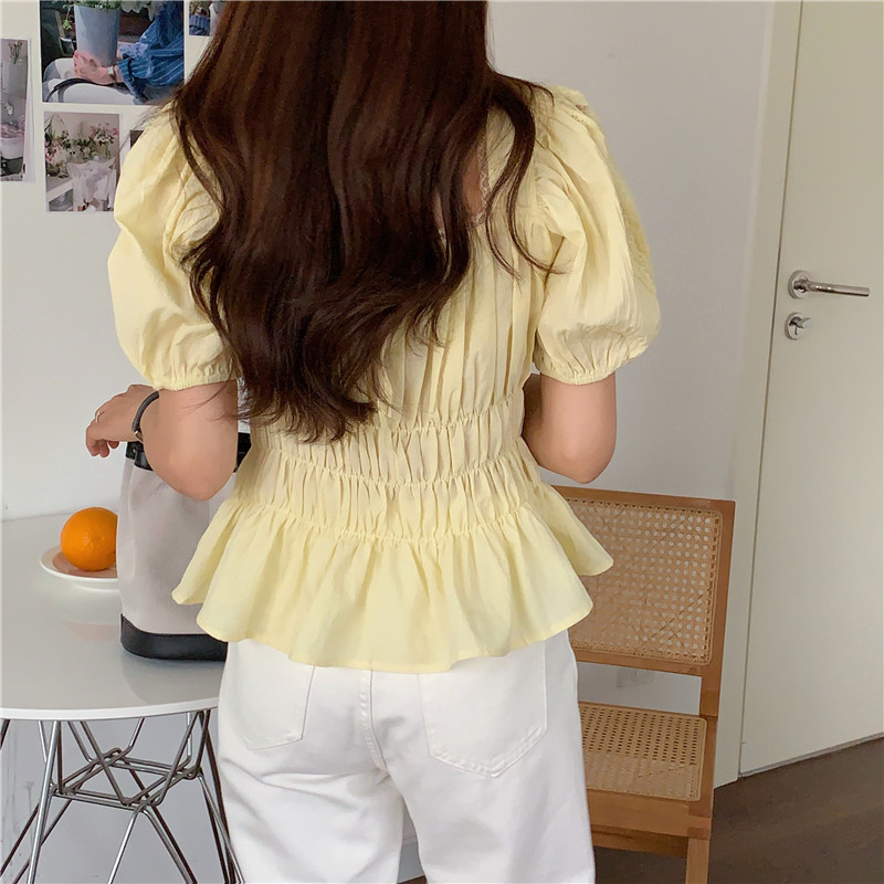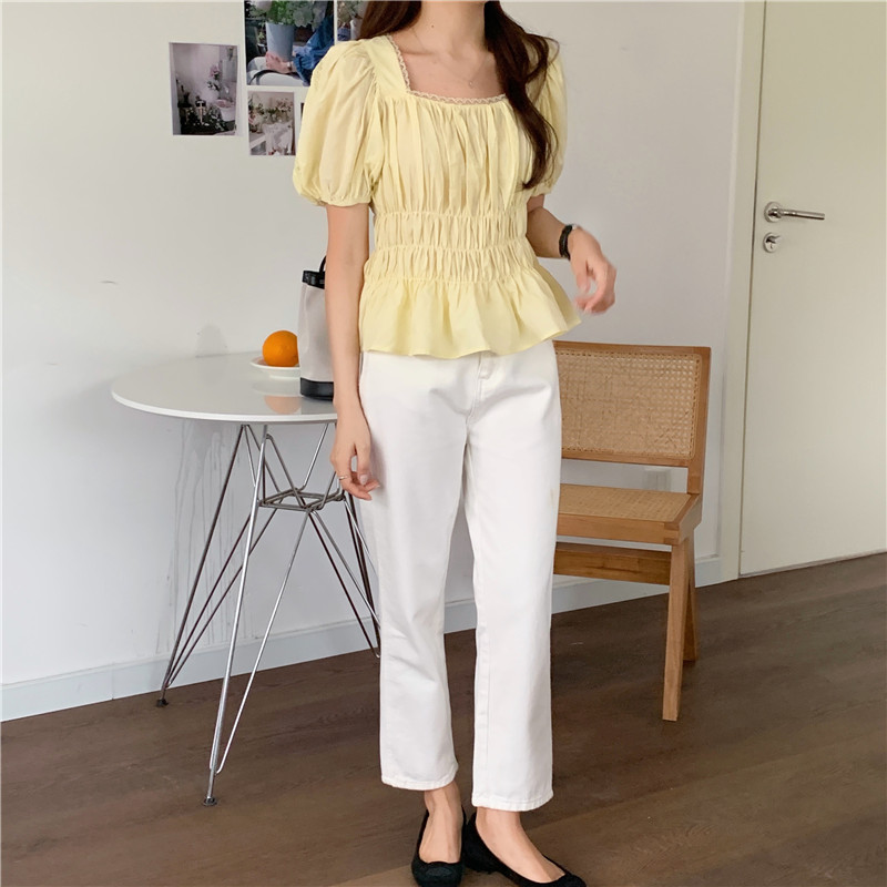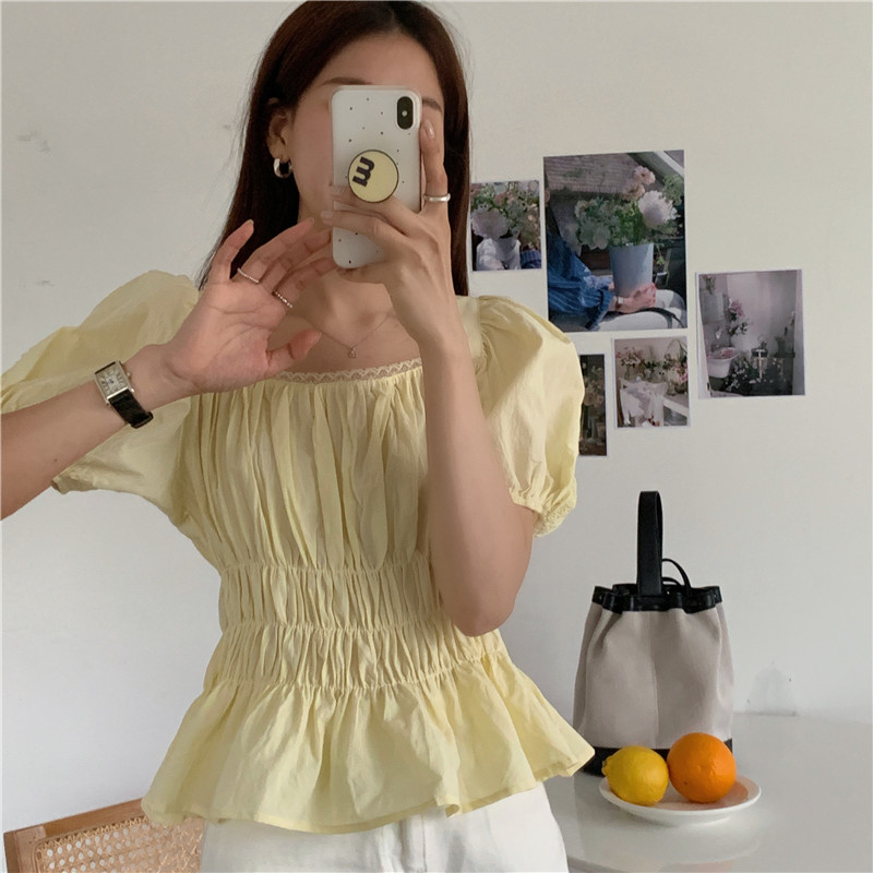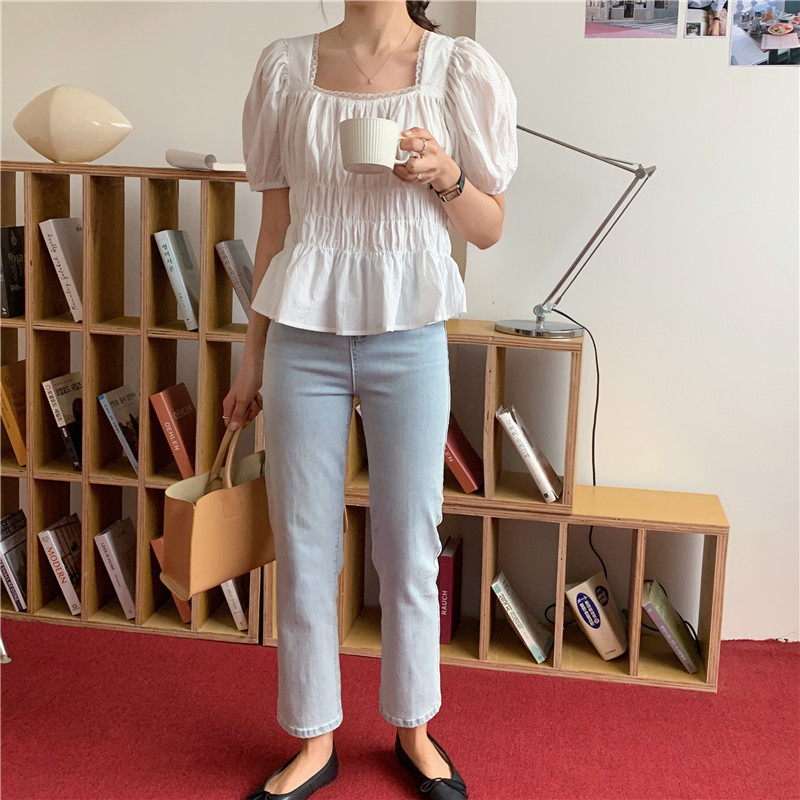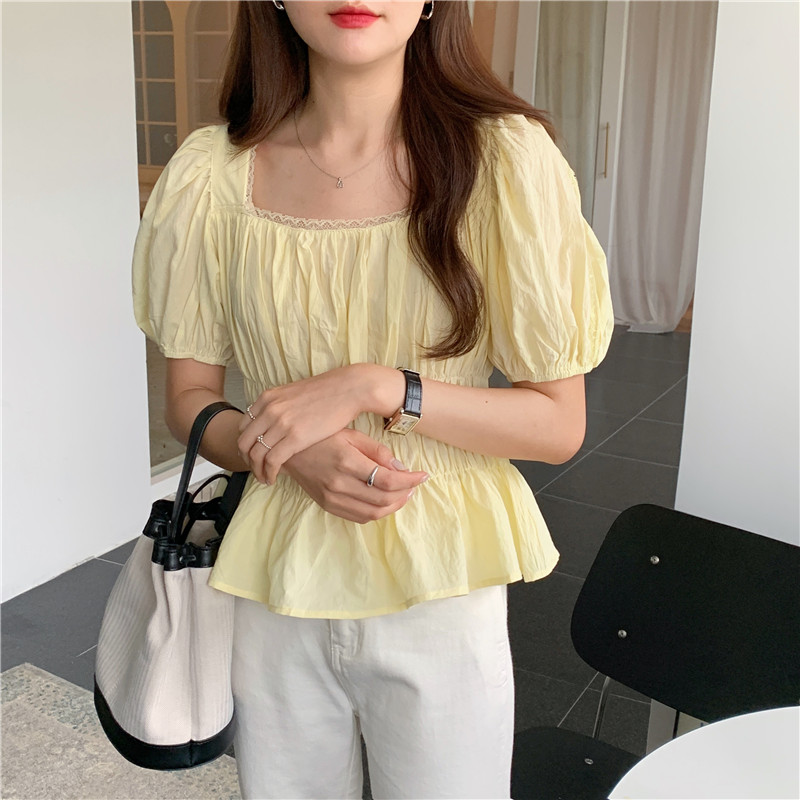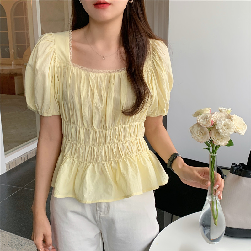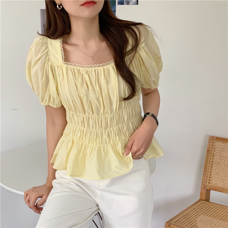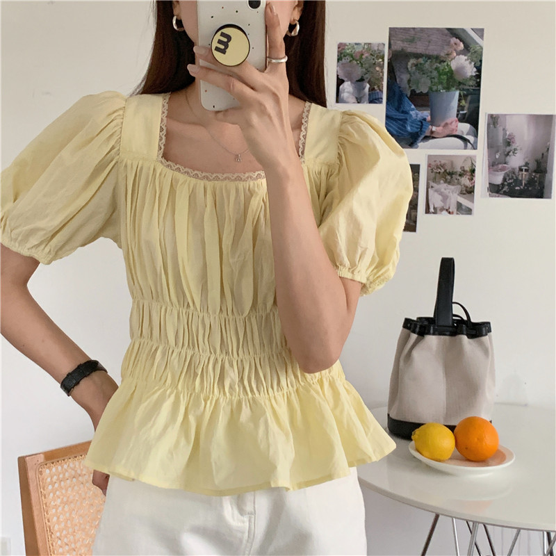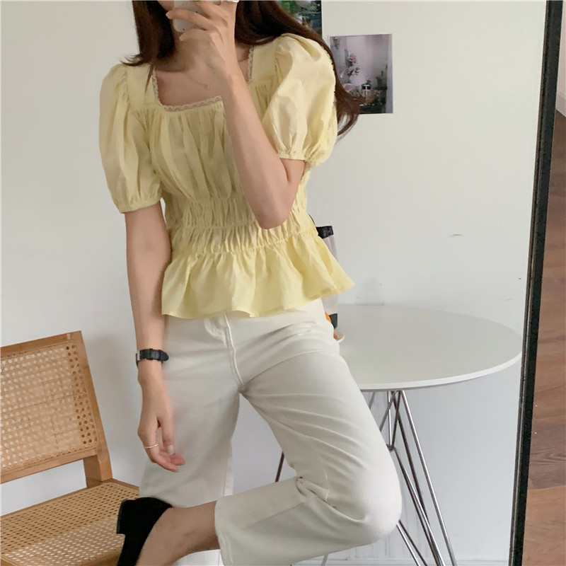 实拍实价 韩版法式浪漫花边拼接镂空短袖衬衫 2色现货