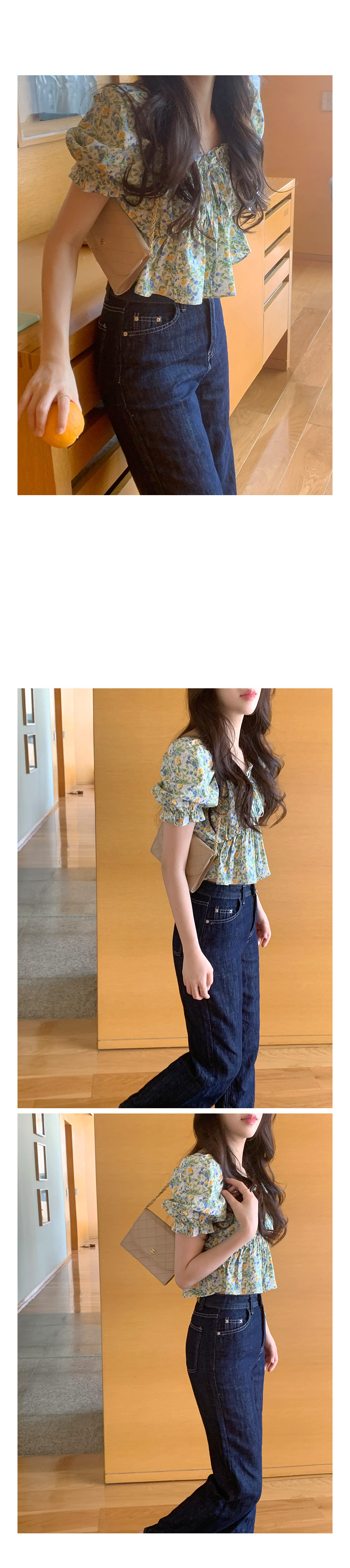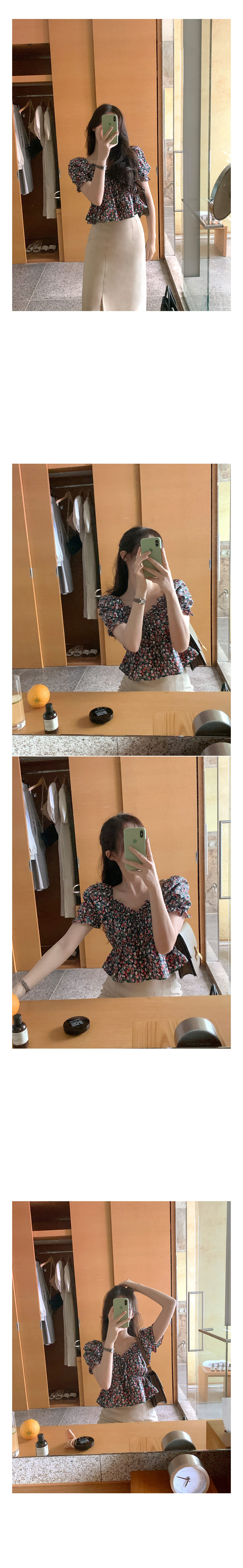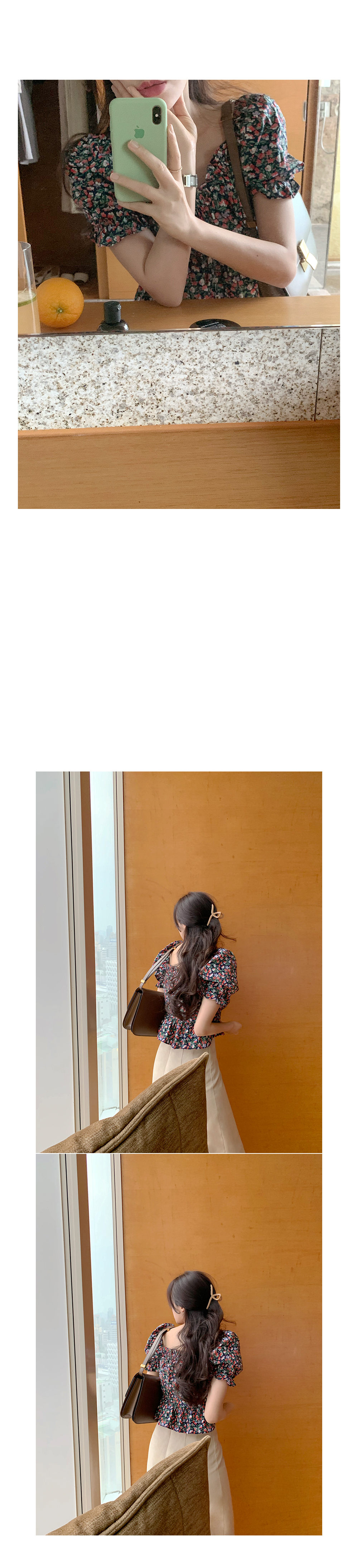 韩版 小碎花短款上衣短袖衬衫
