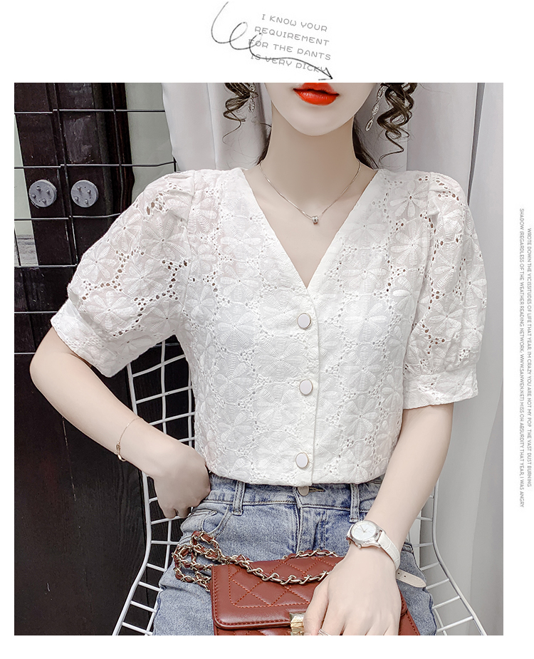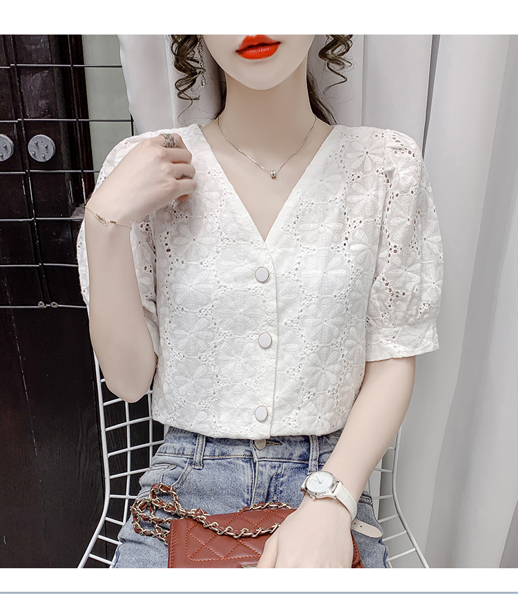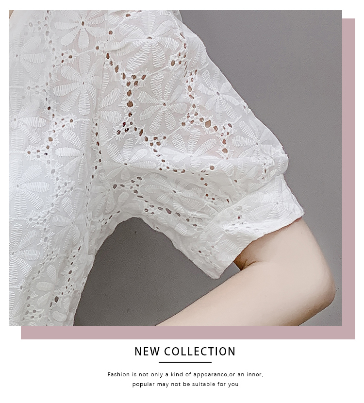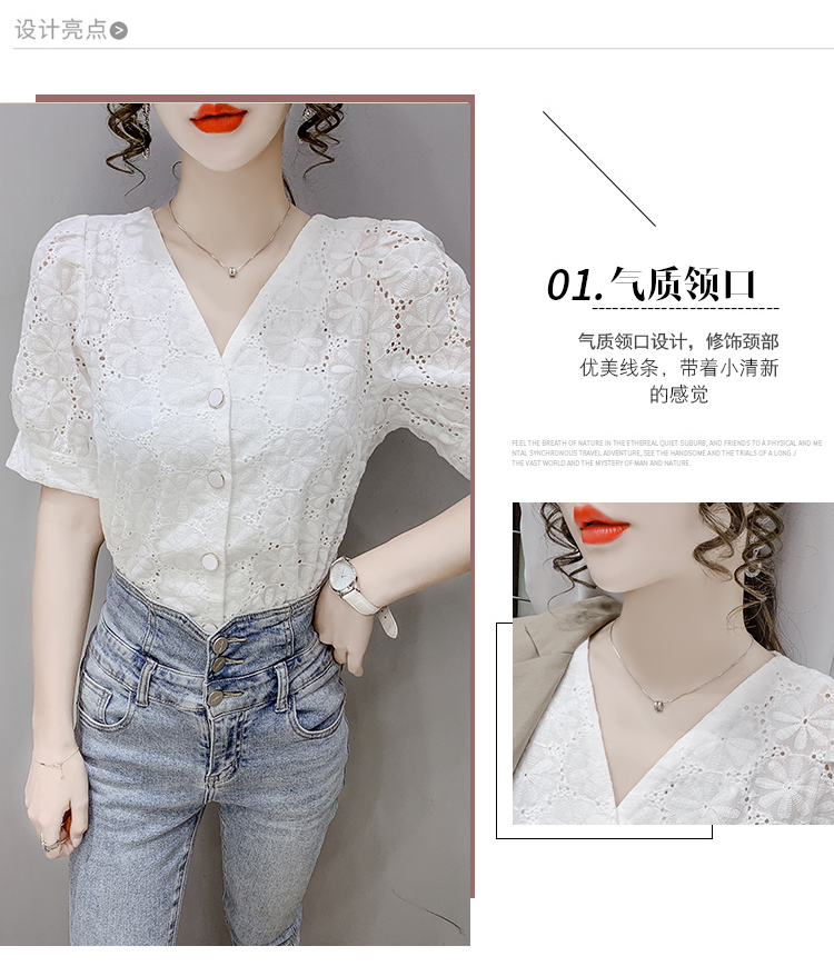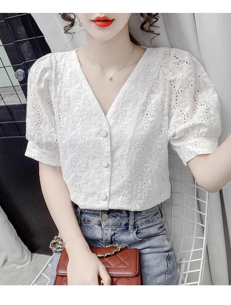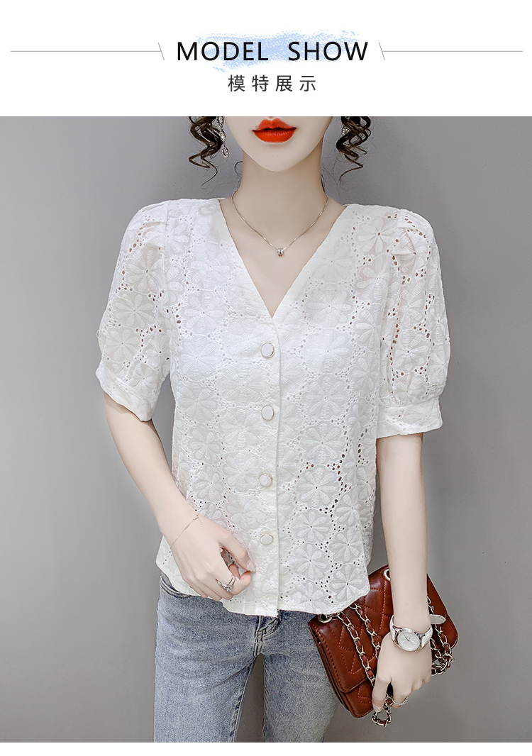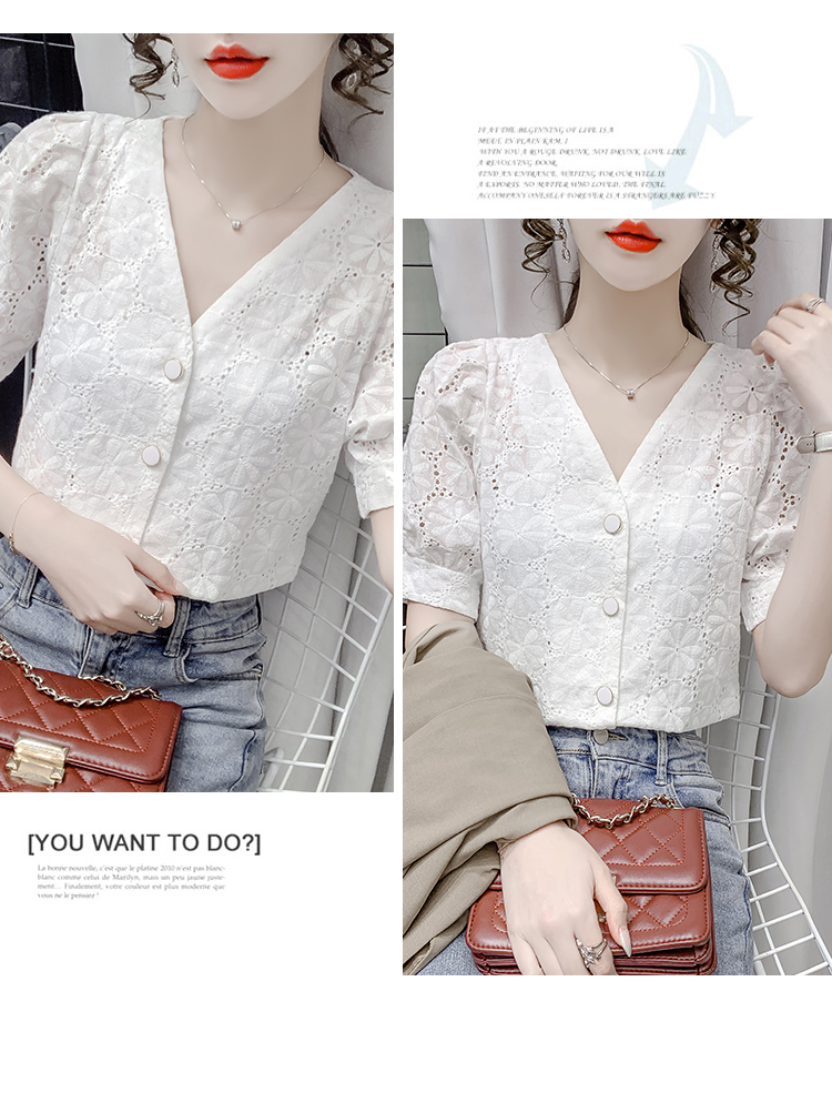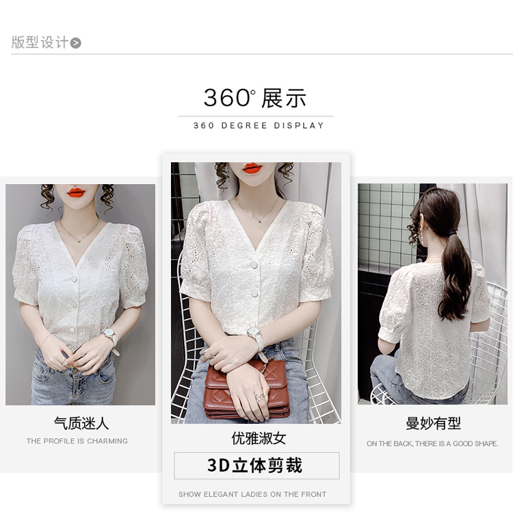 实拍2021夏季新款蕾丝衫女短袖时尚气质白色上衣女士小衫