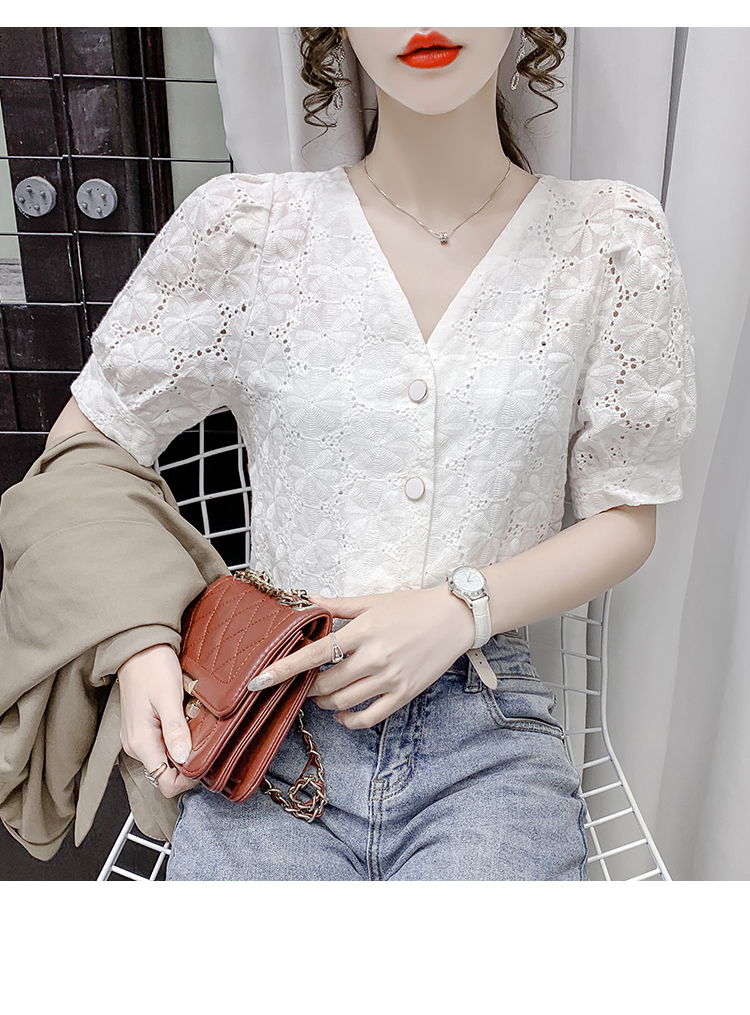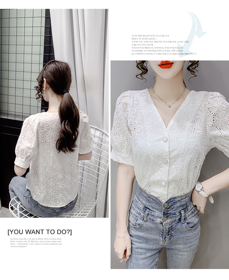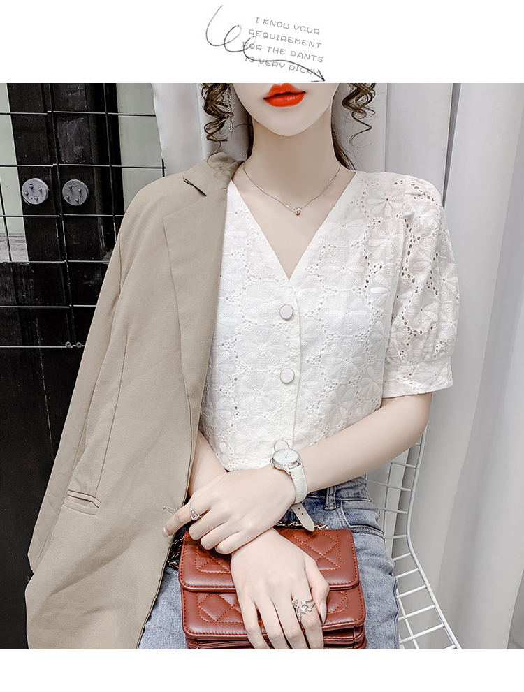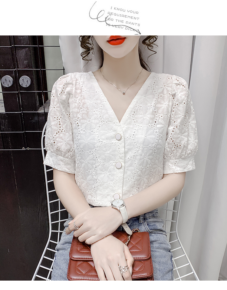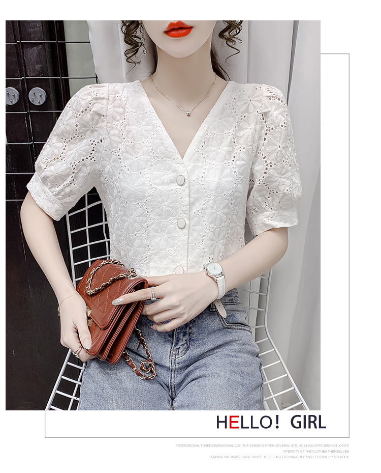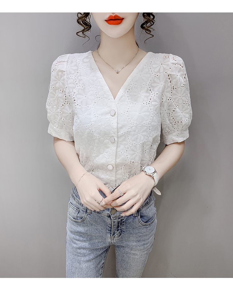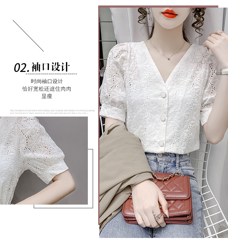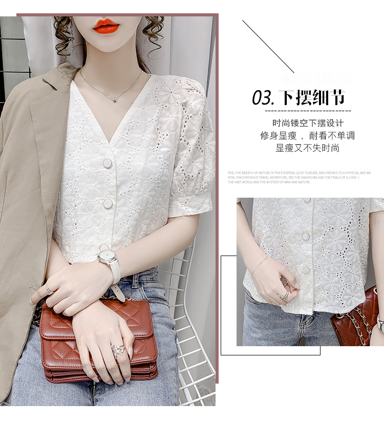 实拍2021夏季新款蕾丝衫女短袖时尚气质白色上衣女士小衫