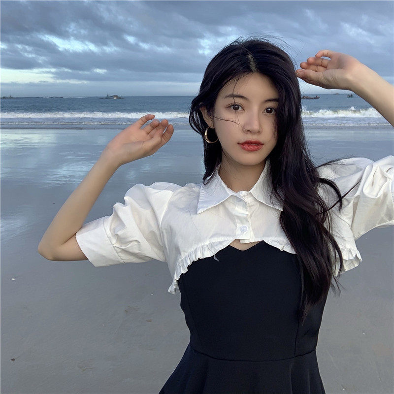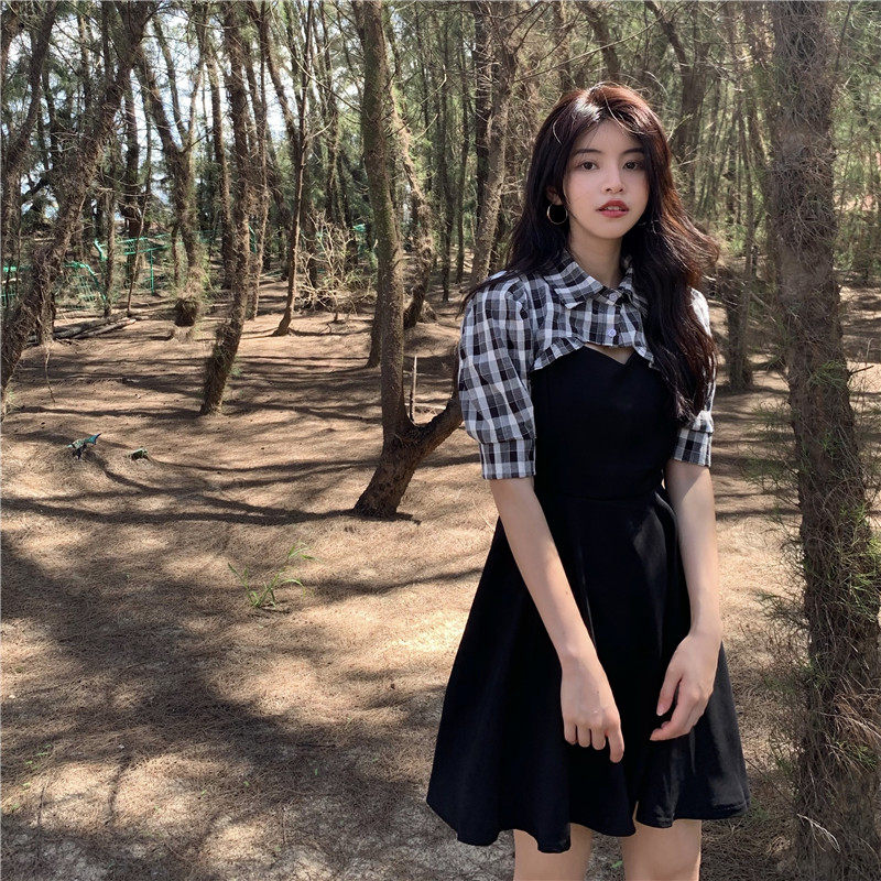 尺寸 衬衫S:衣长28 肩宽32 袖长30 胸围84 衬衫M:衣长29 肩宽33 袖长31 胸围88 连衣裙S:裙长66(不含肩带)胸围80 连衣裙M:裙长67(不含肩带)胸围84 |