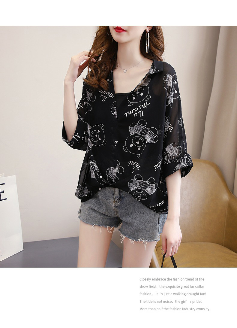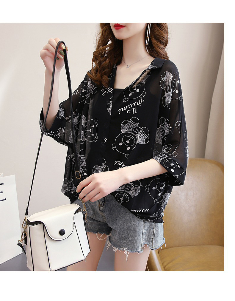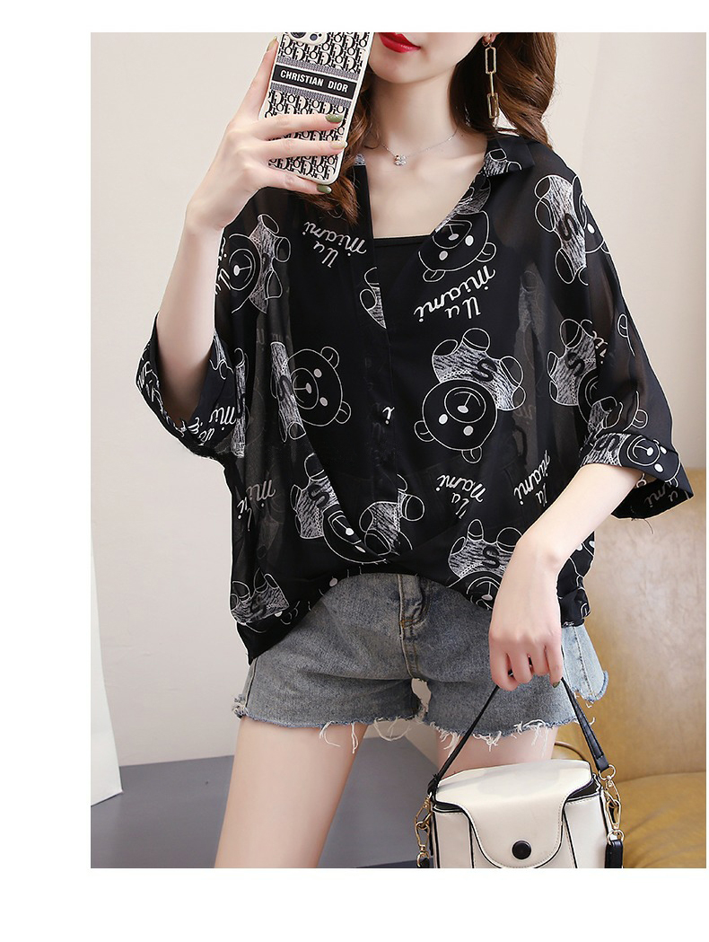 夏装雪纺衫2021新款女上衣蝙蝠袖韩版显瘦短袖衬衫上衣