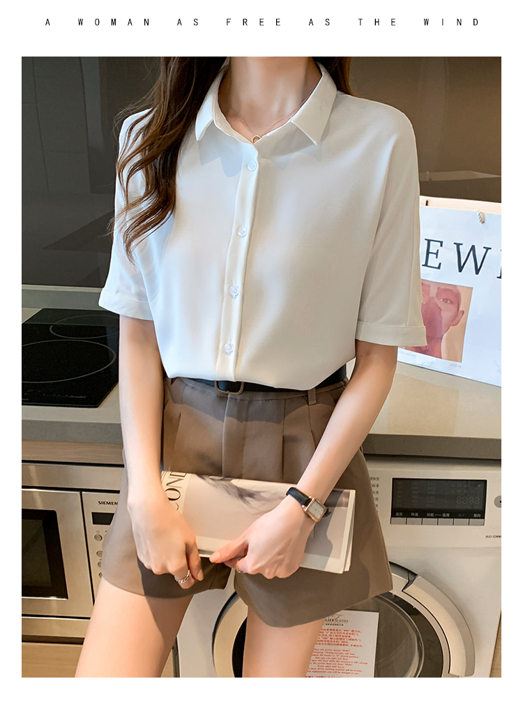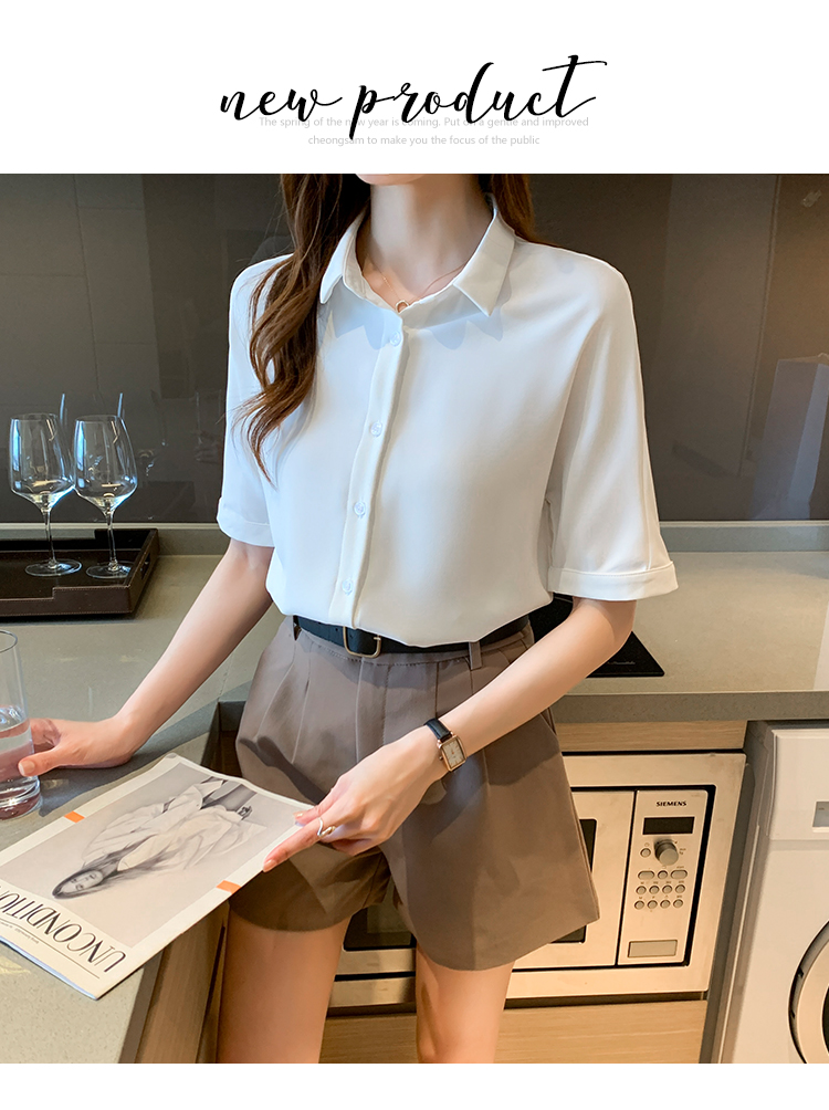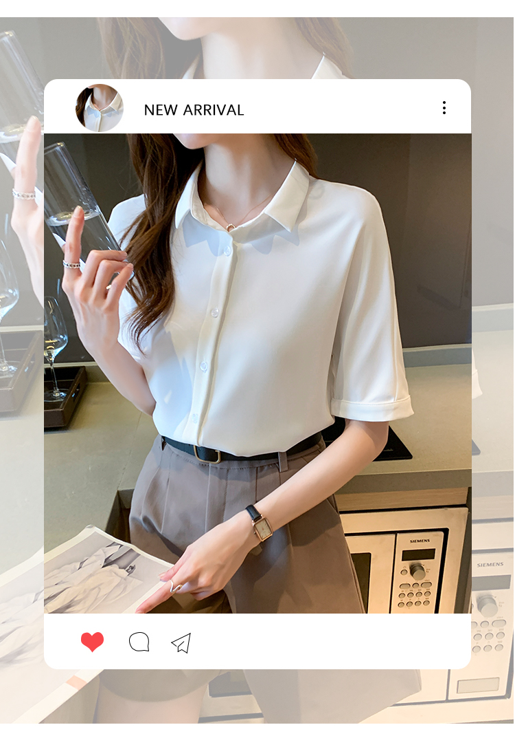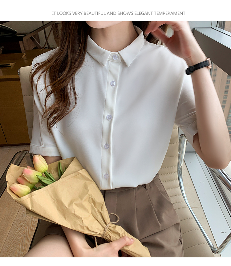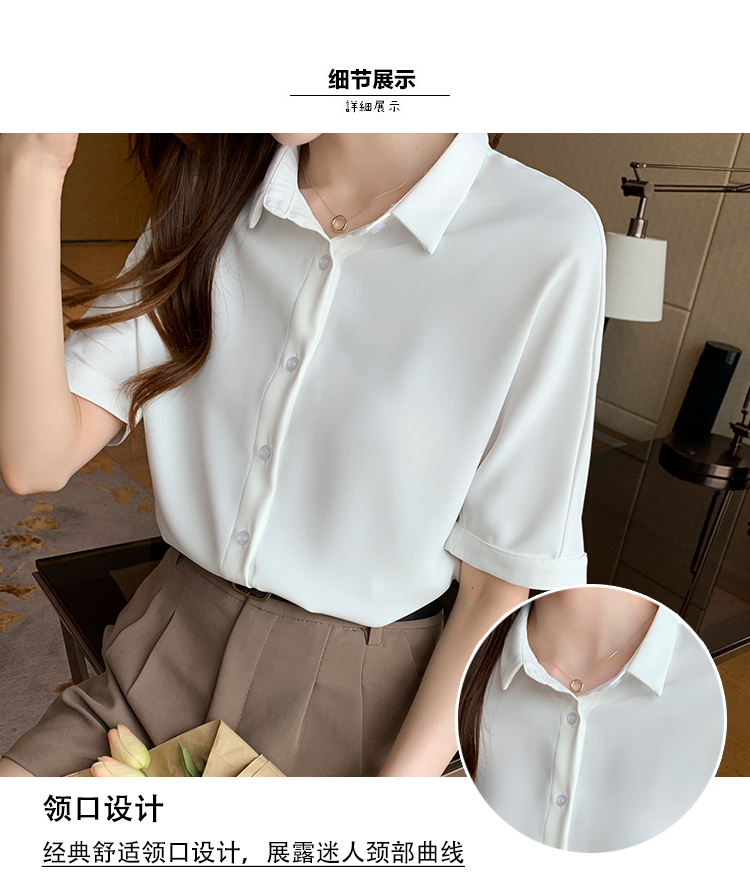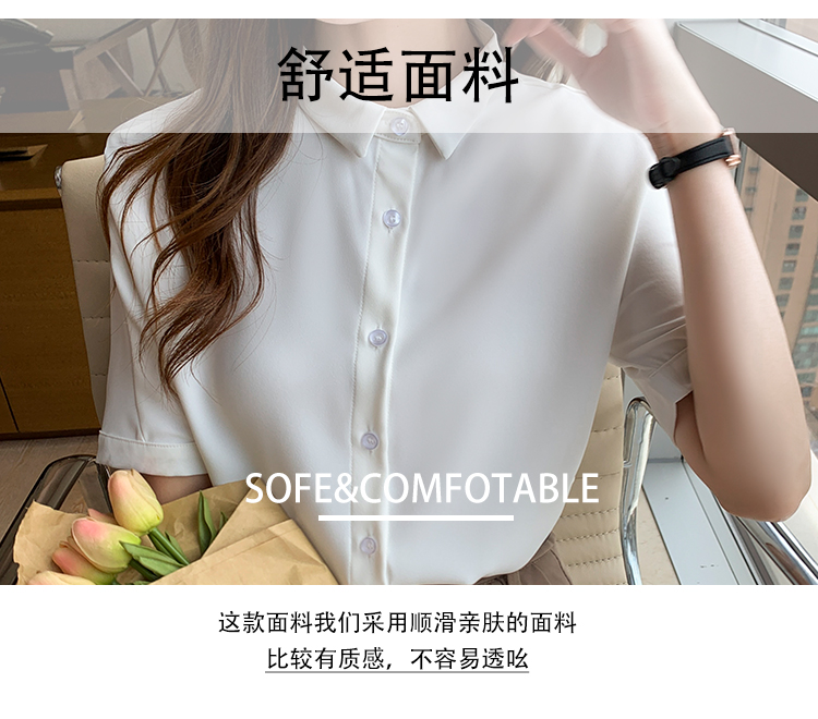 实拍白色衬衫女短袖夏季2021年新款上衣小领职业面试正装衬衣薄款