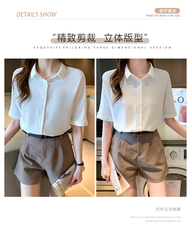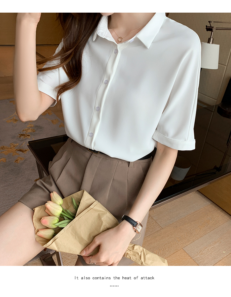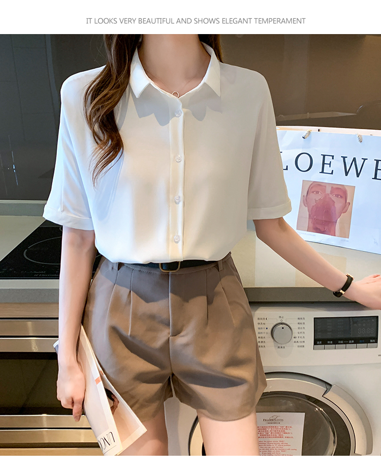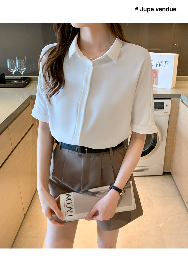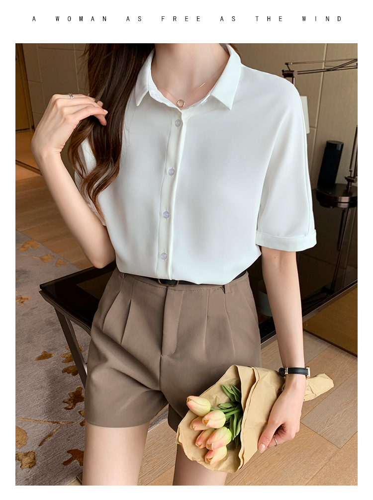 实拍白色衬衫女短袖夏季2021年新款上衣小领职业面试正装衬衣薄款