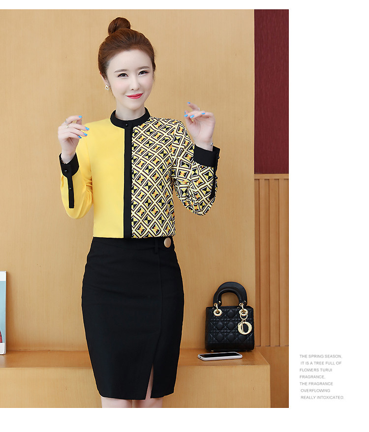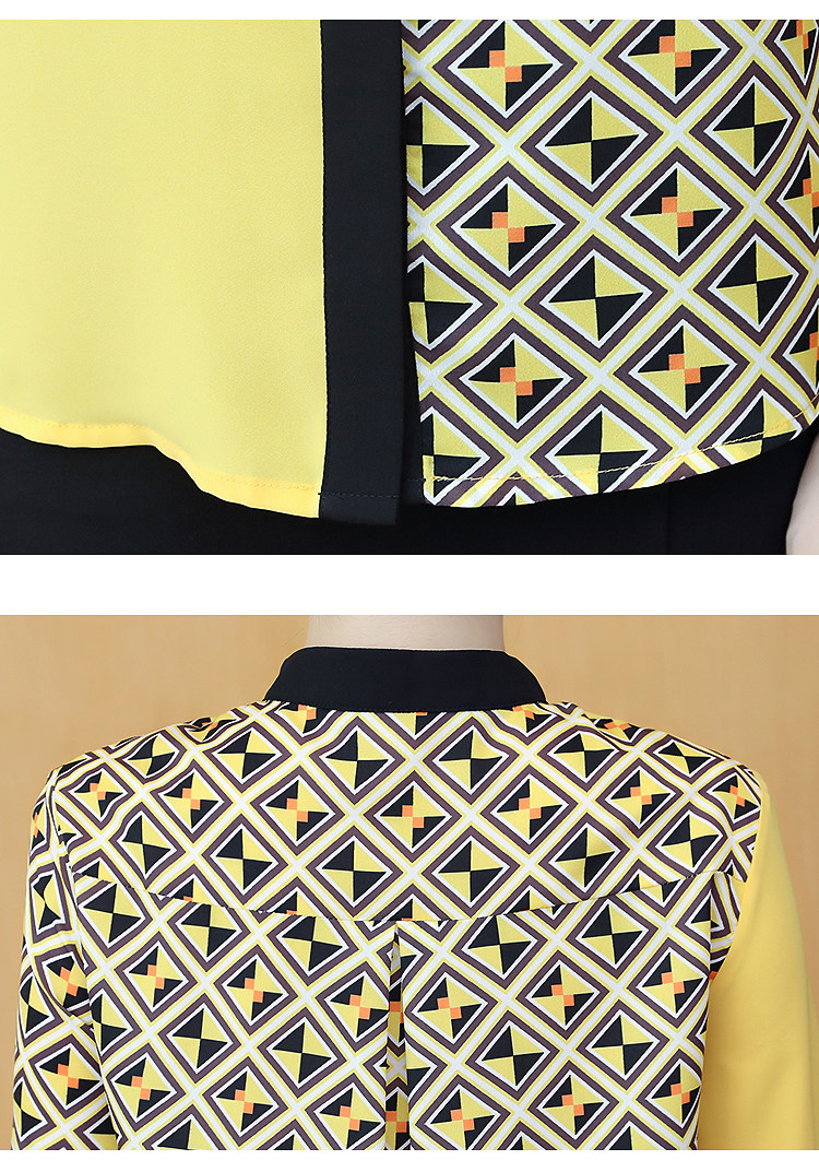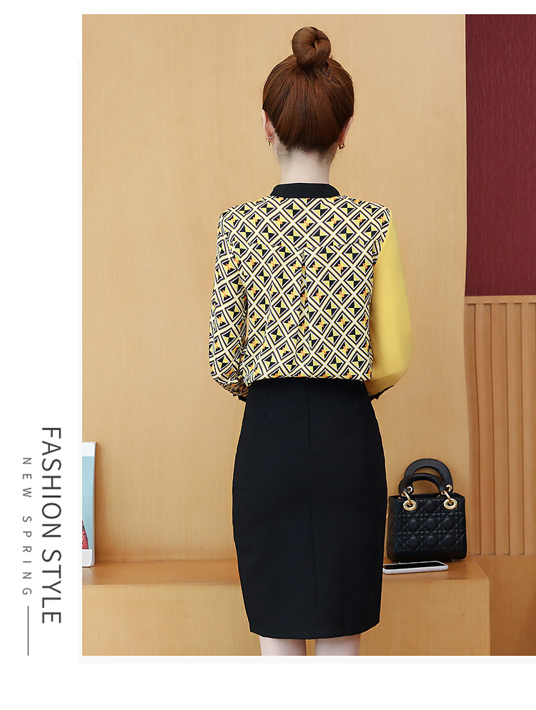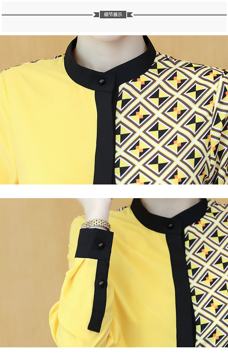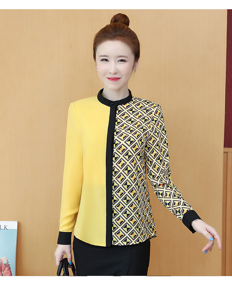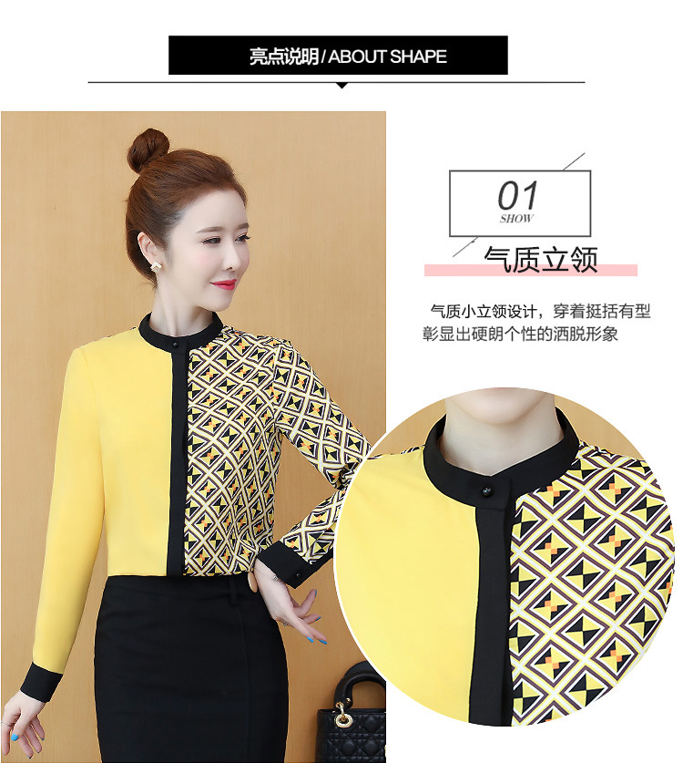 实拍2021春装长袖圆领印花拼色韩版宽松百搭衬衣雪纺衫