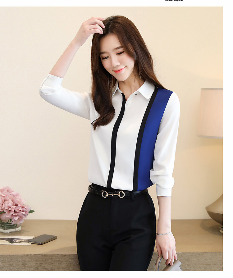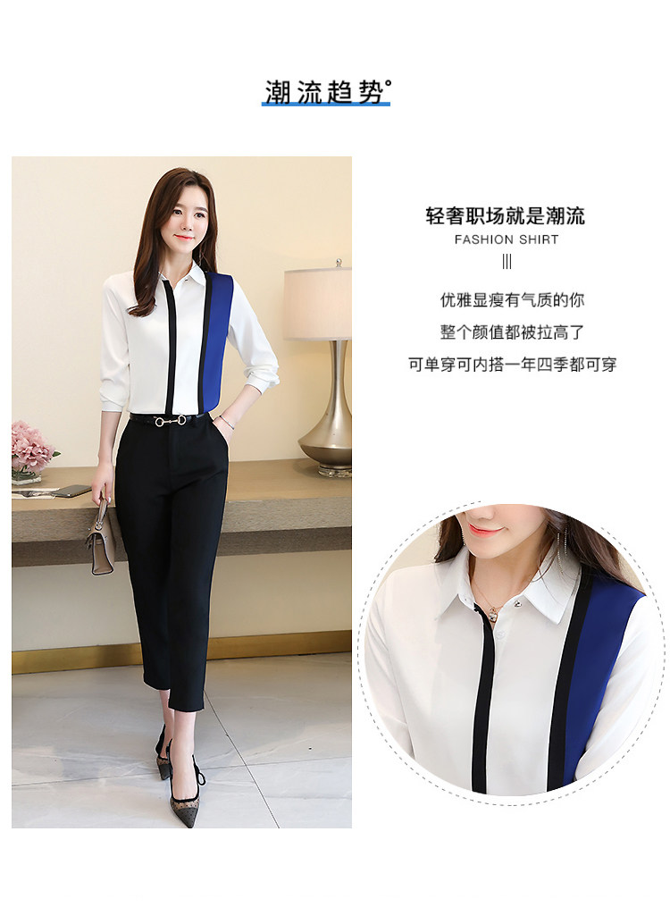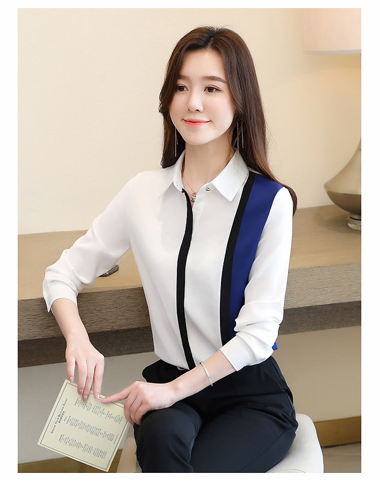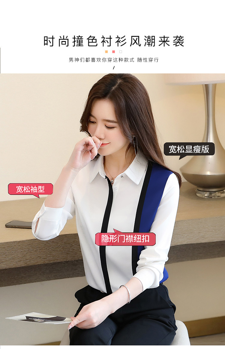 实拍2020秋装新款衬衫欧货长袖白色拼接简约上衣百搭小衫女潮