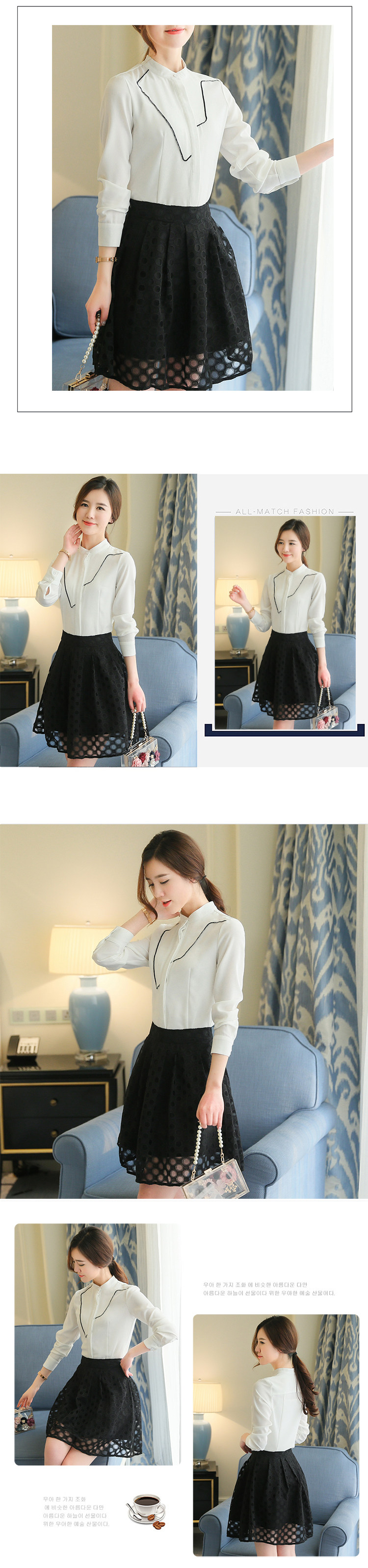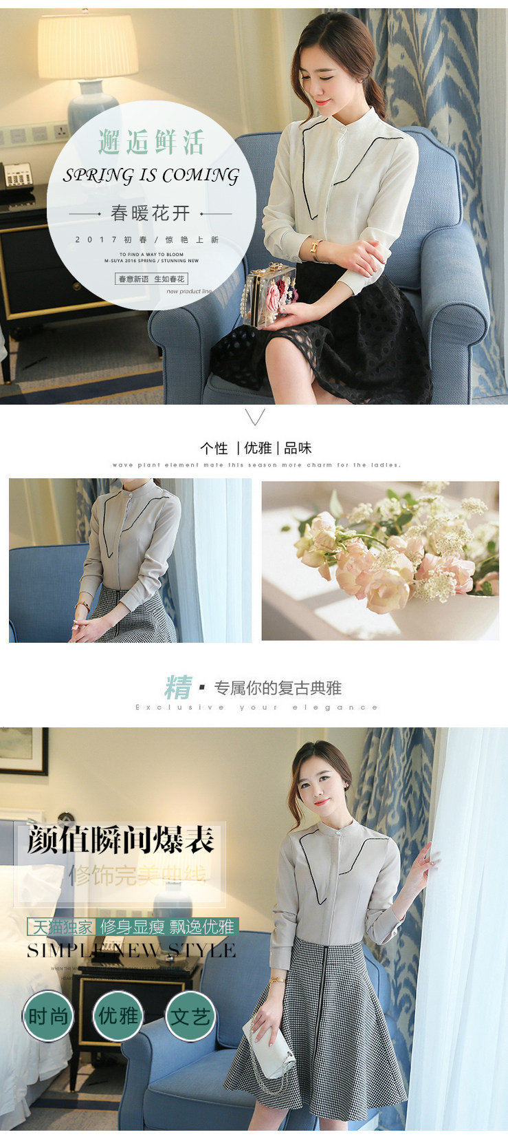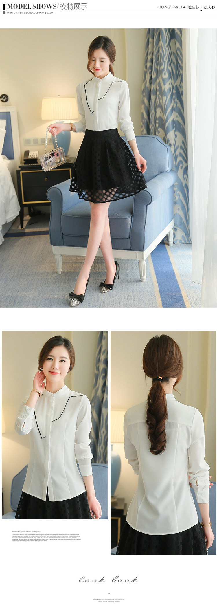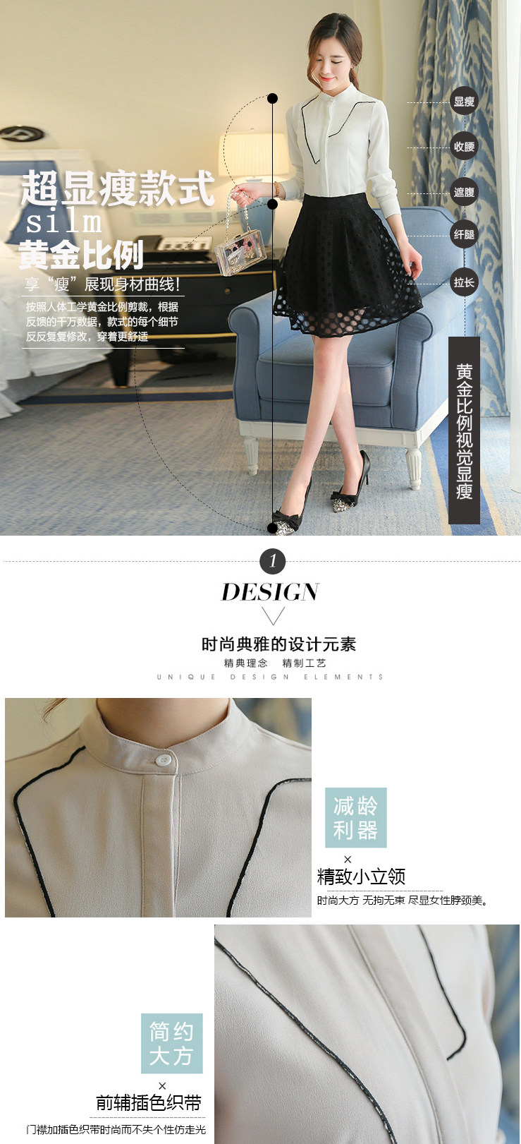 实拍白色衬衣2020秋装新款立领长袖百搭刺绣长袖上衣女潮OL