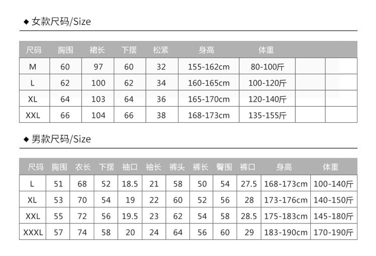 - 尺码:情侣女M 情侣女L 情侣女XL 情侣女2XL 情侣男L 情侣男XL 情侣男2XL 情侣男3XL