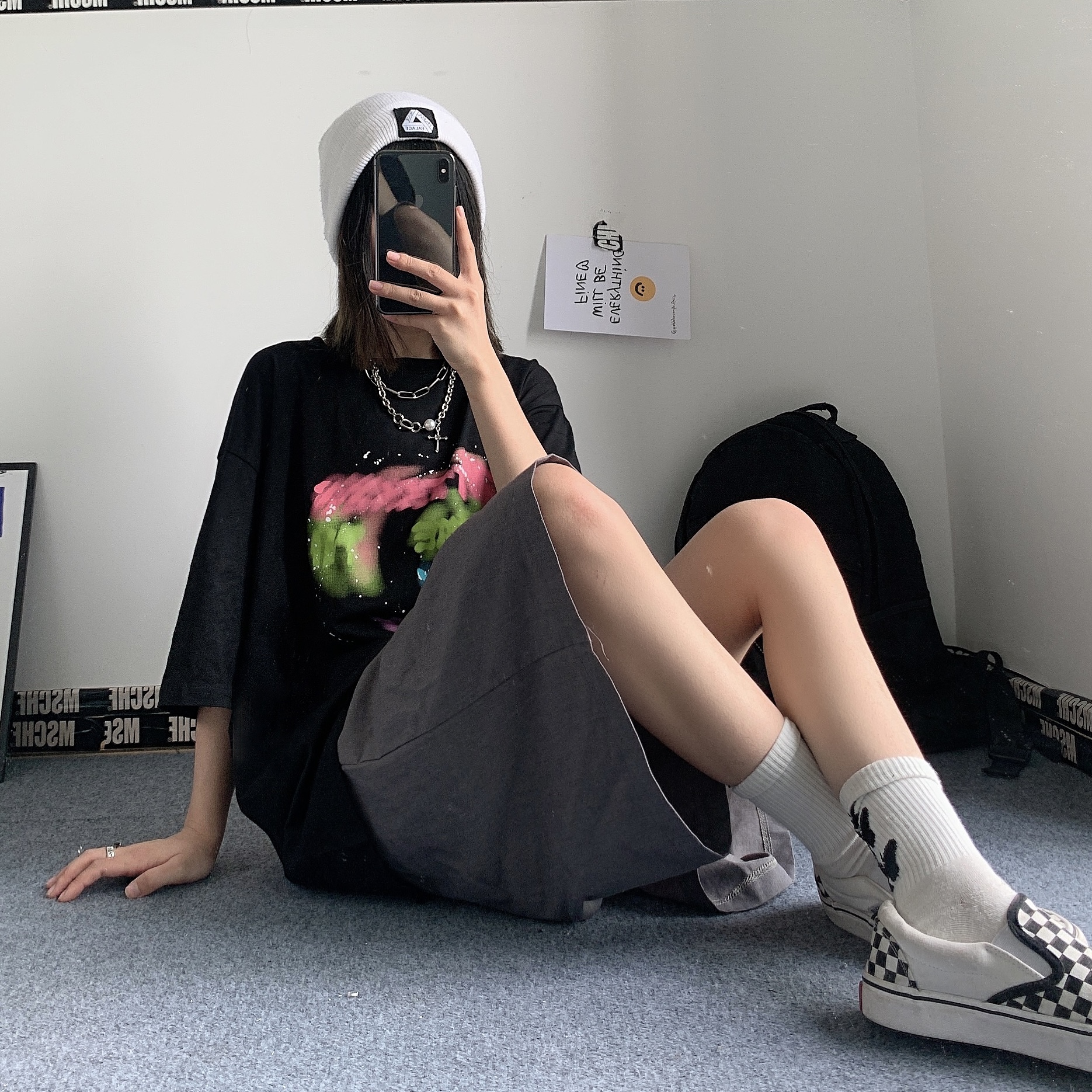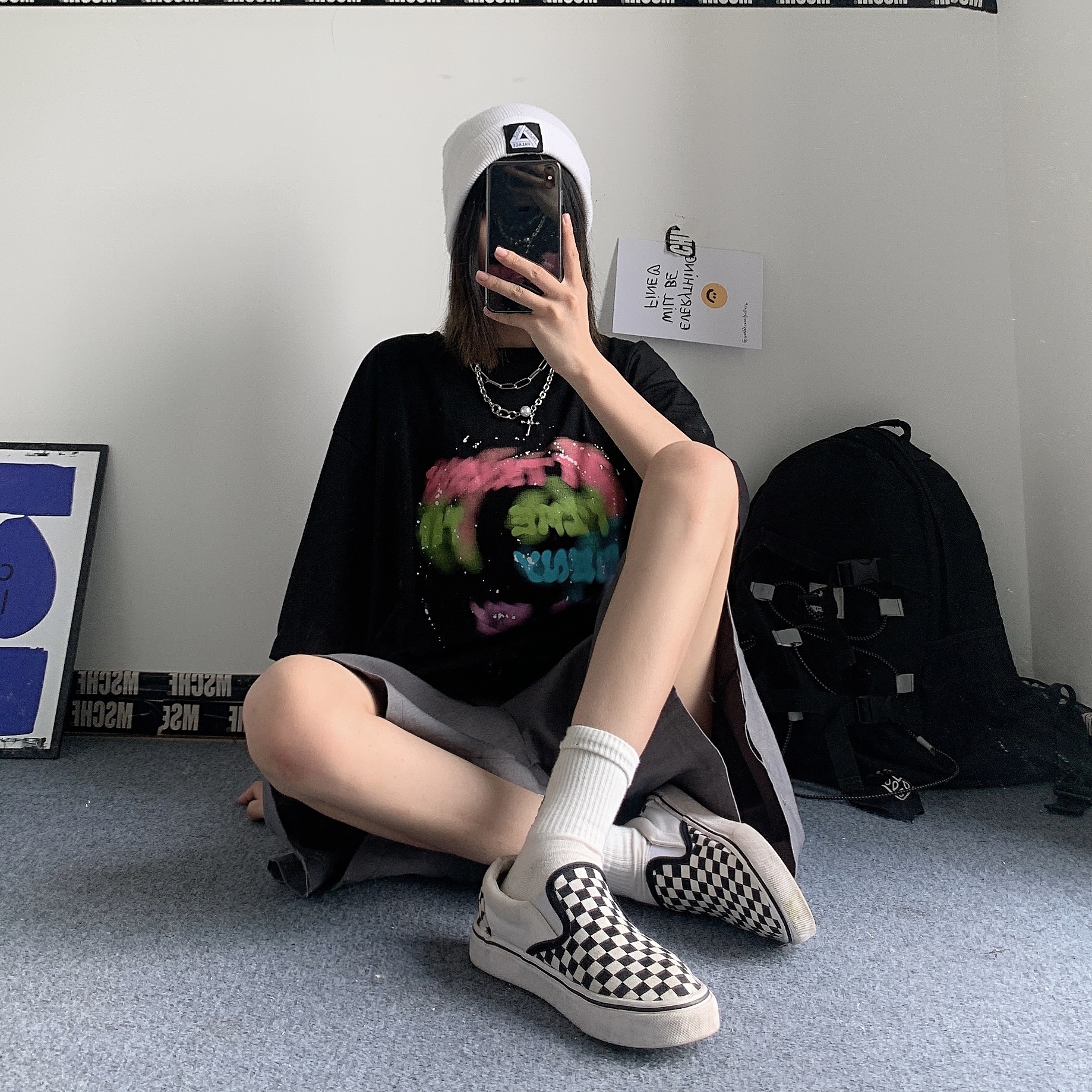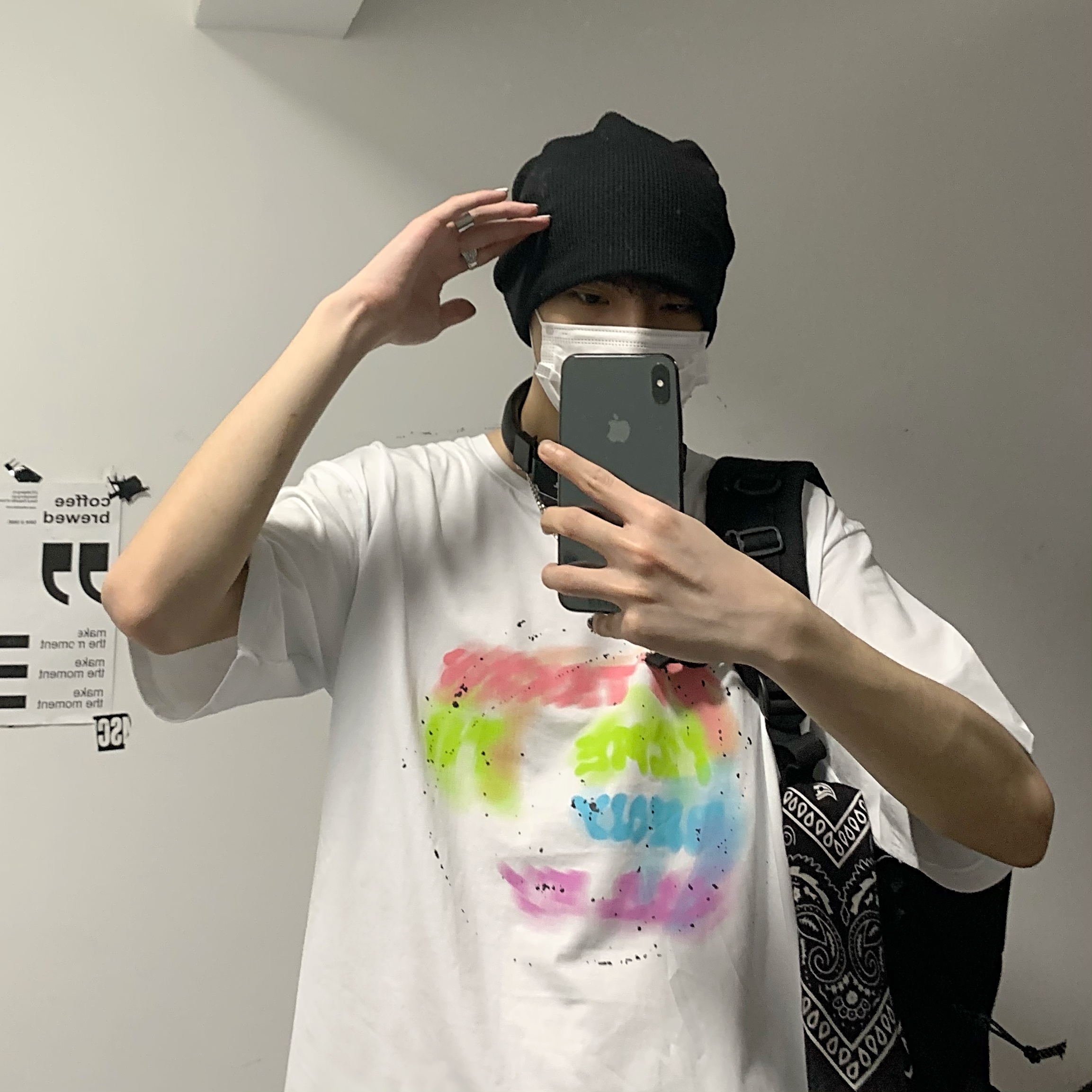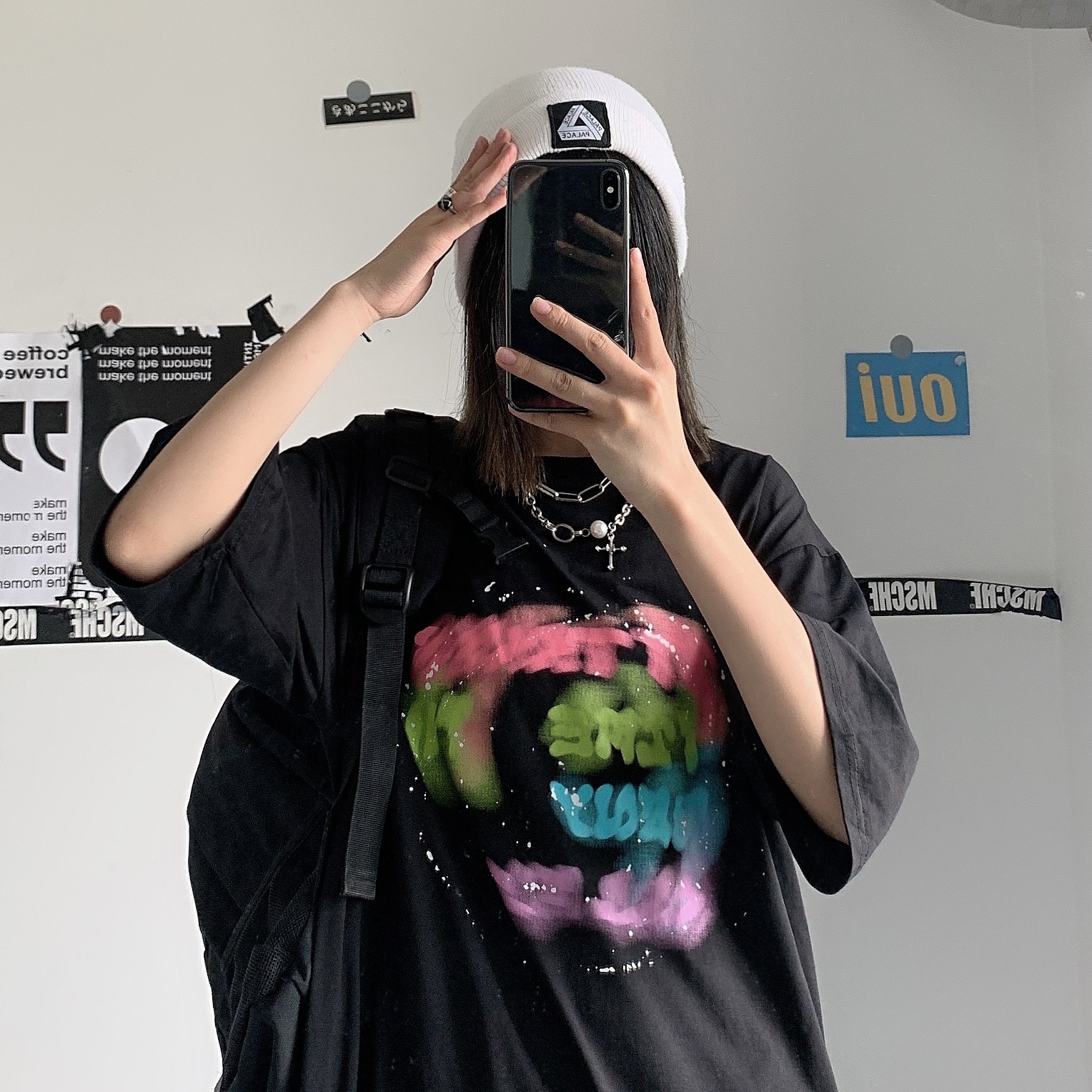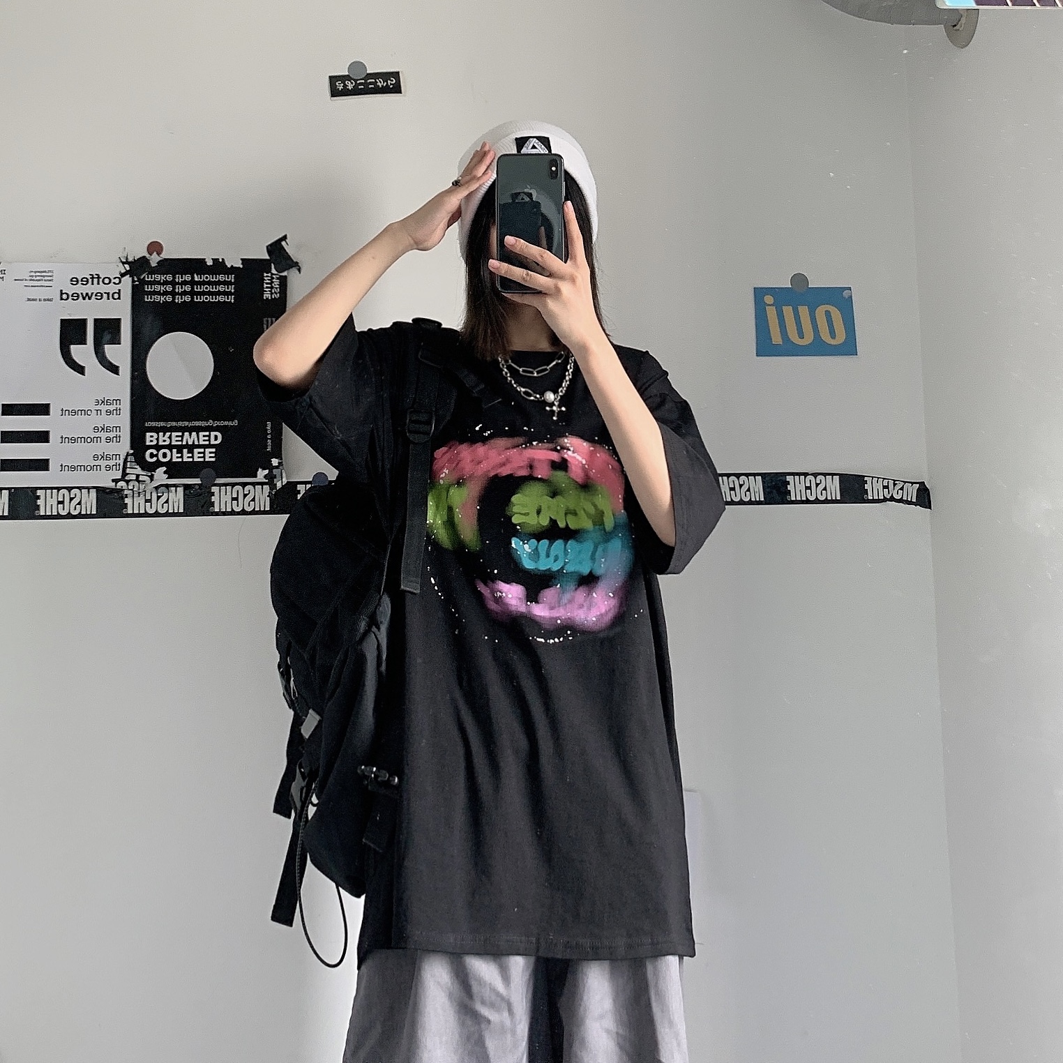 控+3实拍实价原创原宿纯棉INS泼墨彩色印花情侣短袖T恤男女上衣