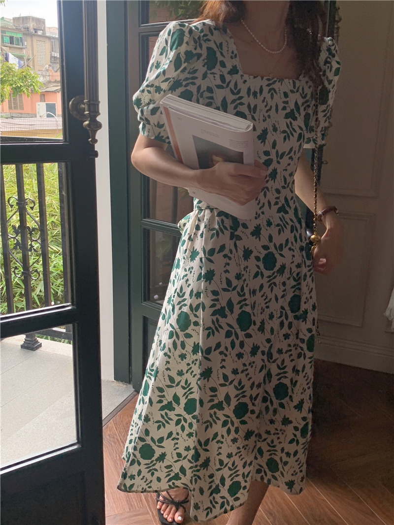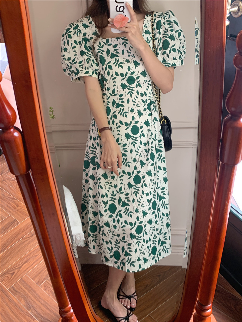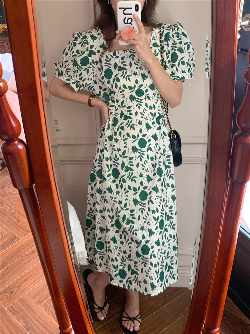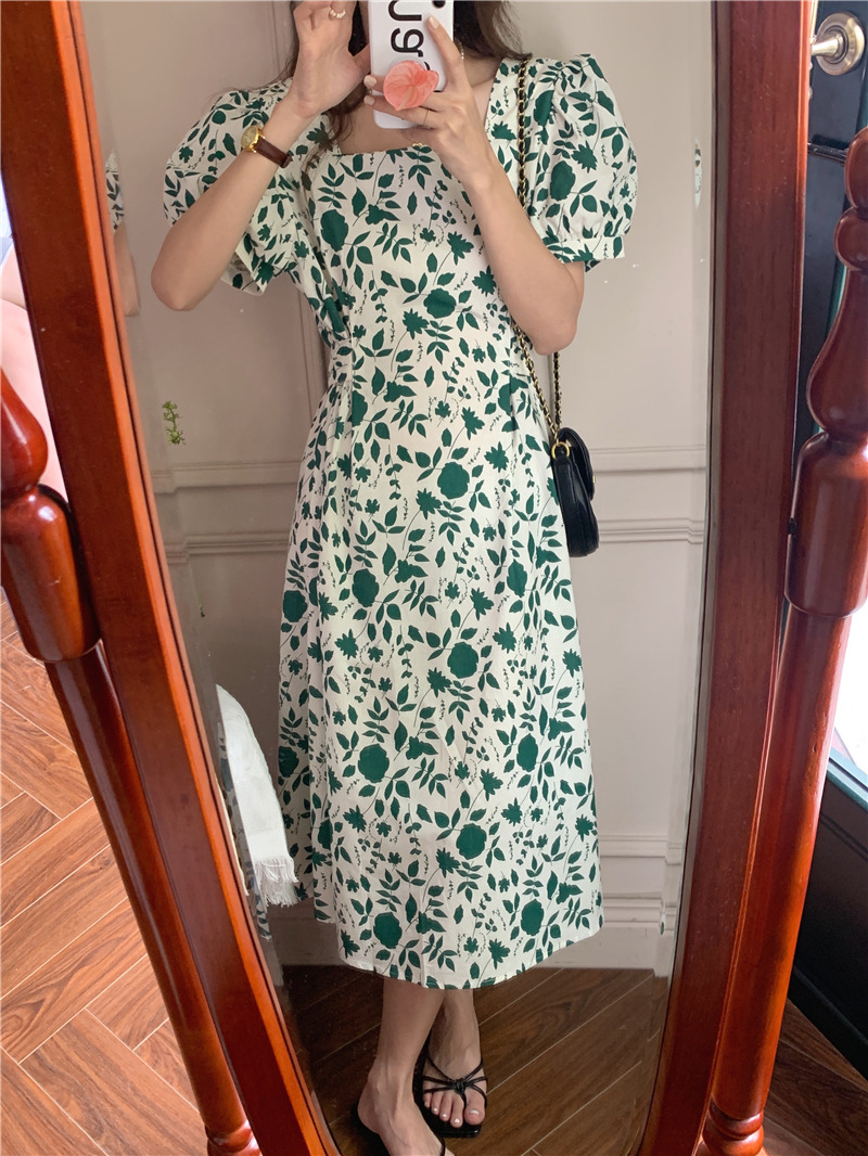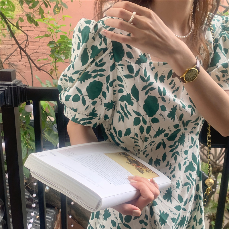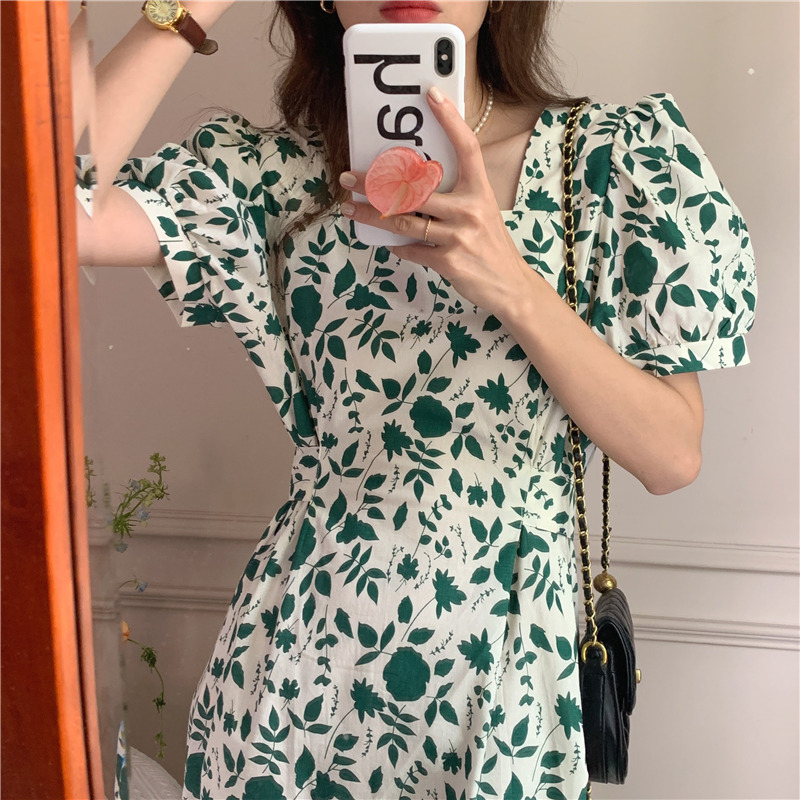 实拍实价 韩版法式度假碎花中长款收腰连衣裙 现货