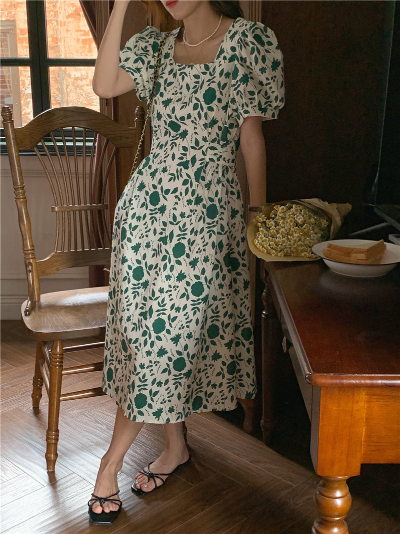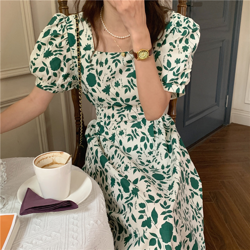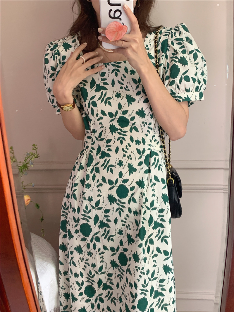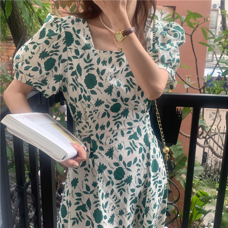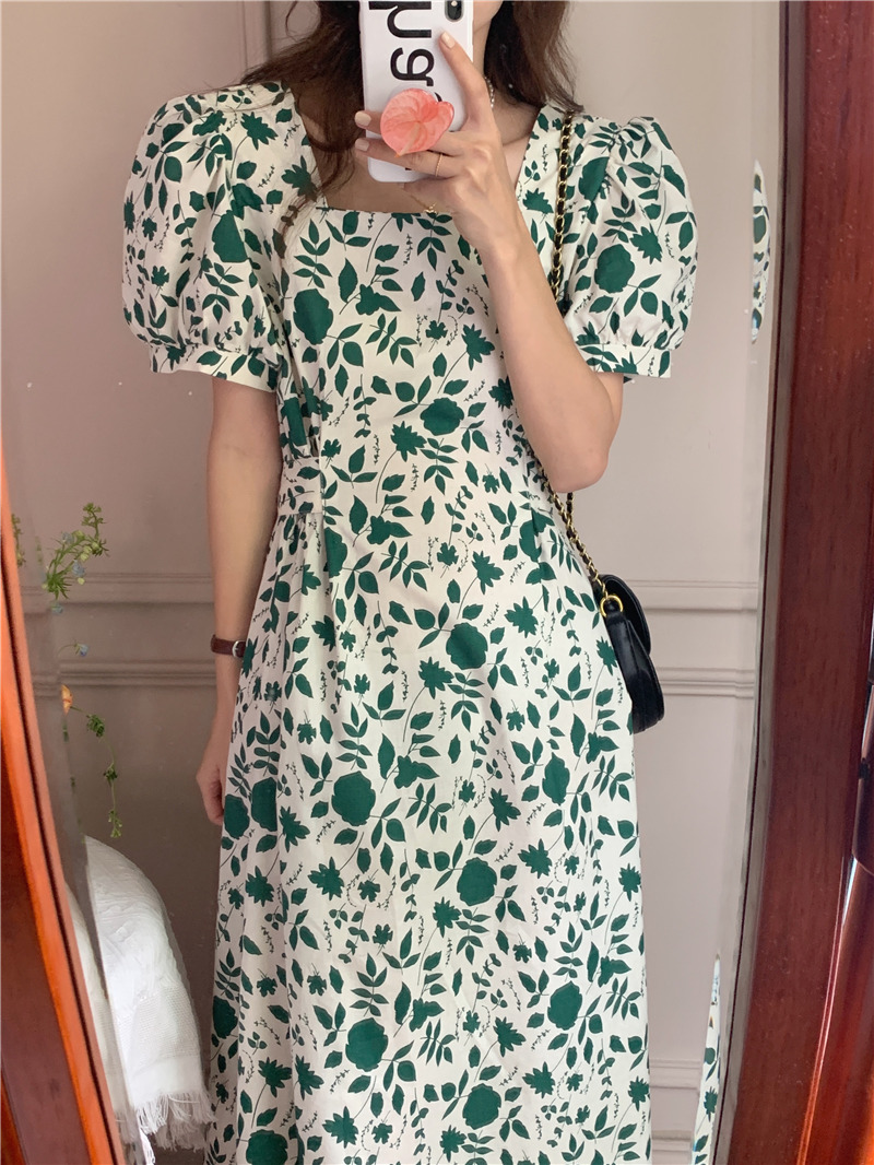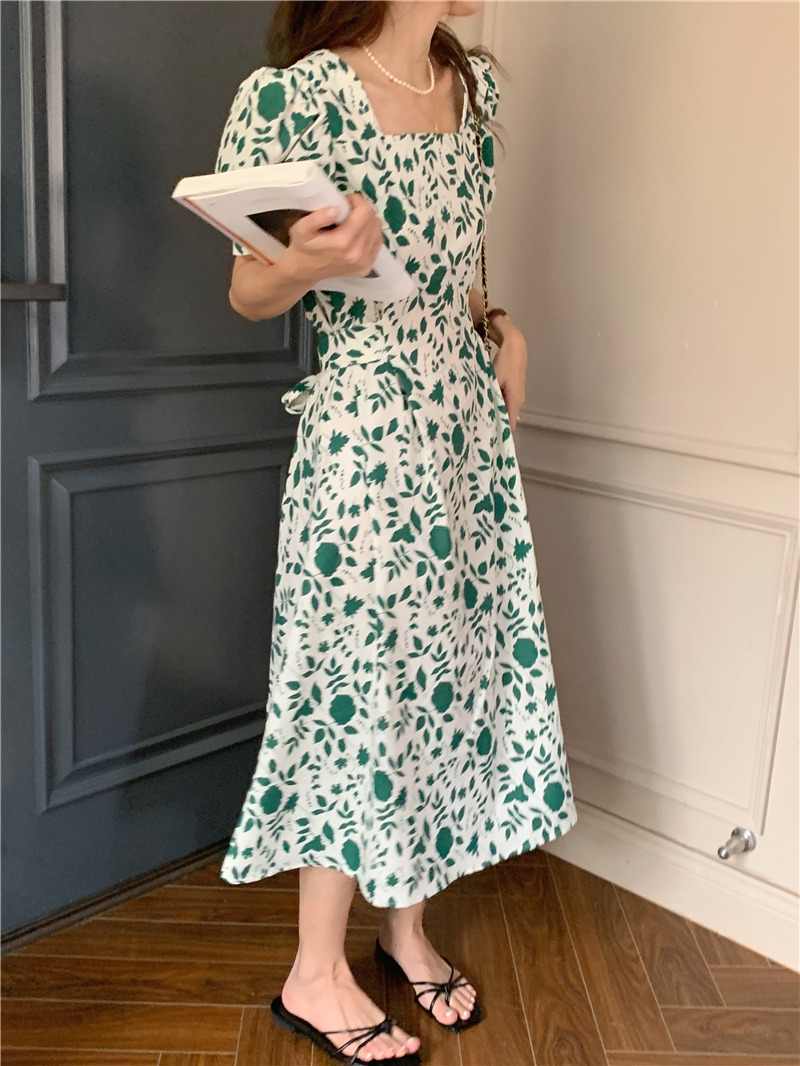 实拍实价 韩版法式度假碎花中长款收腰连衣裙 现货