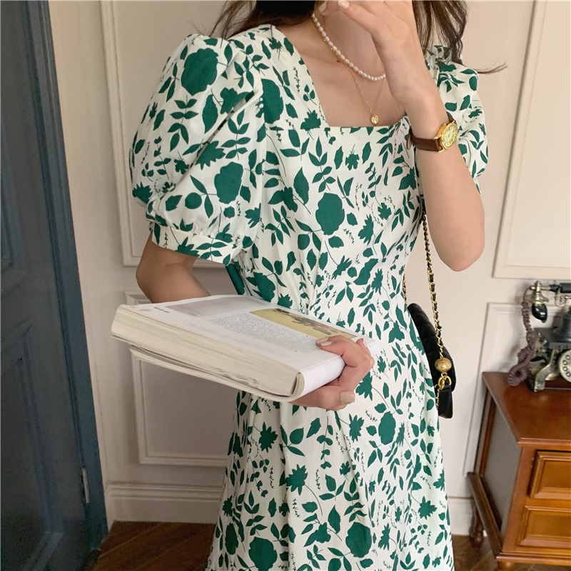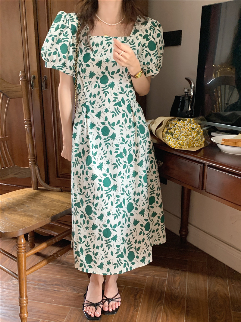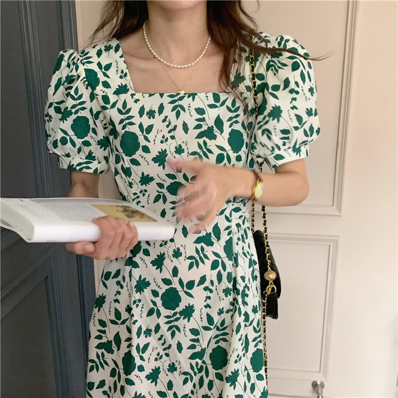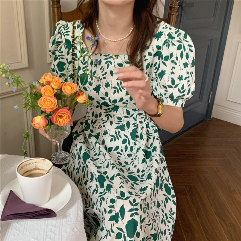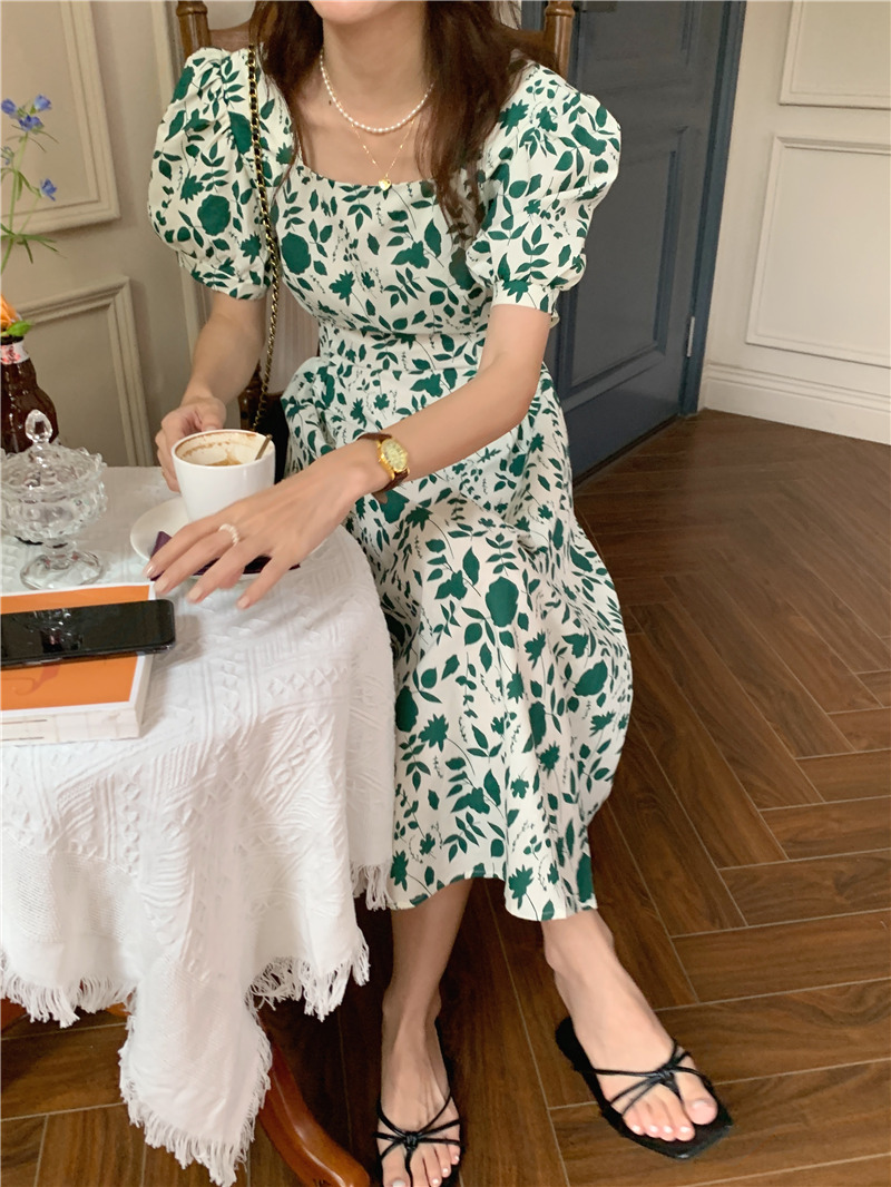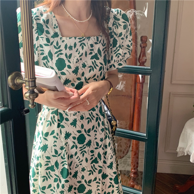 实拍实价 韩版法式度假碎花中长款收腰连衣裙 现货