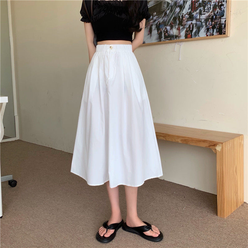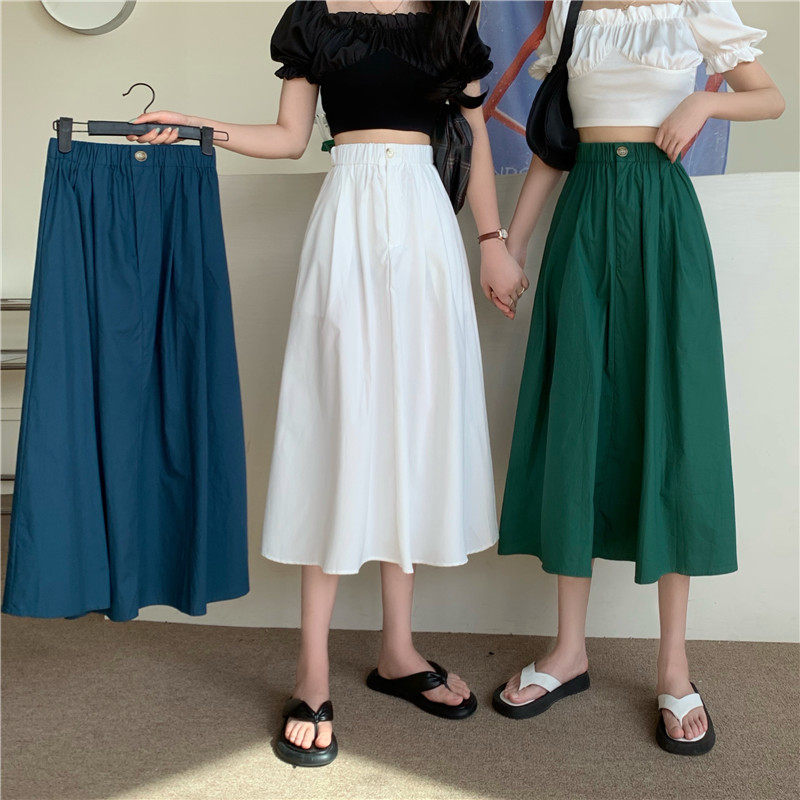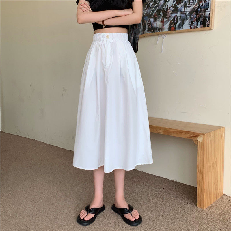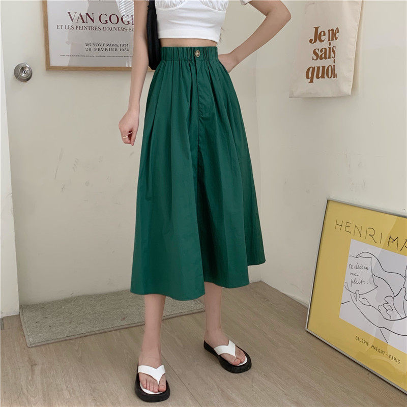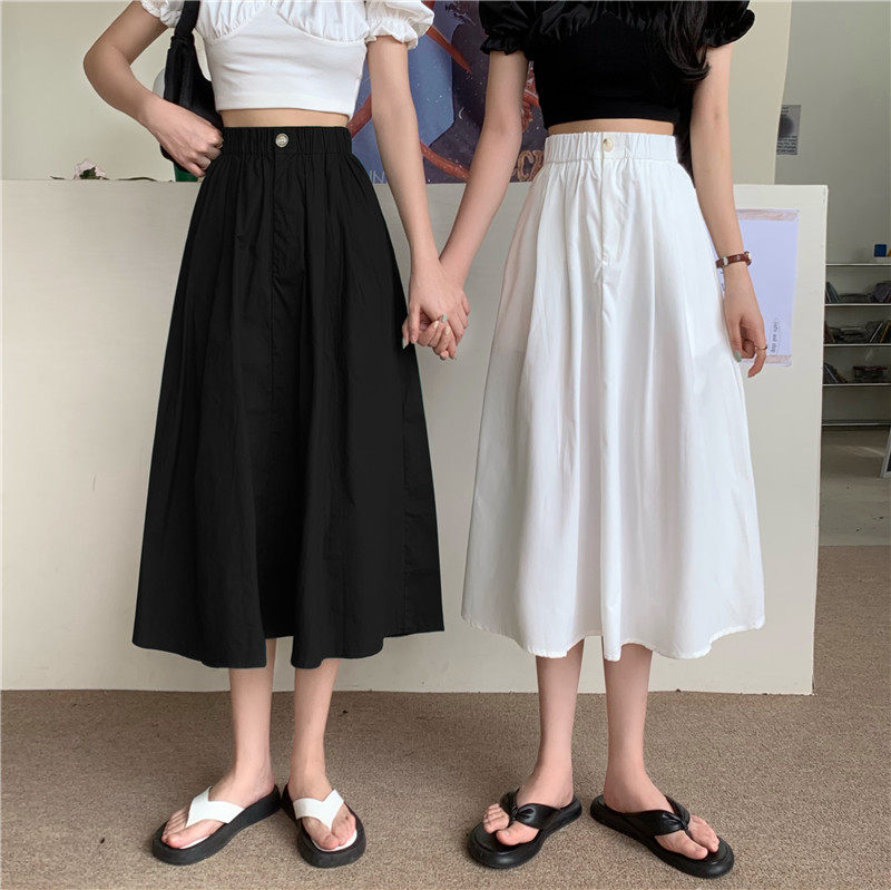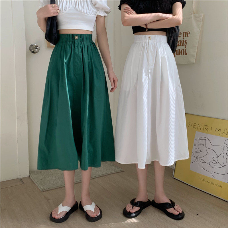 实拍大码女装夏季2021新款韩版遮胯百搭休闲大摆高腰A字半身裙