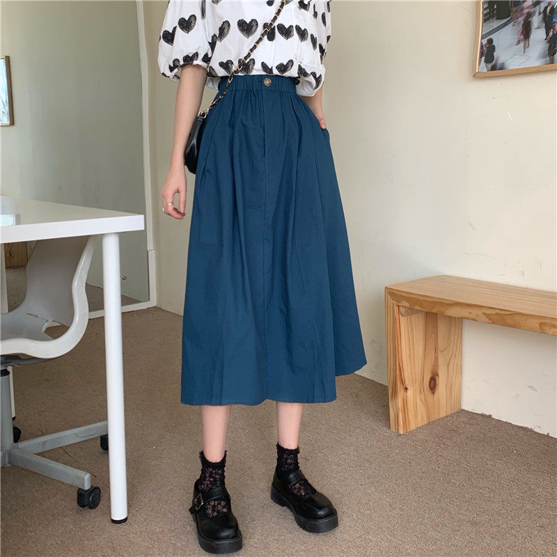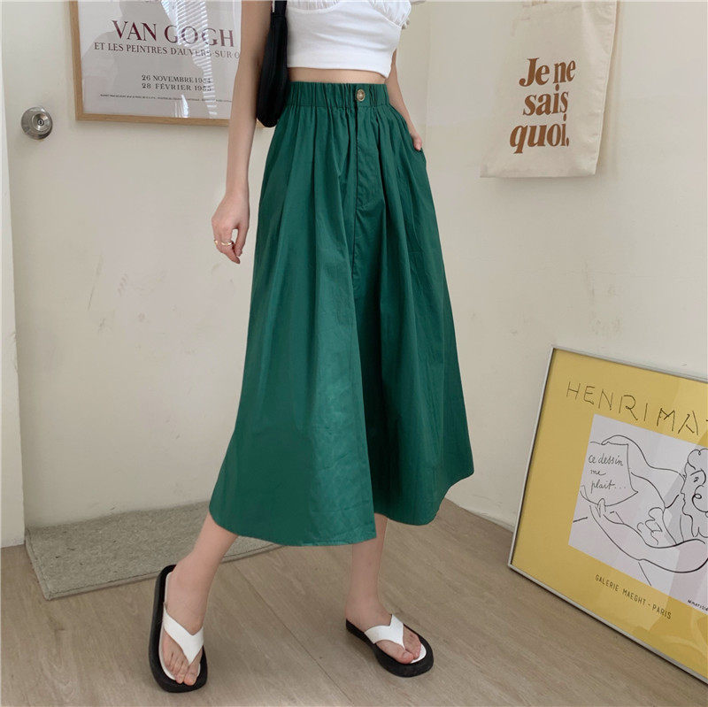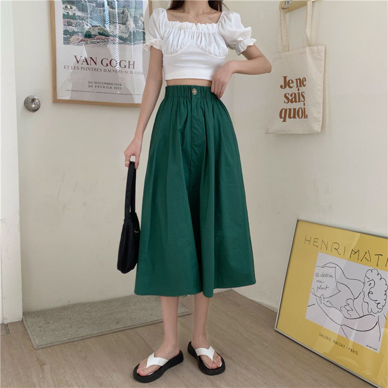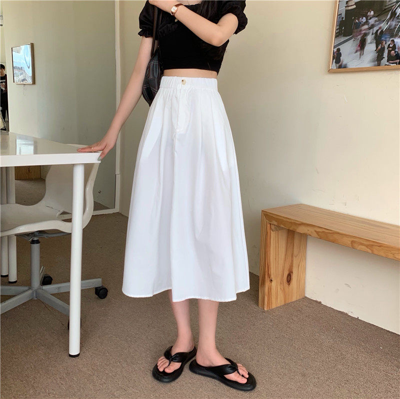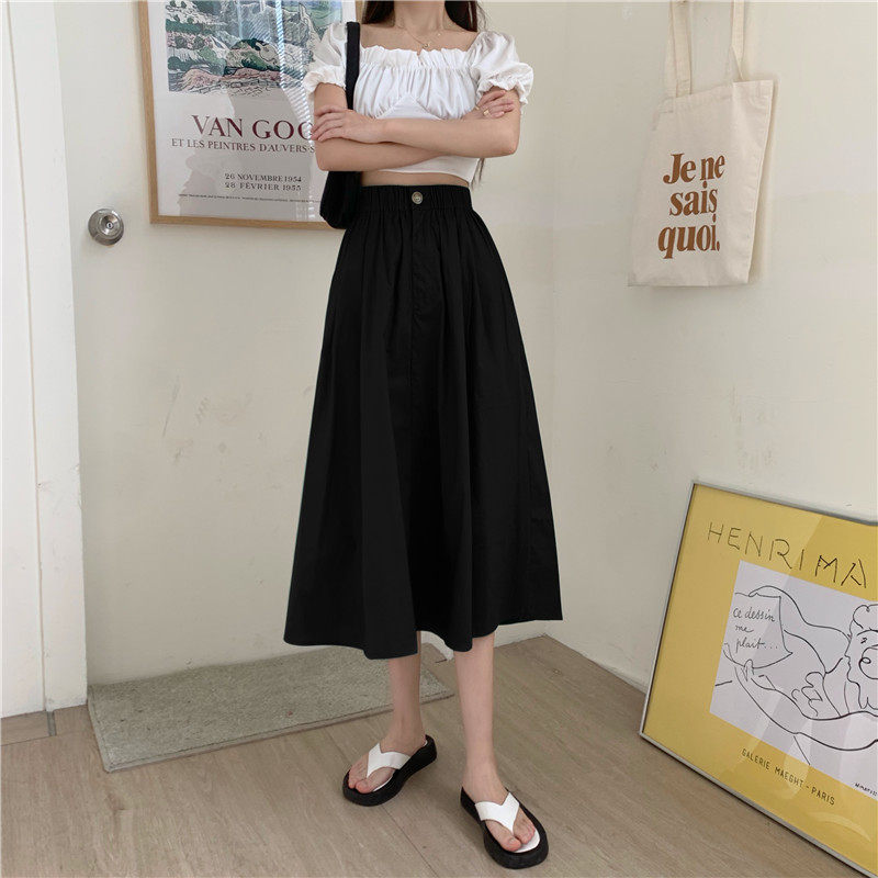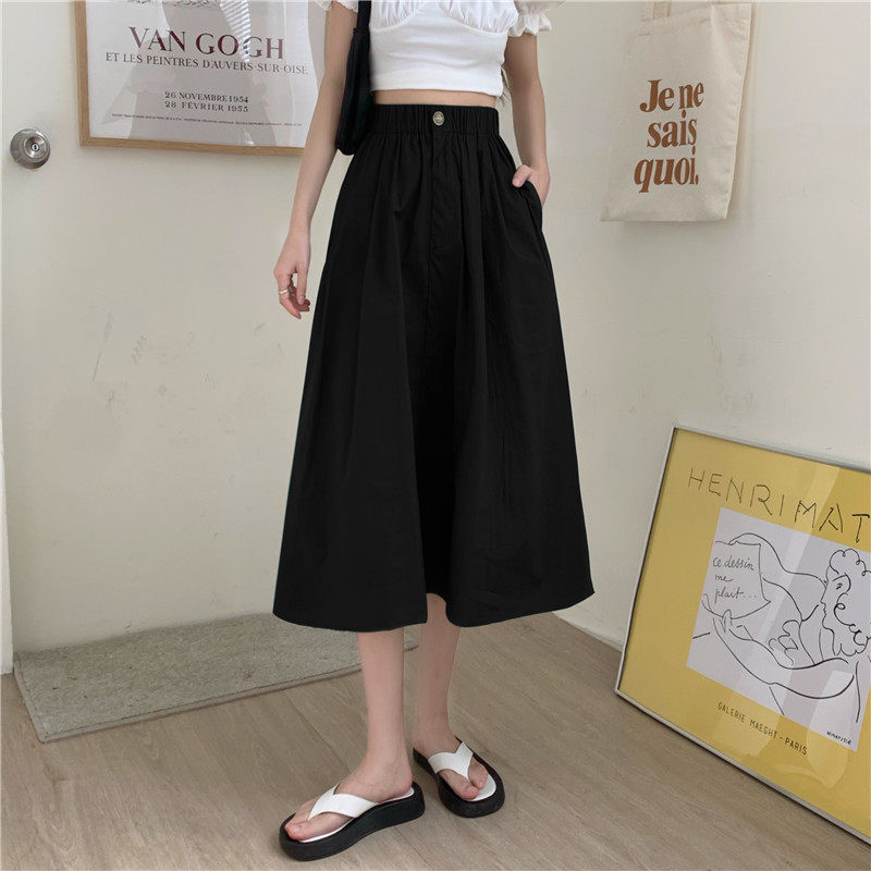 实拍大码女装夏季2021新款韩版遮胯百搭休闲大摆高腰A字半身裙