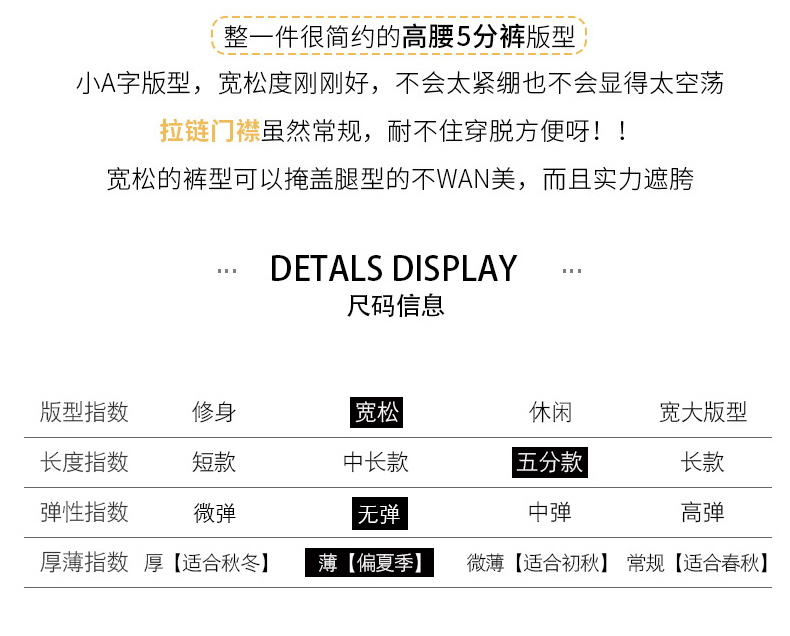- 裤长:五分裤