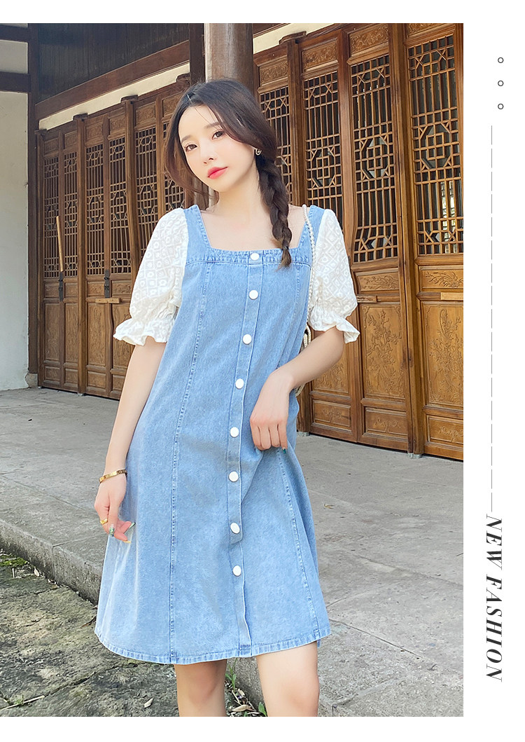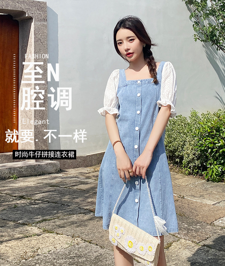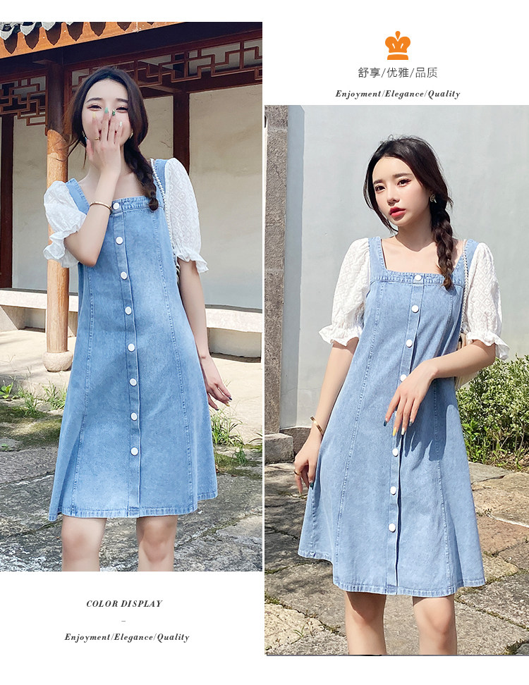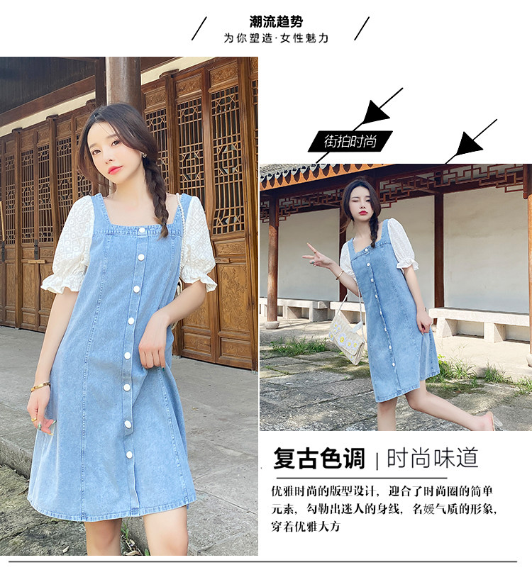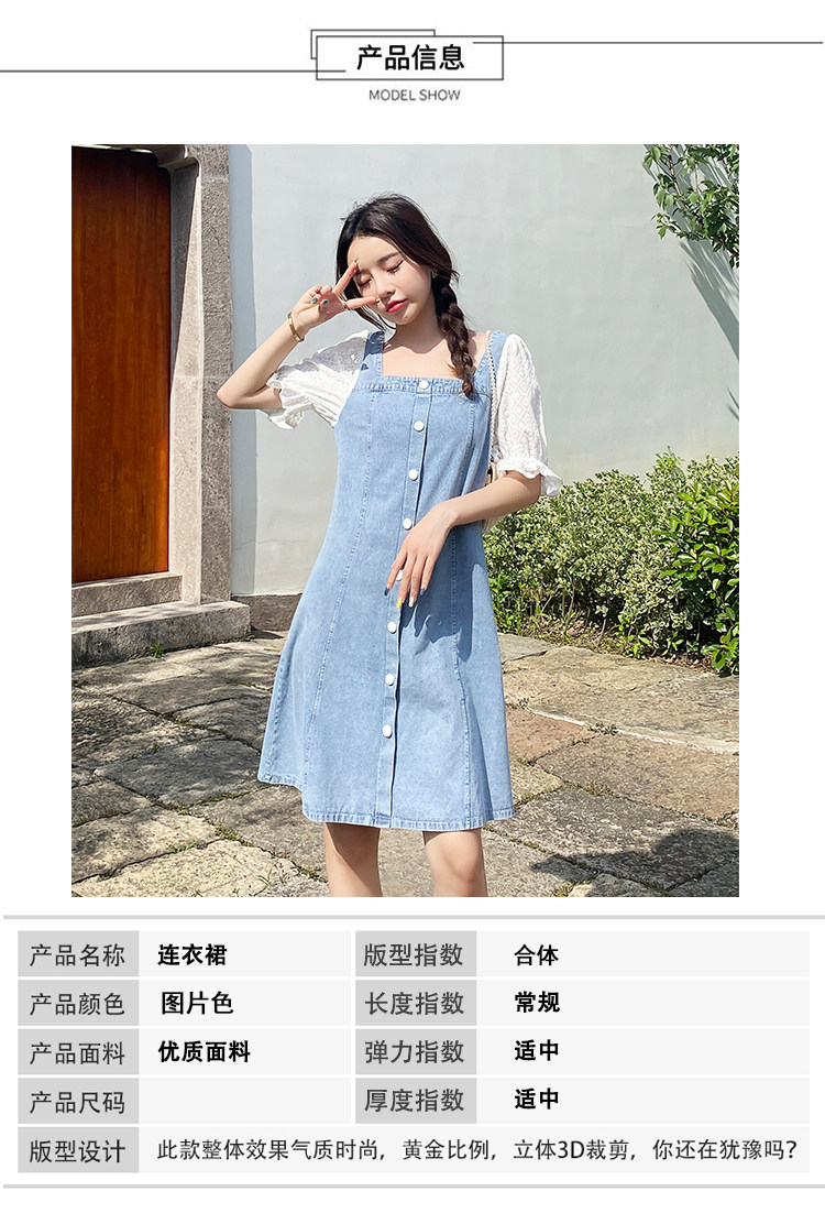 实拍 现货 大码女装2021夏季新款胖mm宽松显瘦遮肚牛仔连衣裙