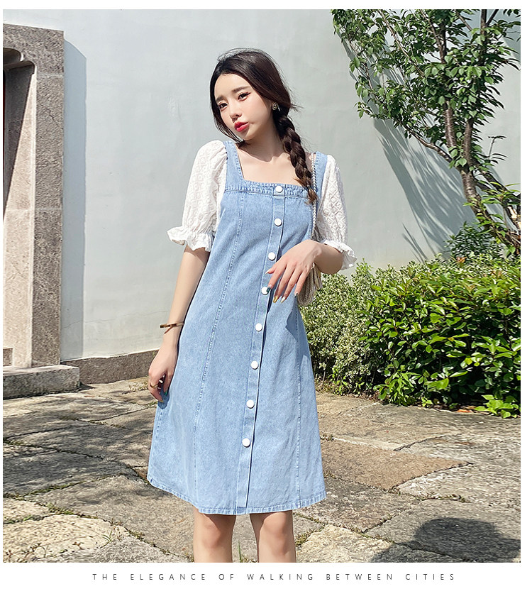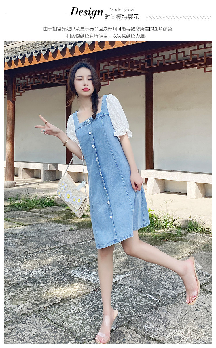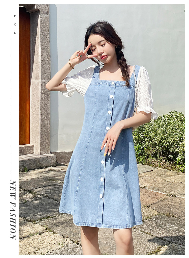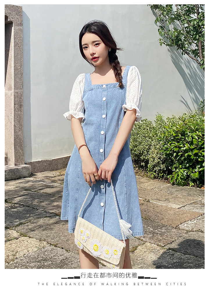 实拍 现货 大码女装2021夏季新款胖mm宽松显瘦遮肚牛仔连衣裙