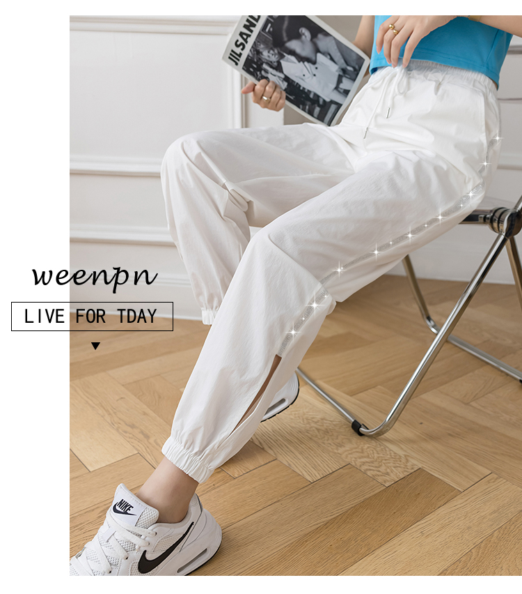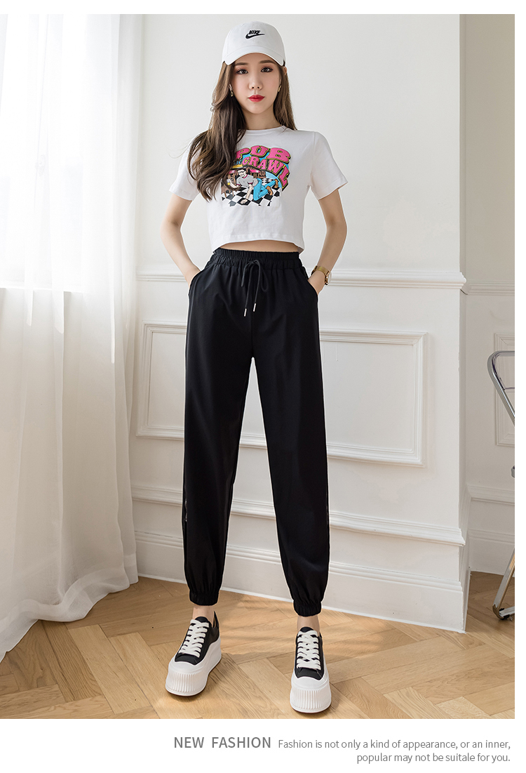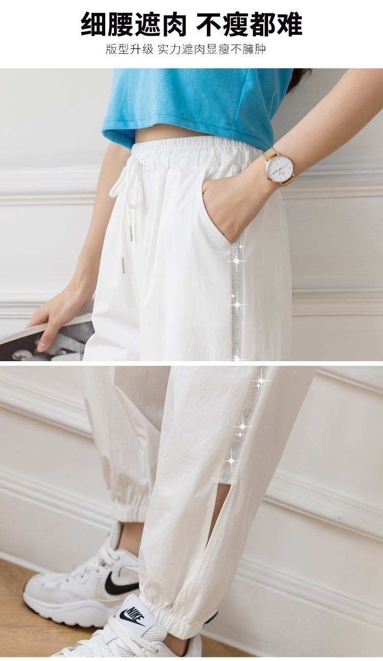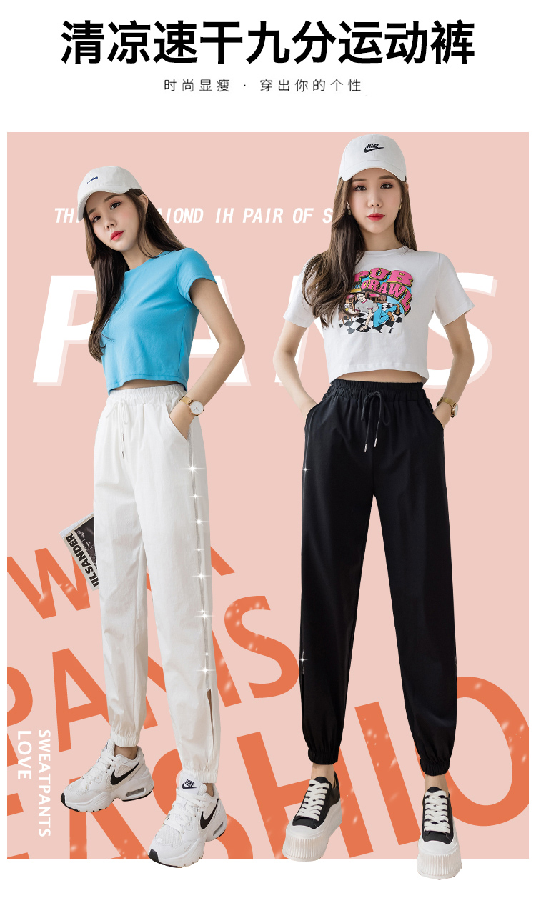 2021实拍现货夏季薄款速干运动裤百搭显瘦冰丝休闲束脚裤女九分裤
