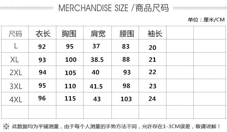 - 尺码:大码L 大码XL 大码2XL 大码3XL 大码4XL