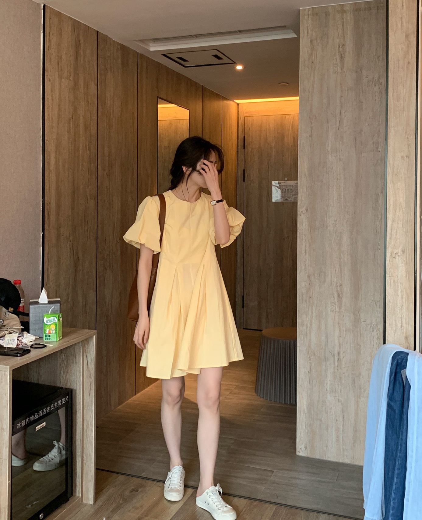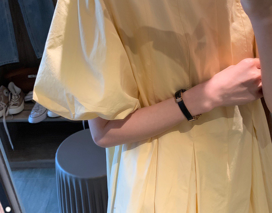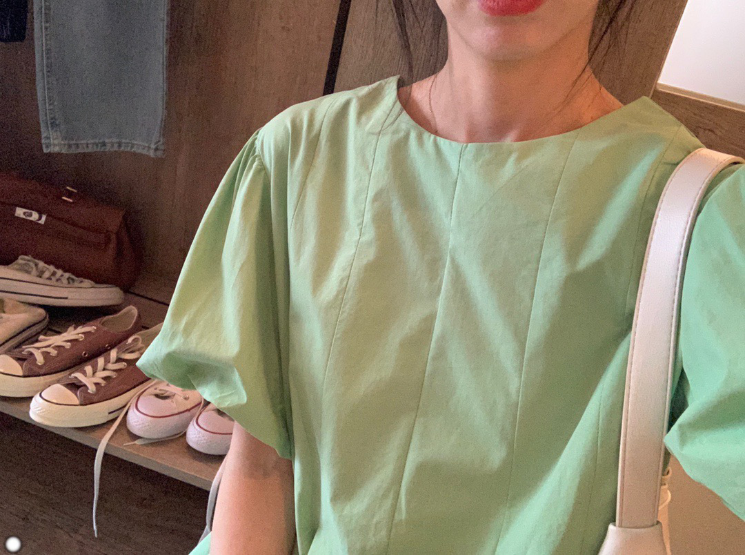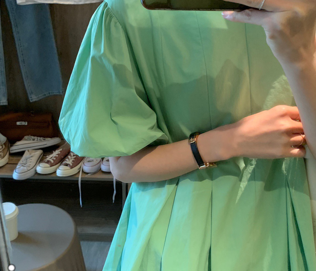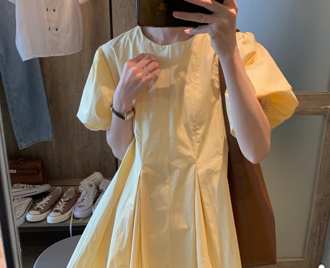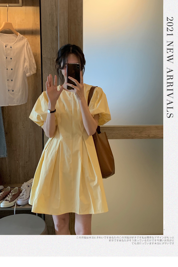 实拍 马卡龙色系2021夏季新款百褶简约纯色连衣裙百搭宽松chic裙