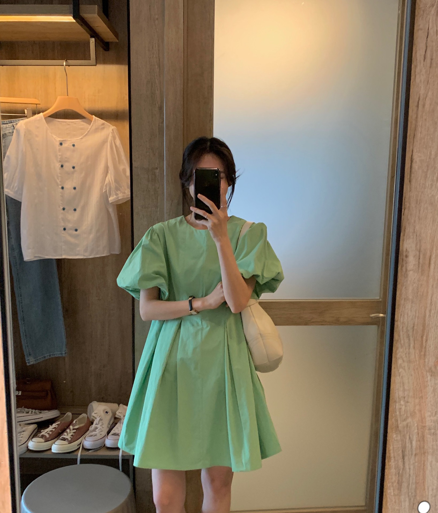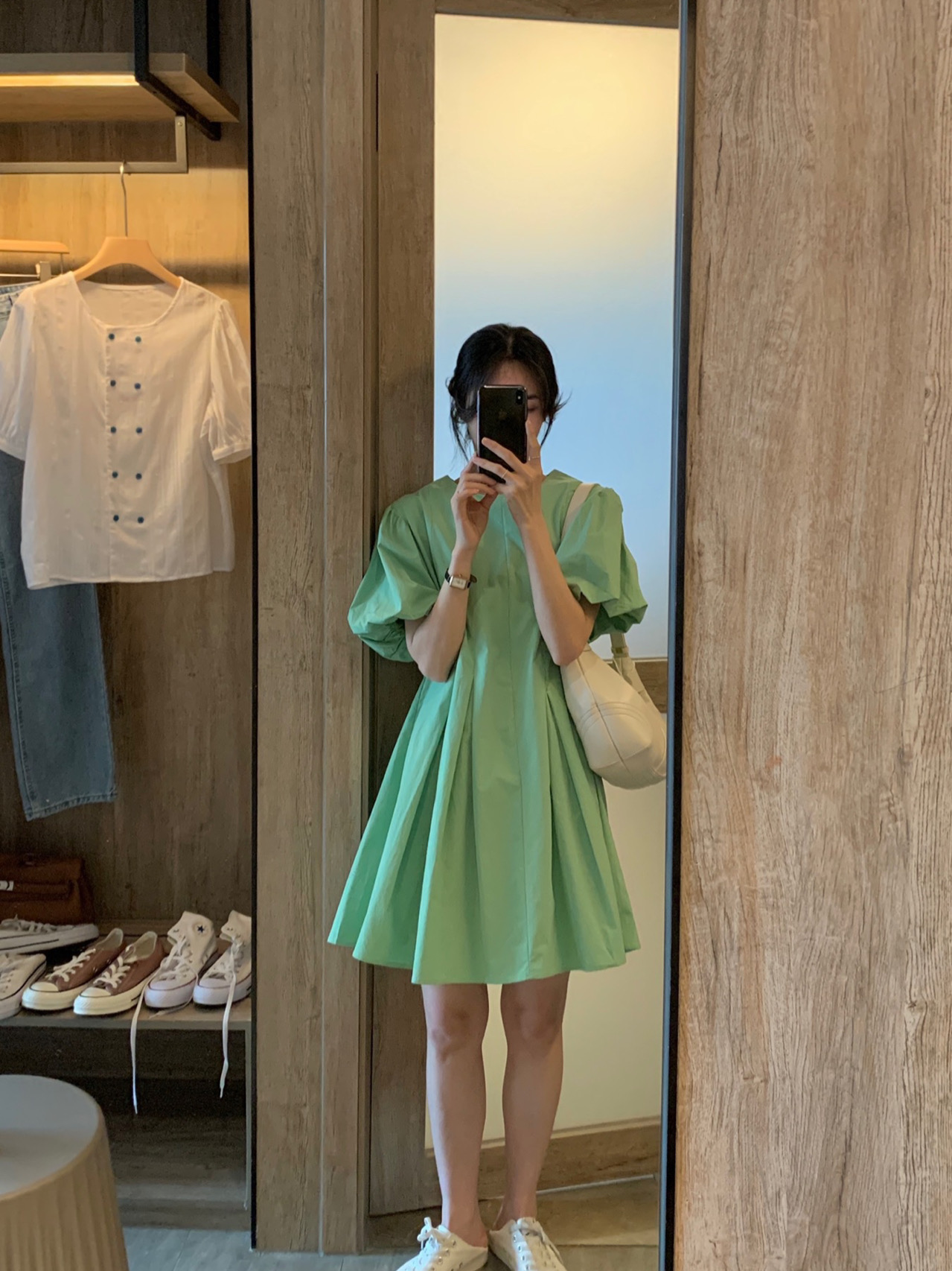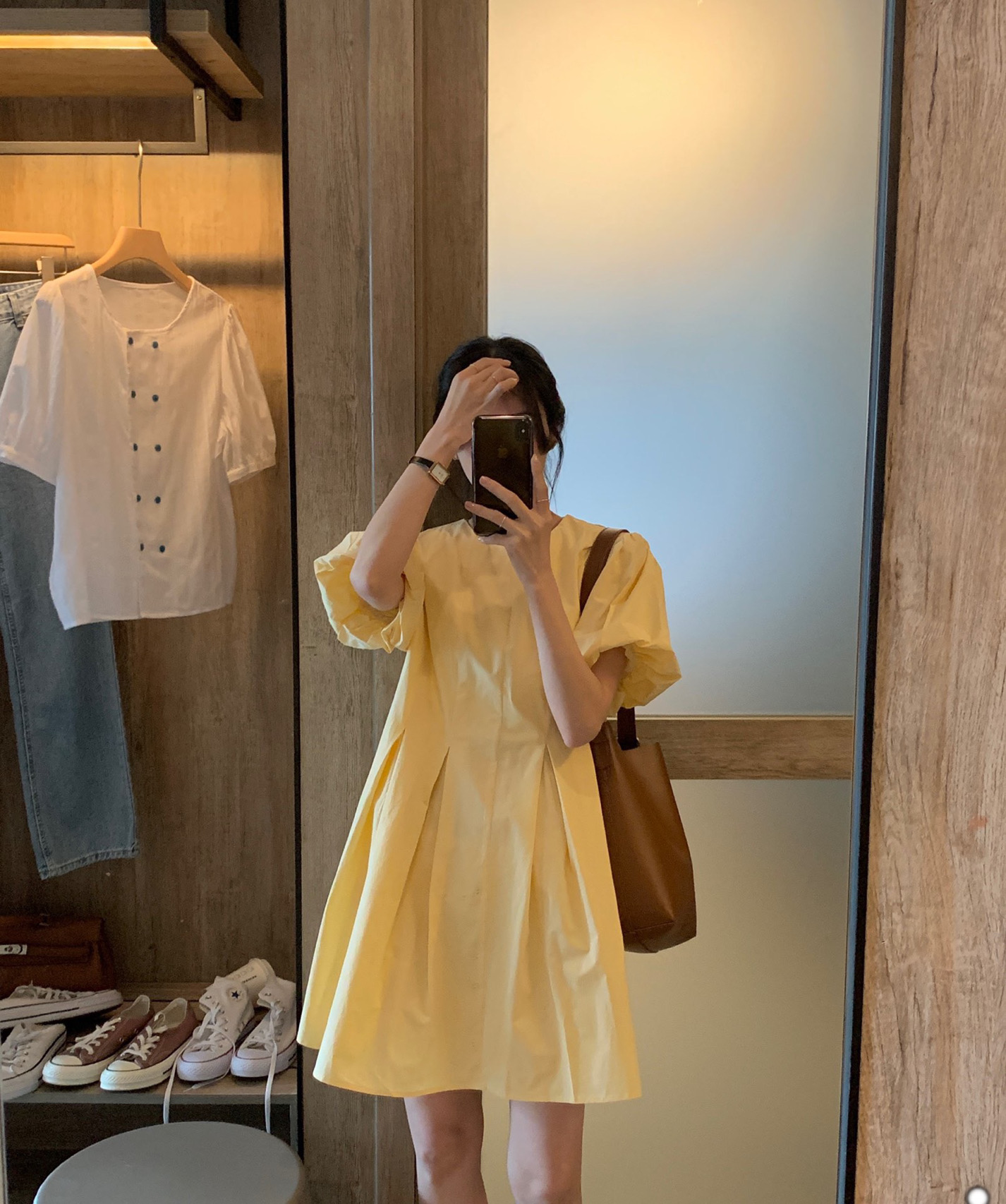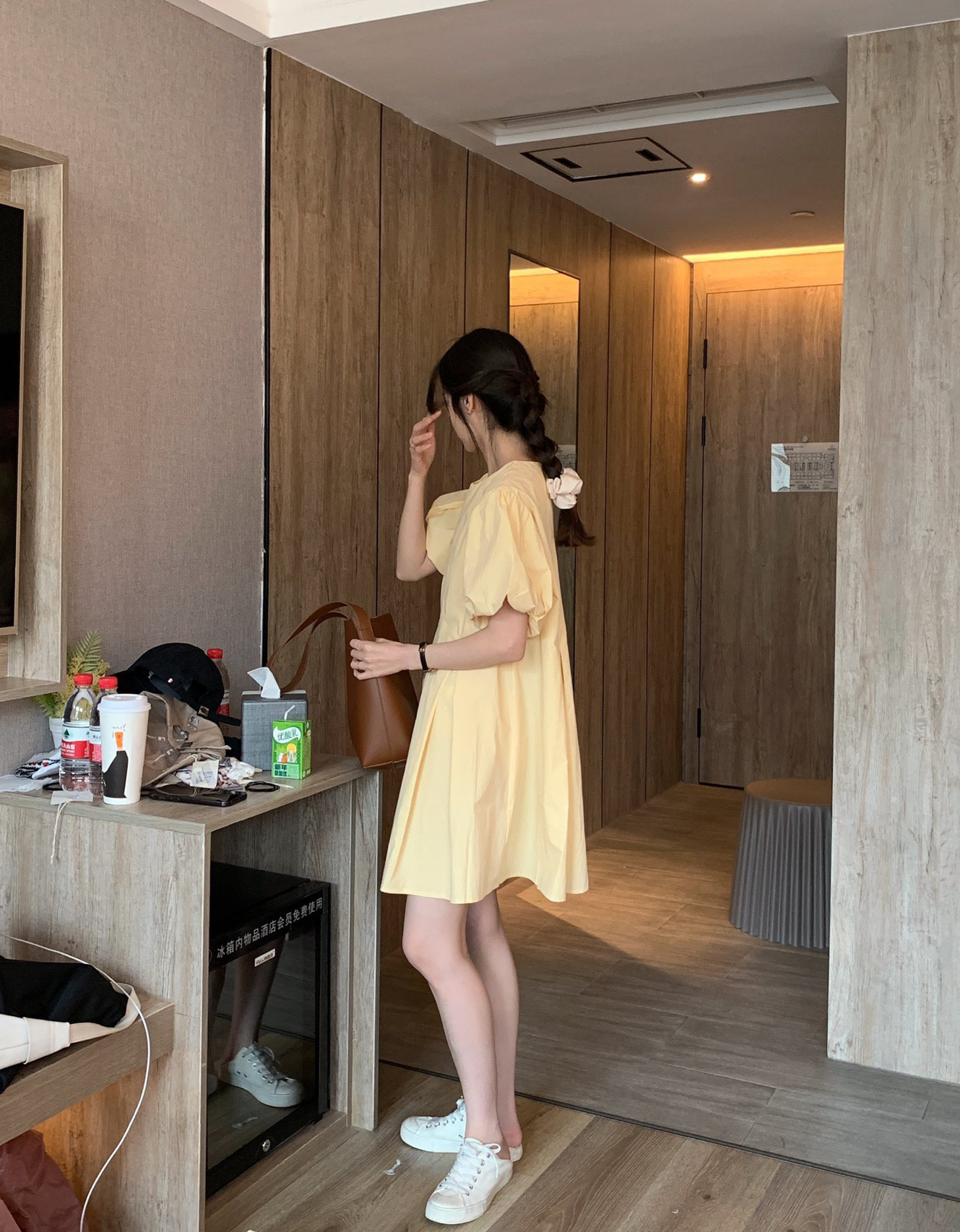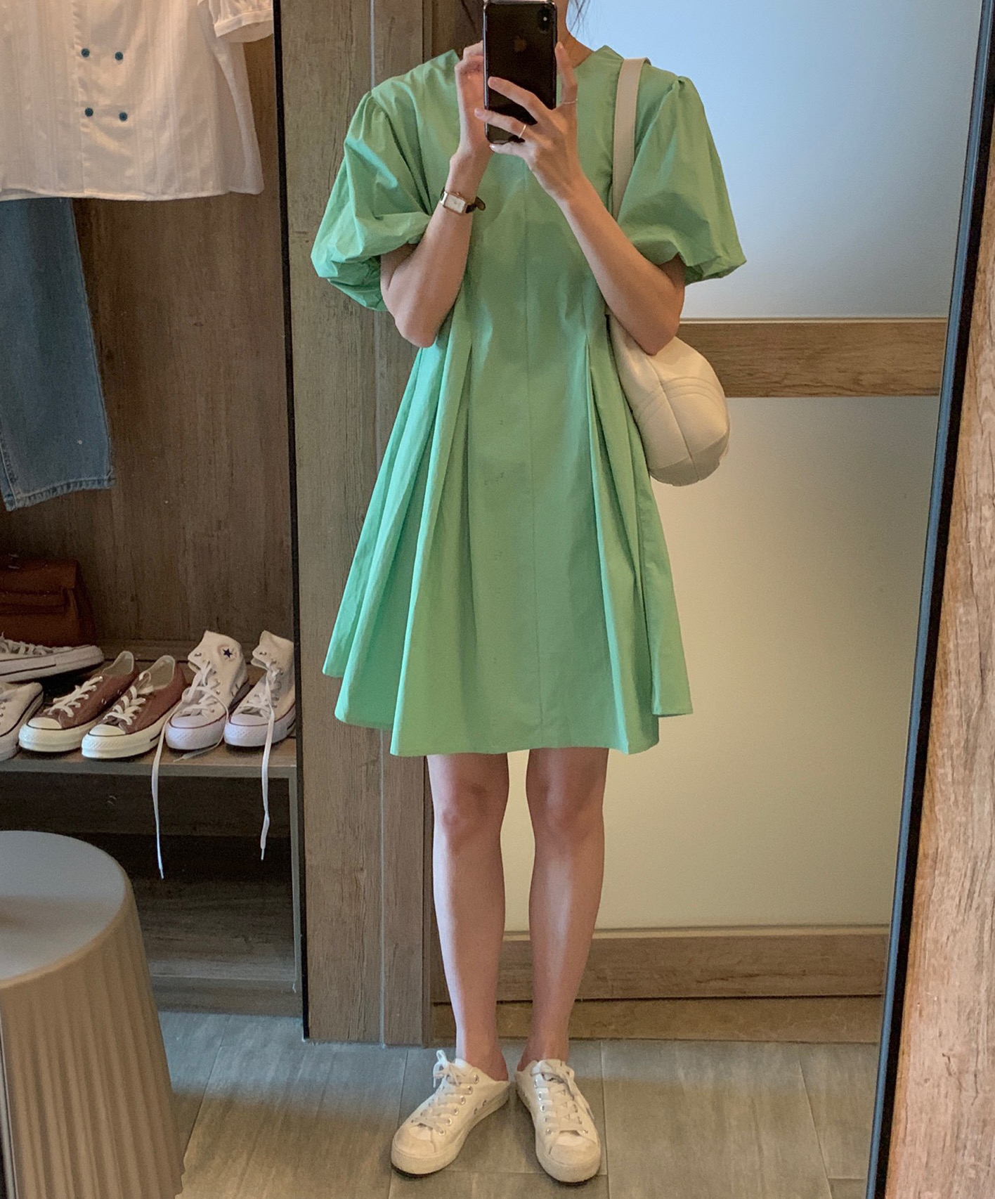 实拍 马卡龙色系2021夏季新款百褶简约纯色连衣裙百搭宽松chic裙