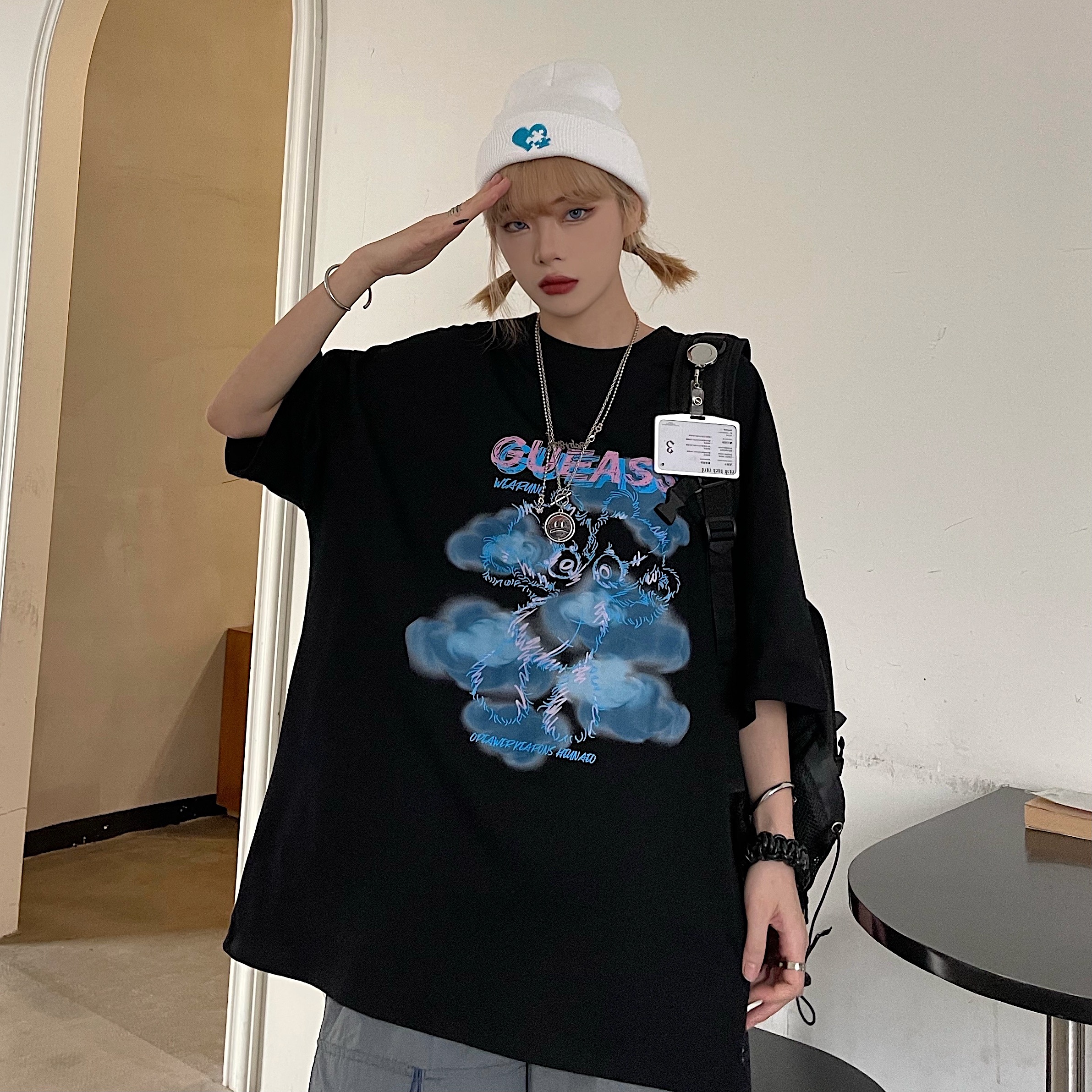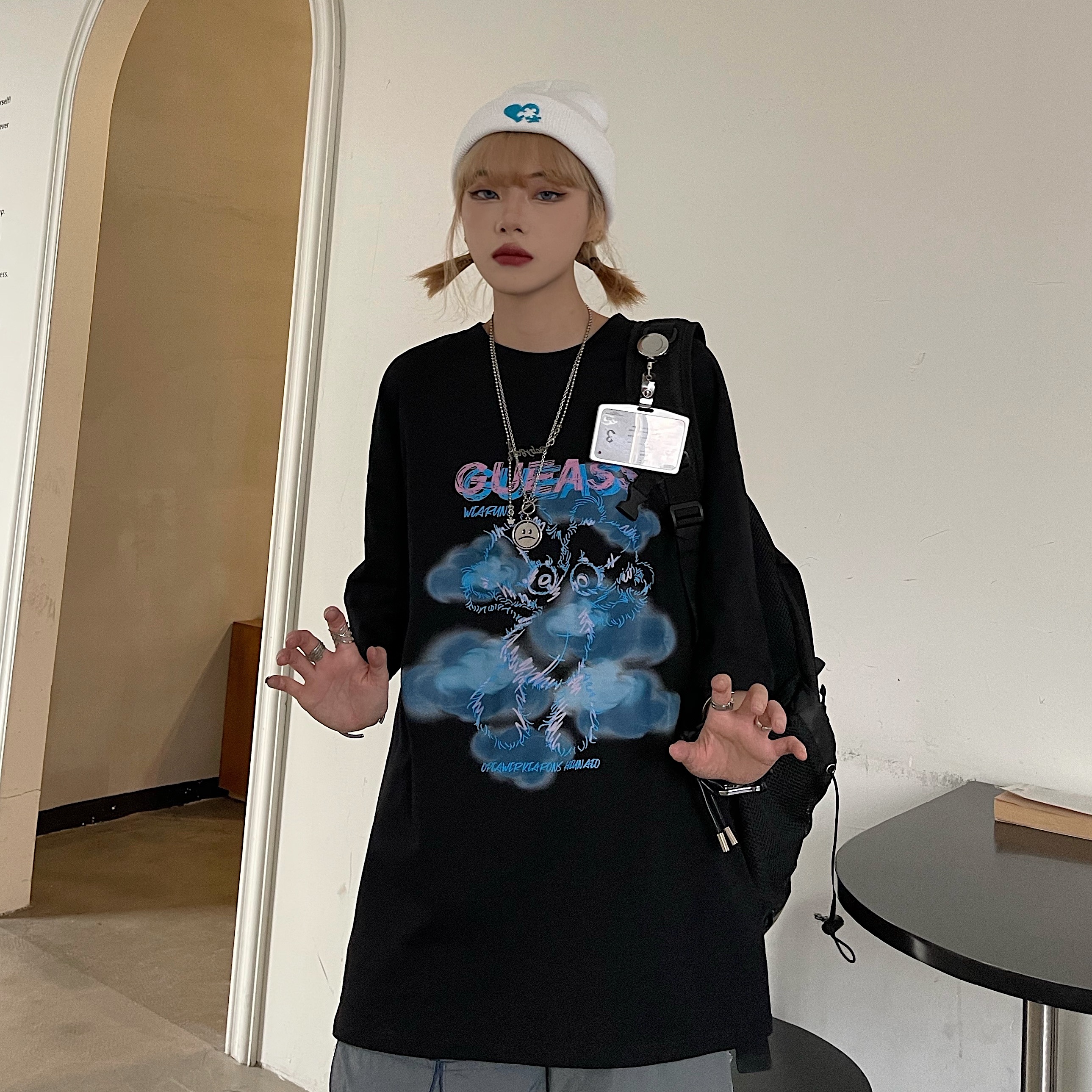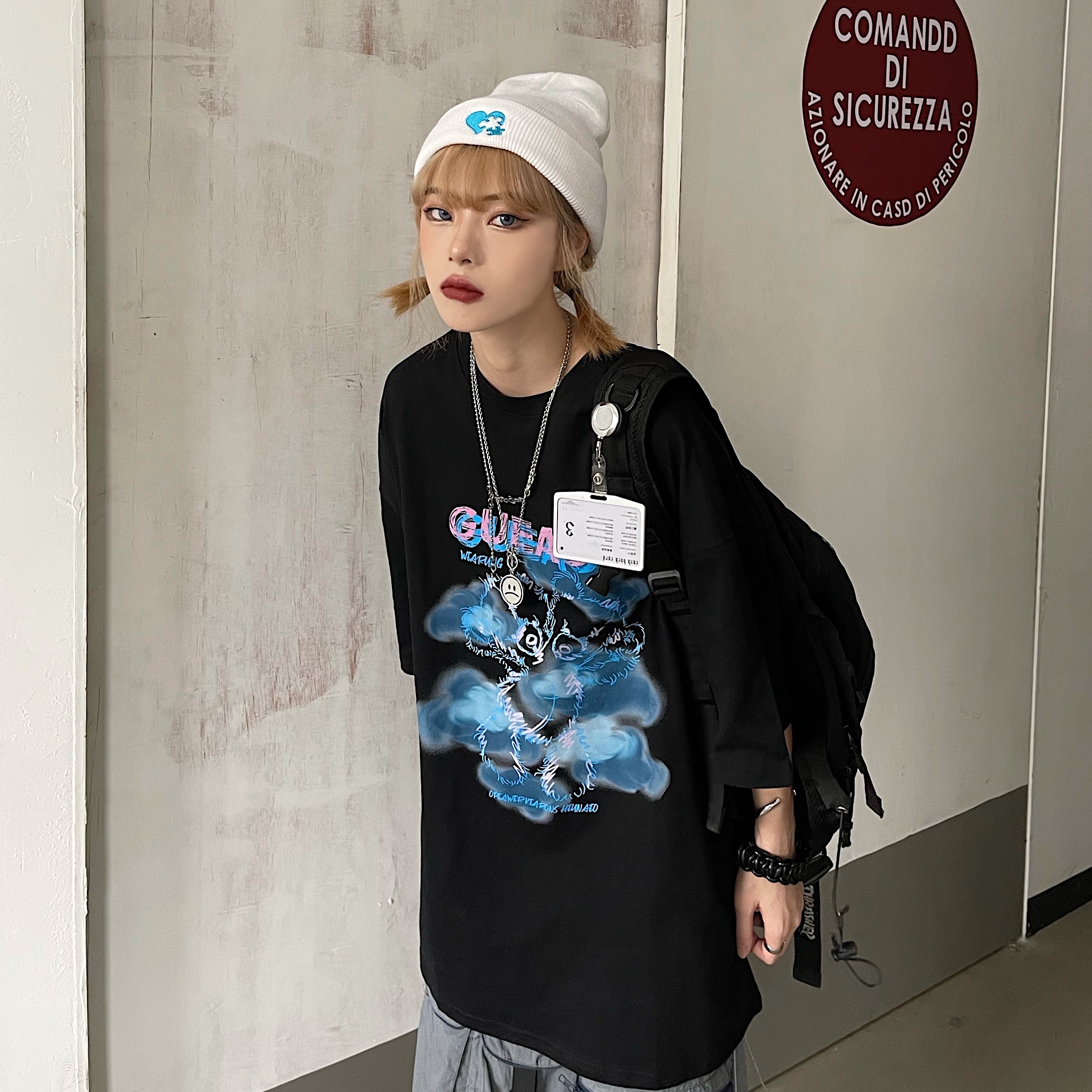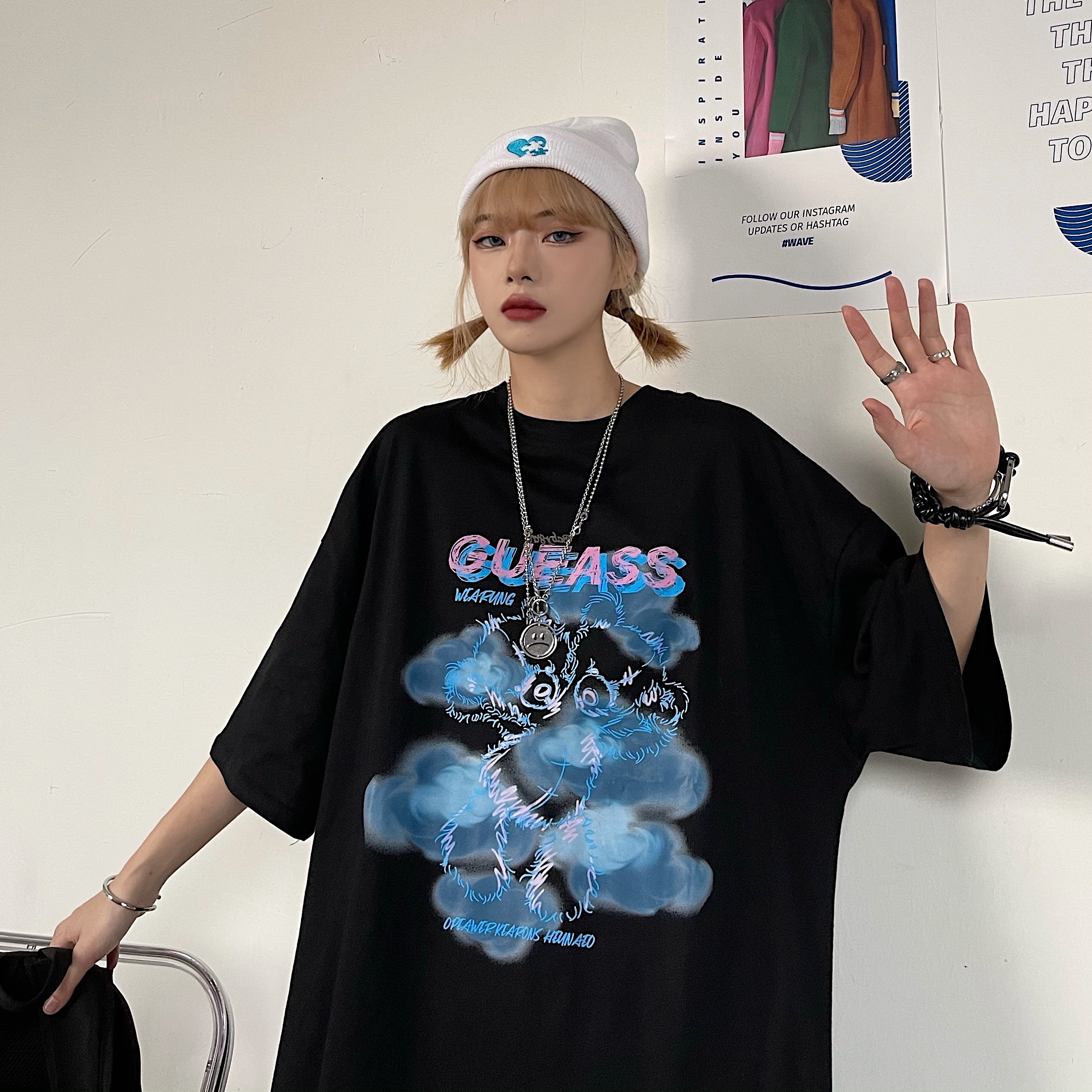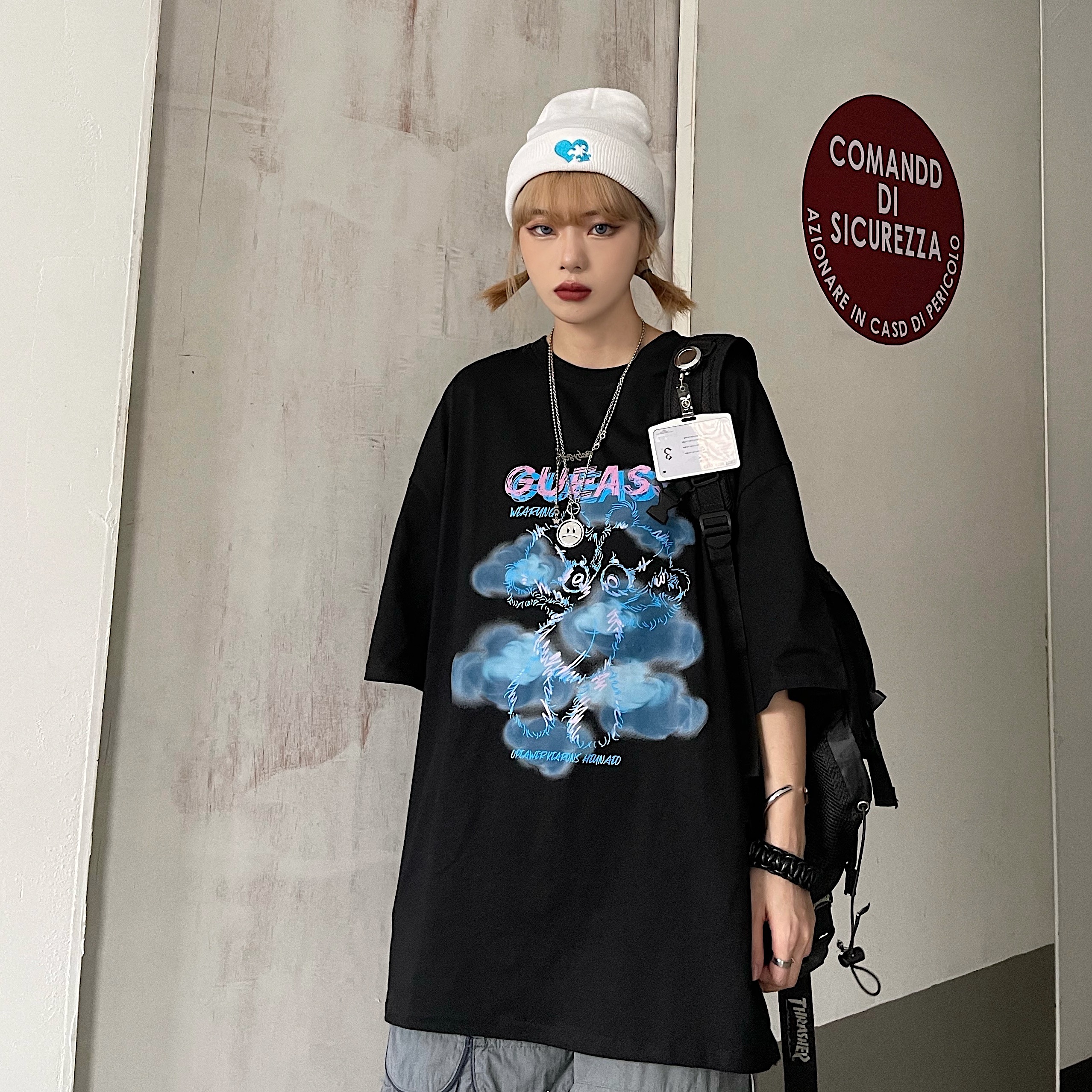 控+3实拍实价原宿纯棉INS迷雾小熊印花情侣短袖T恤男女上衣