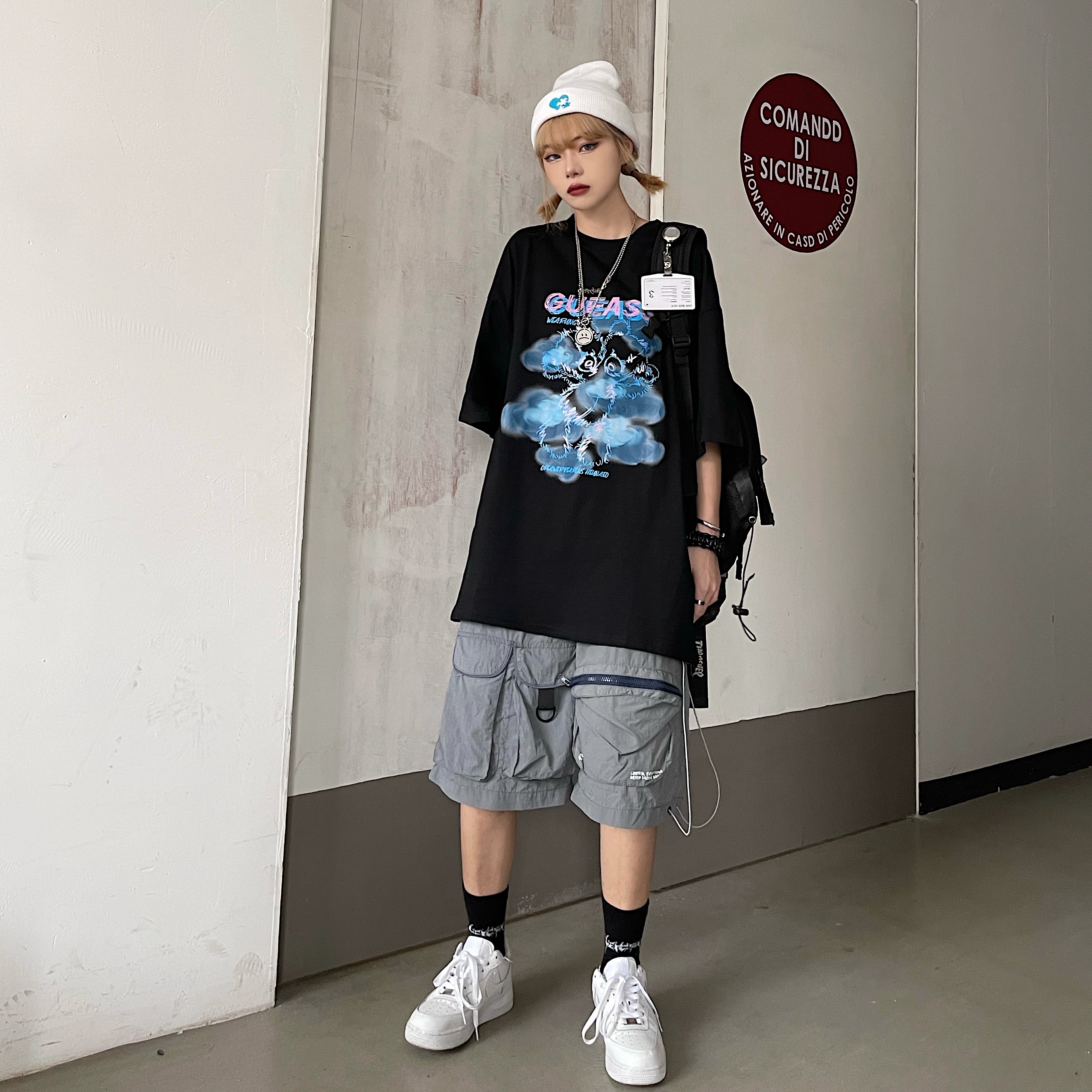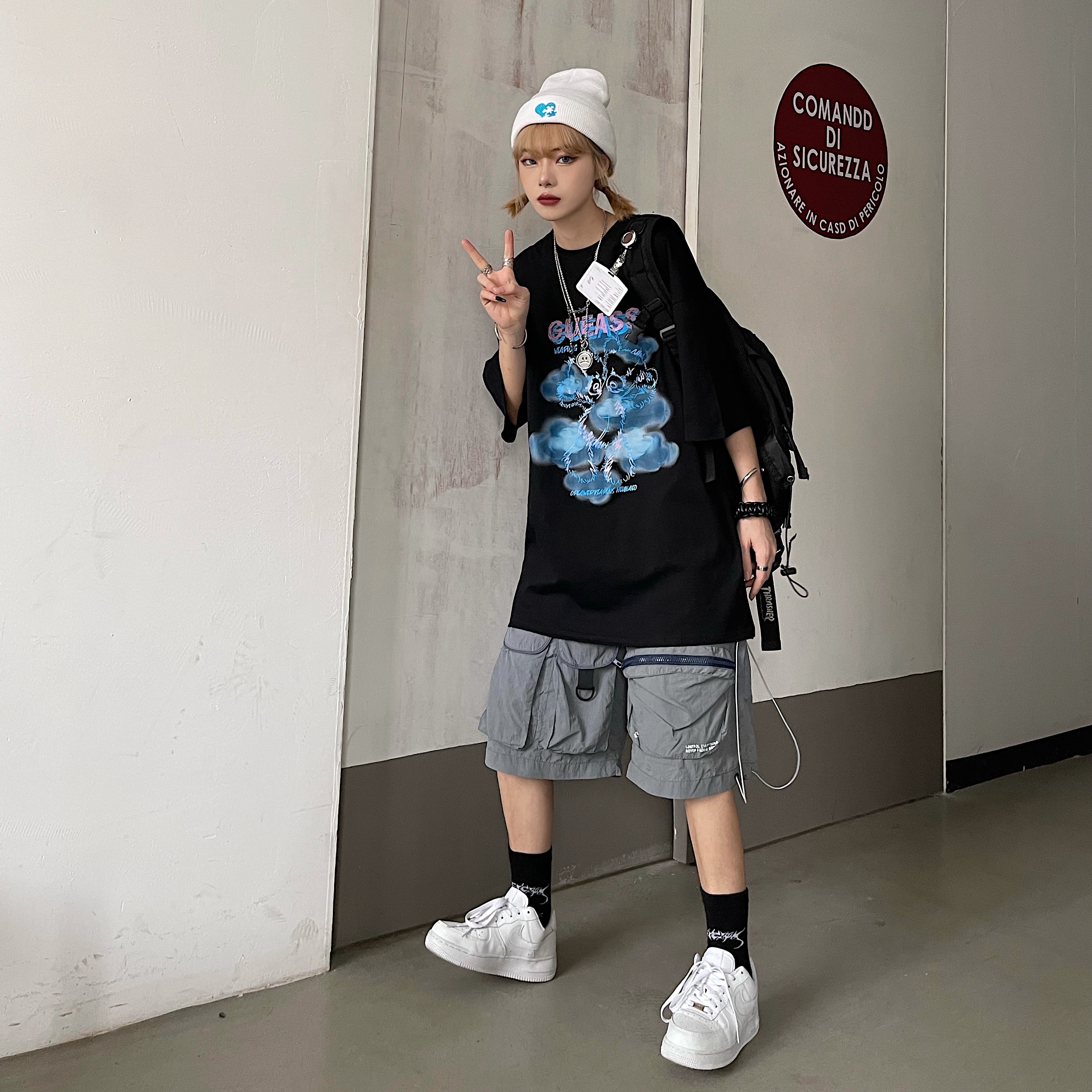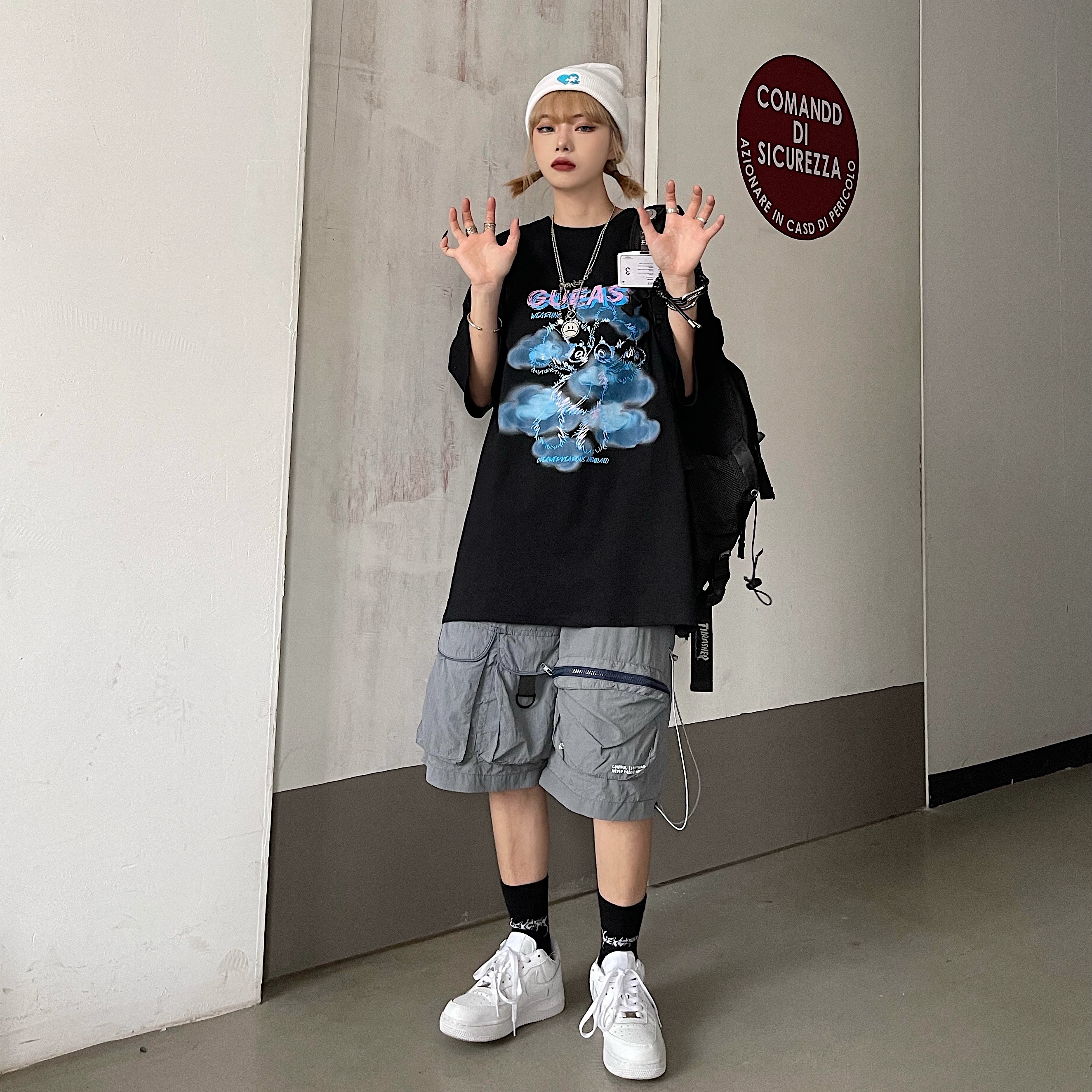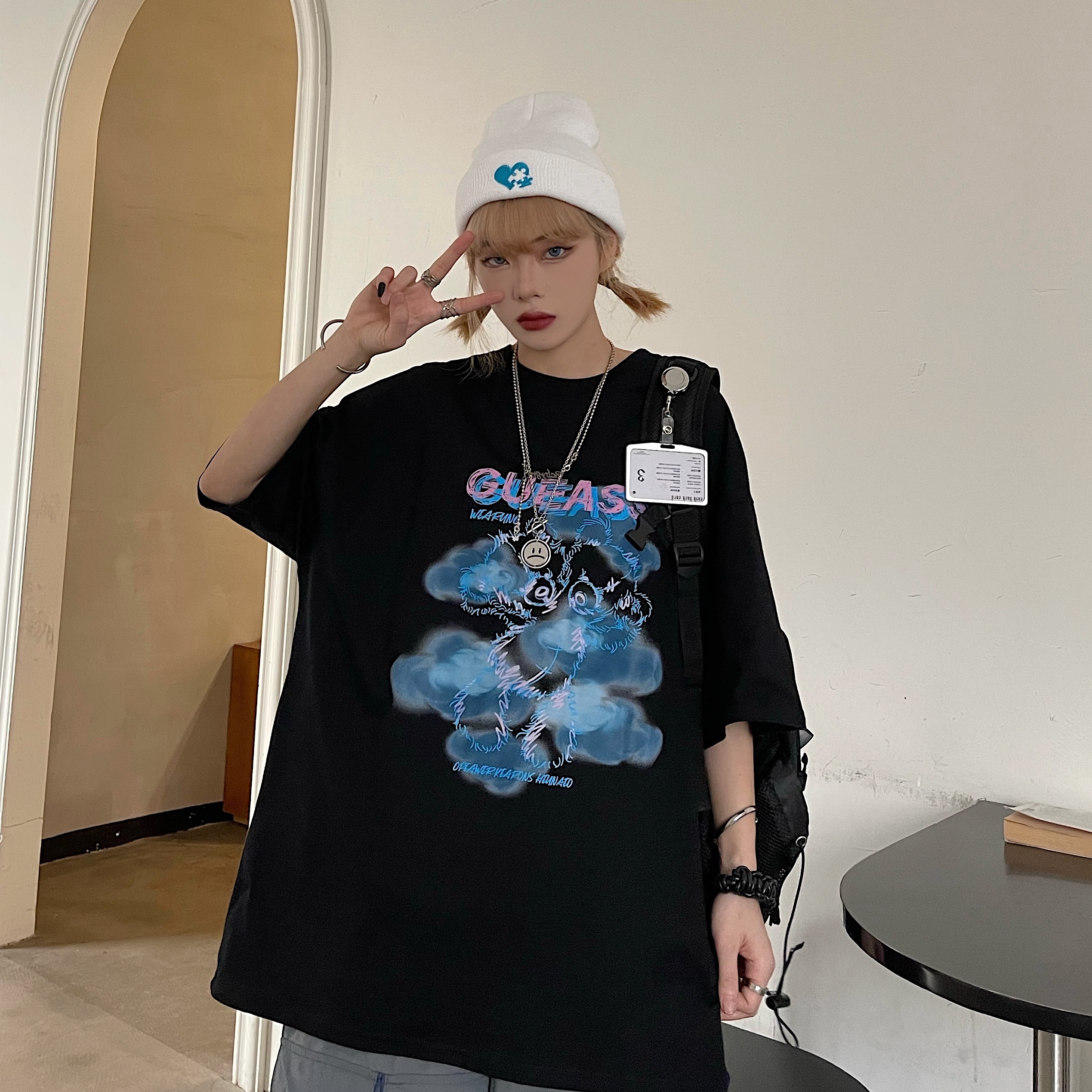 控+3实拍实价原宿纯棉INS迷雾小熊印花情侣短袖T恤男女上衣