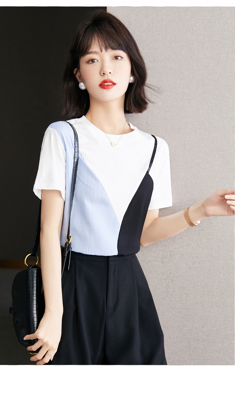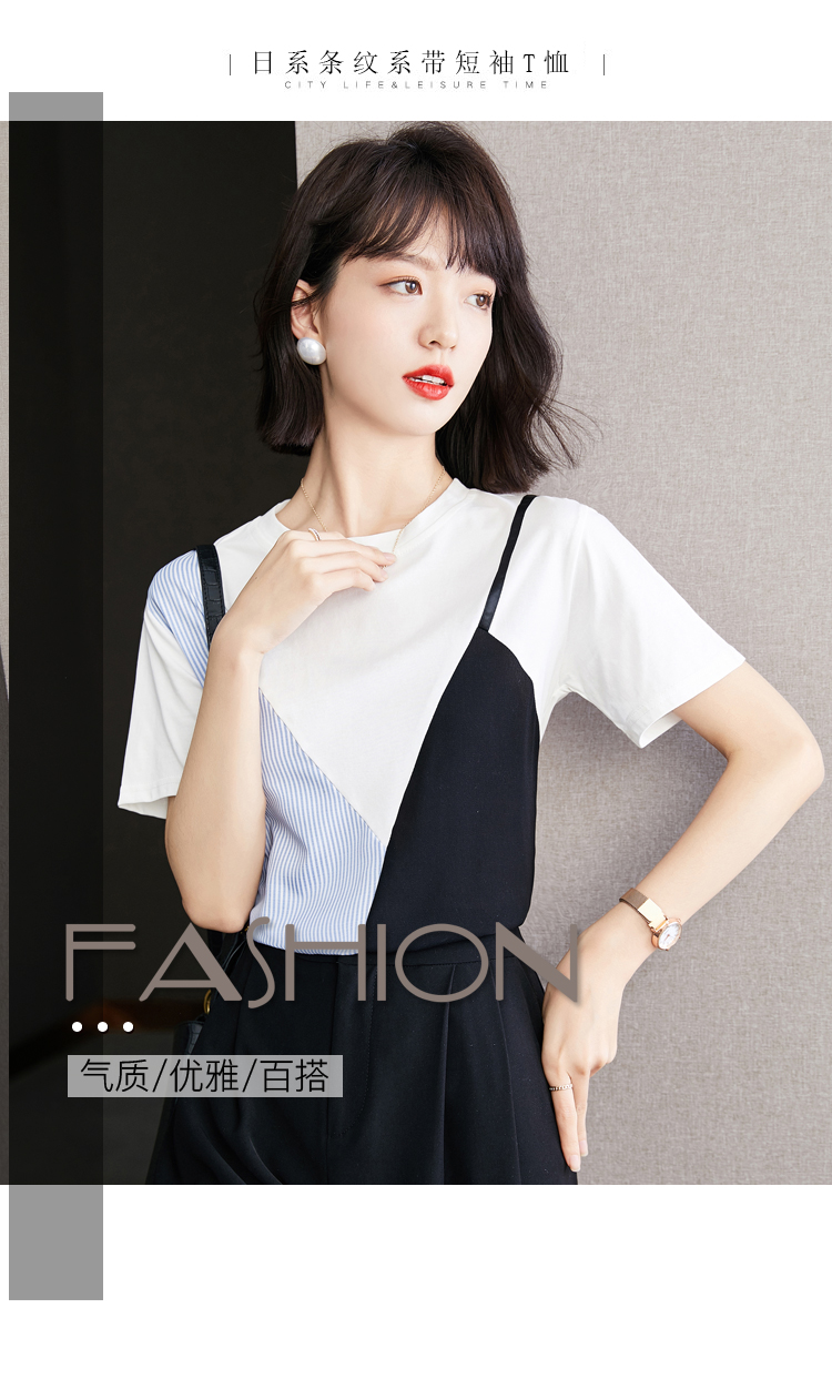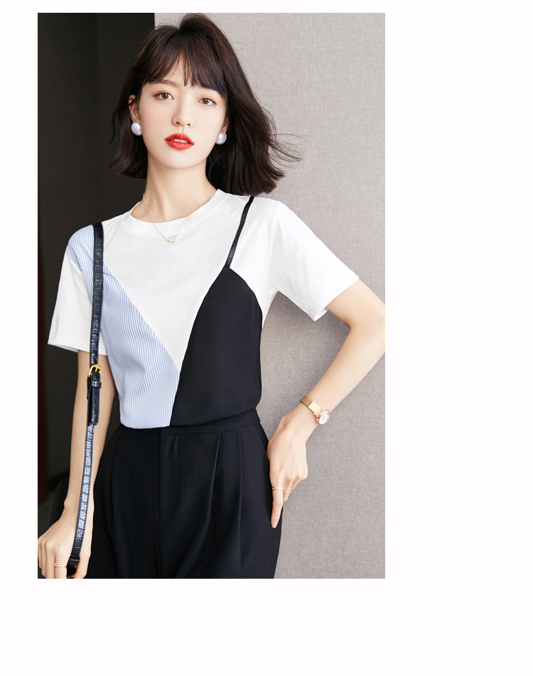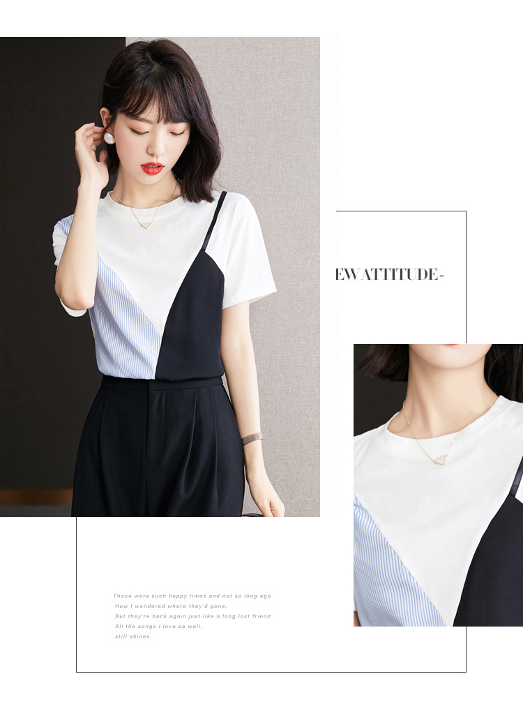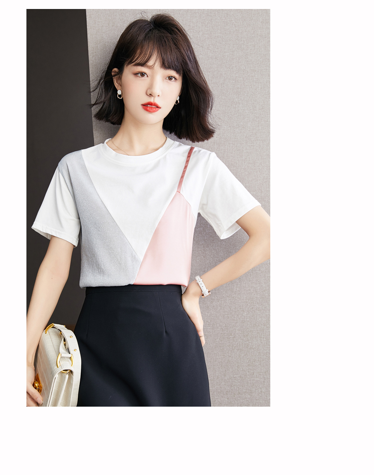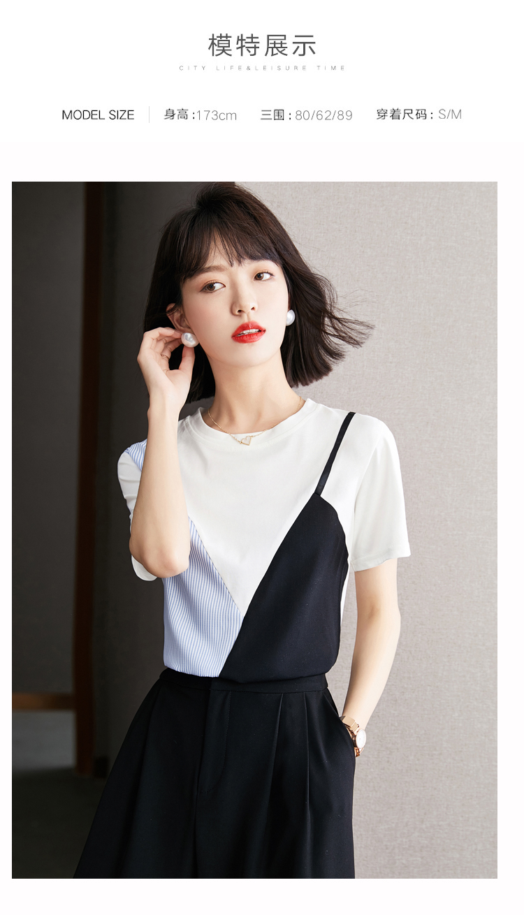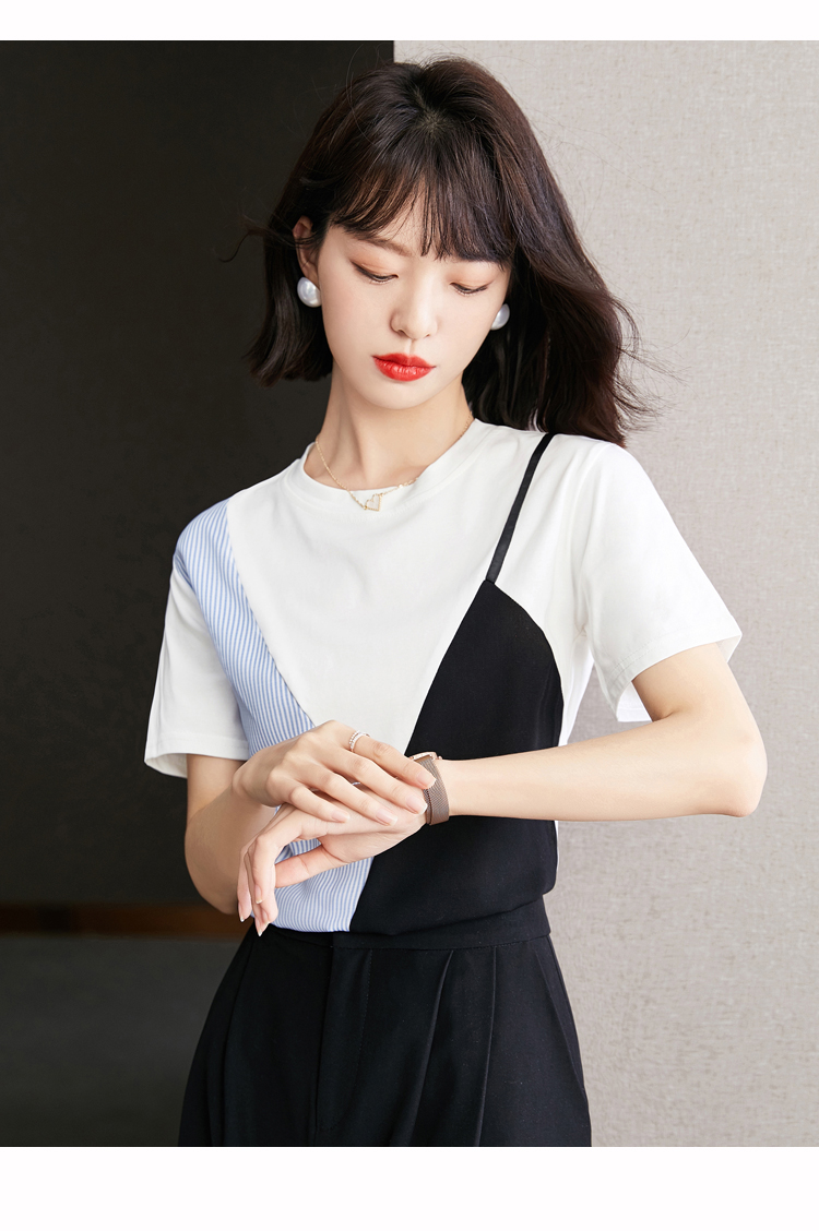 已出货实拍#假两件t恤短袖女夏装2021年新夏季薄款设计感小众上衣
