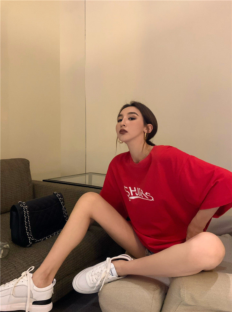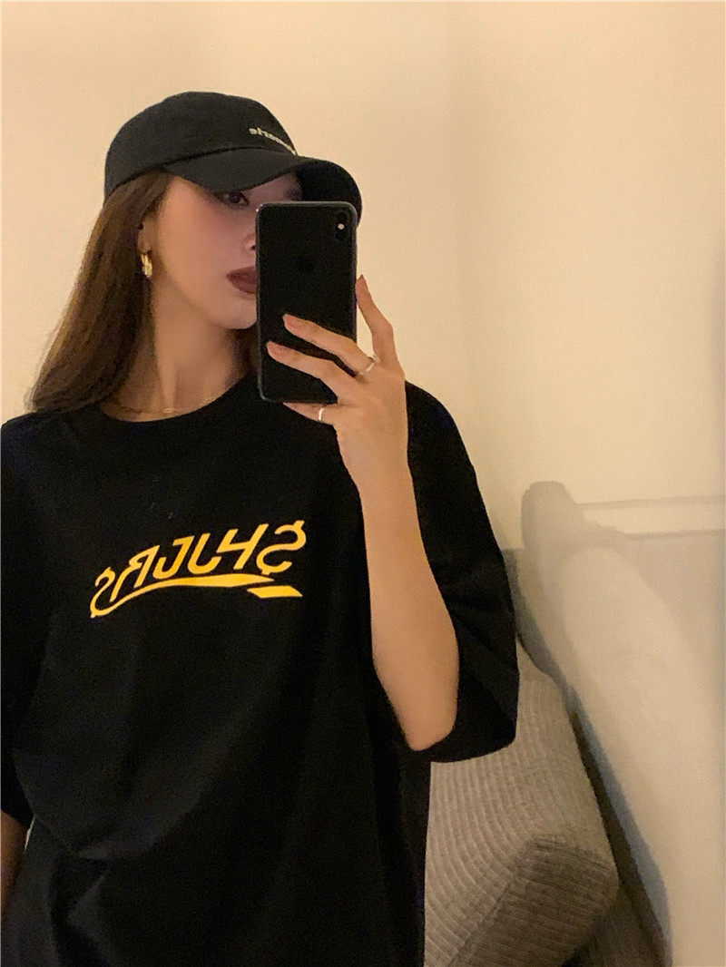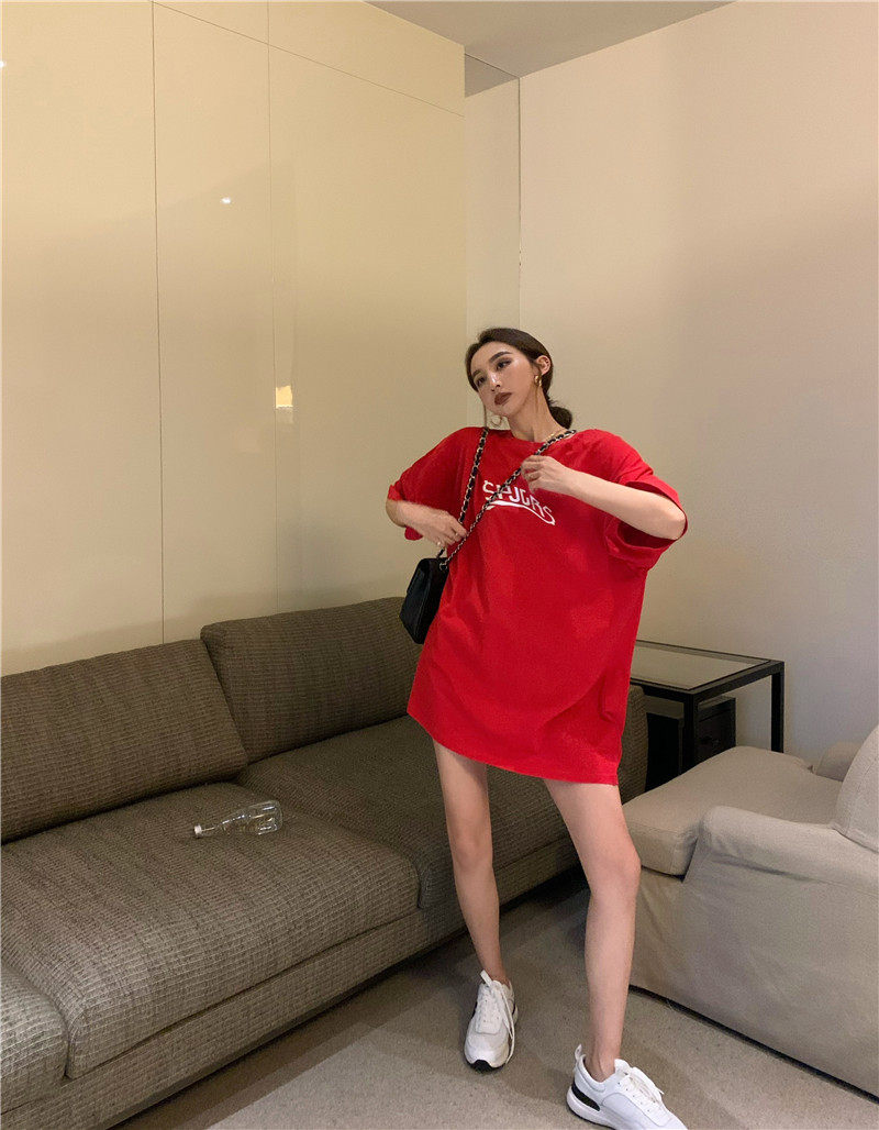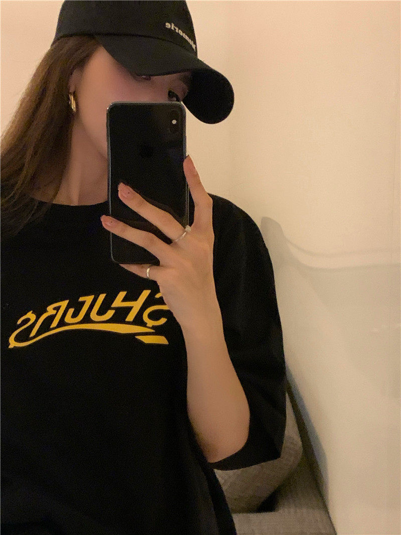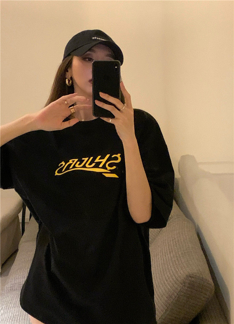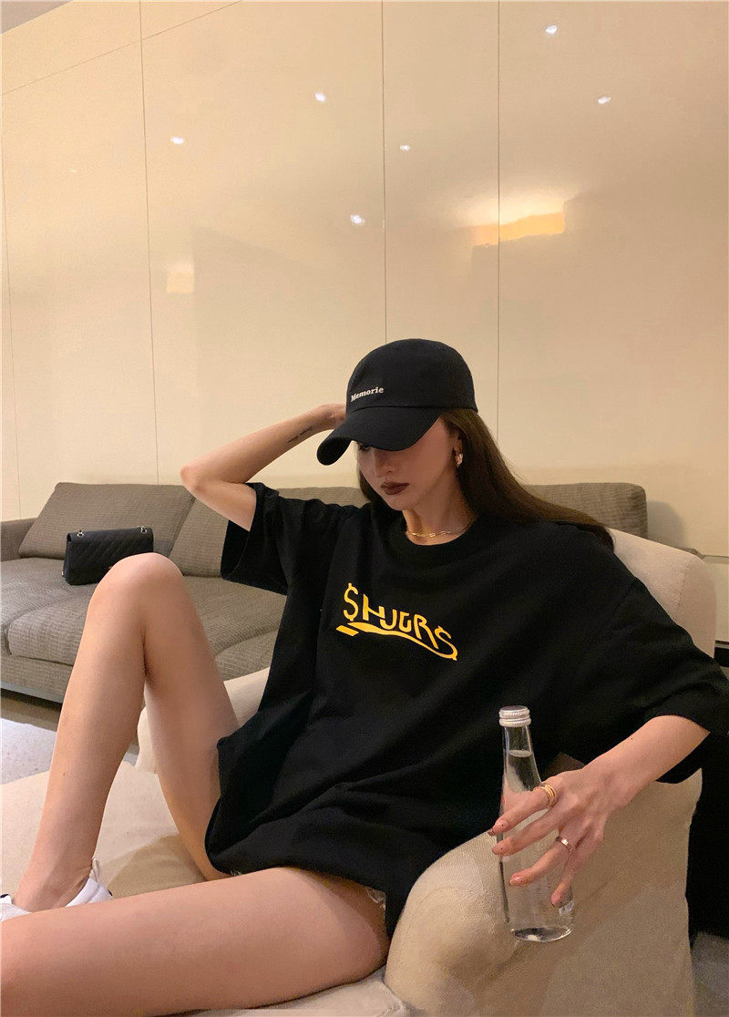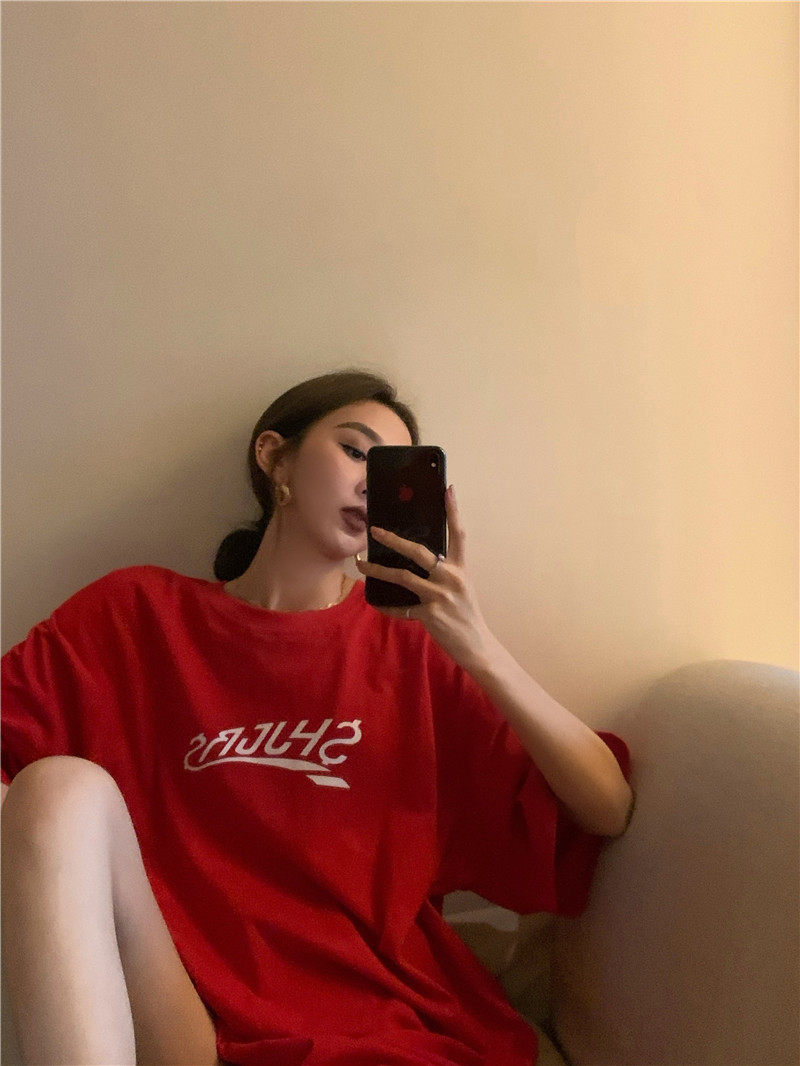 实拍实价 休闲百搭简约印花宽松中长款T恤上衣