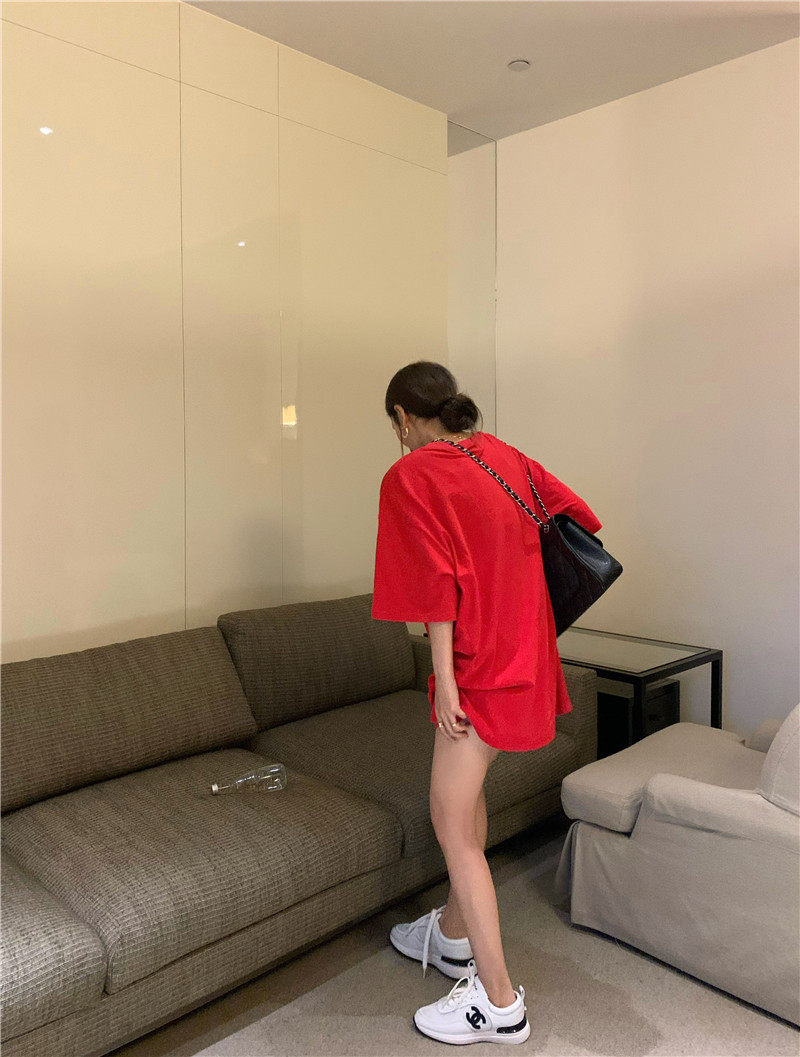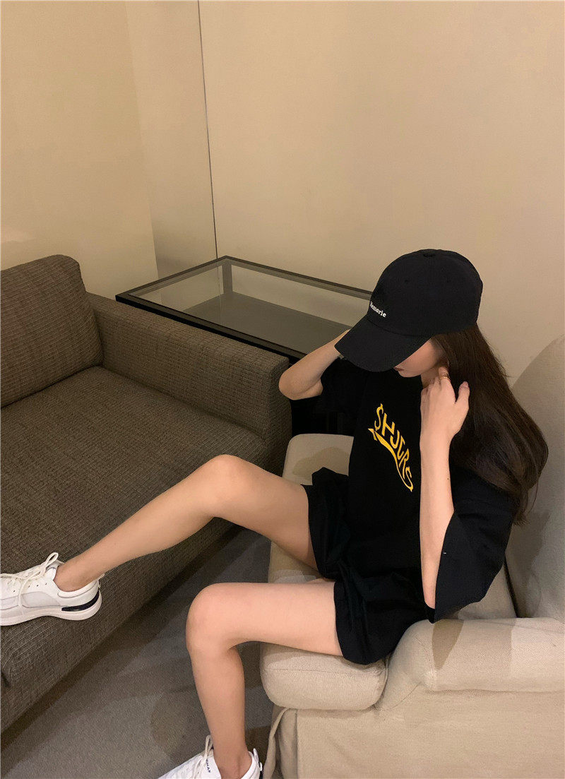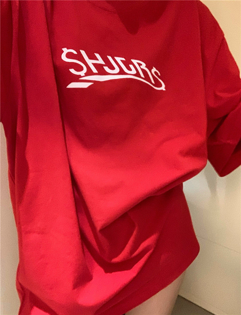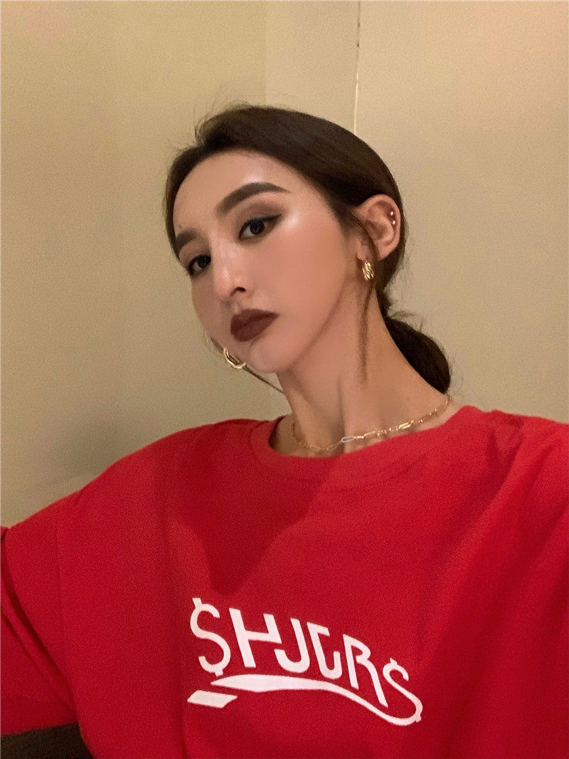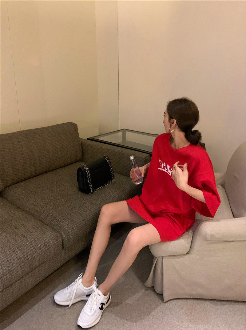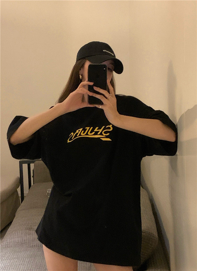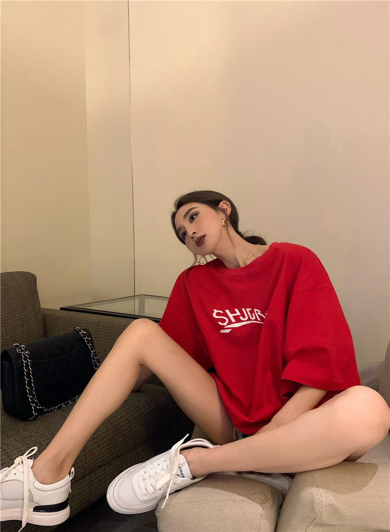 实拍实价 休闲百搭简约印花宽松中长款T恤上衣