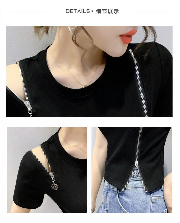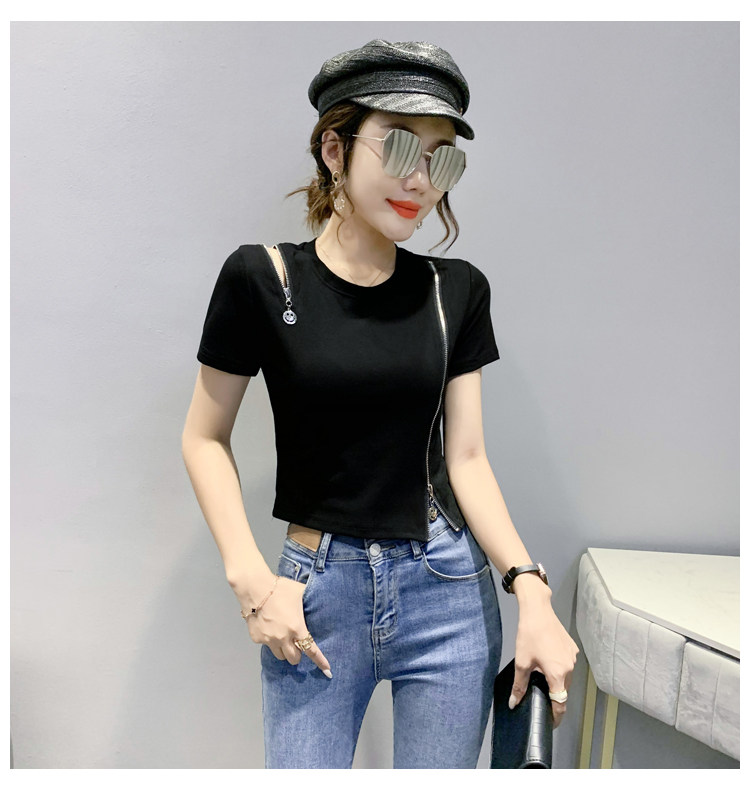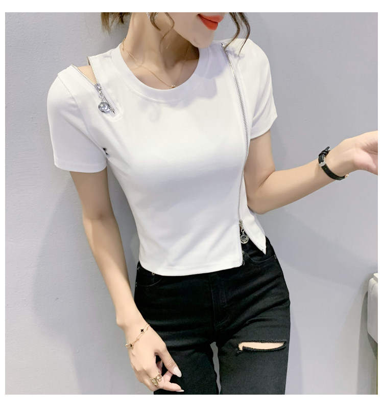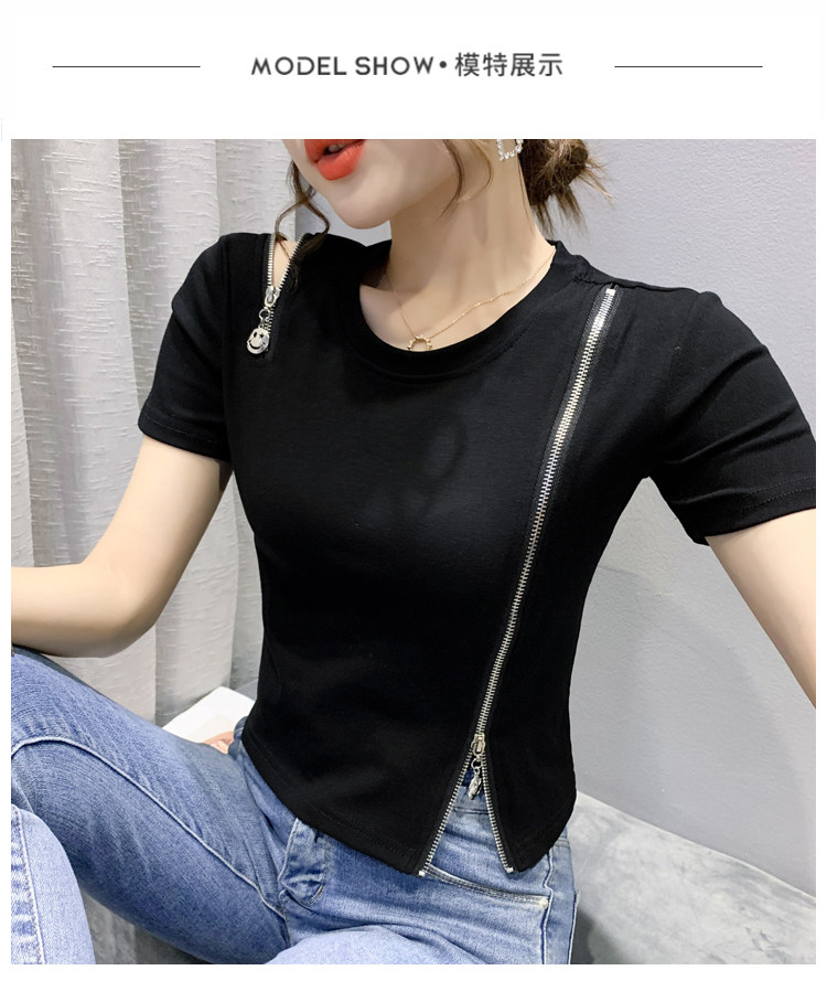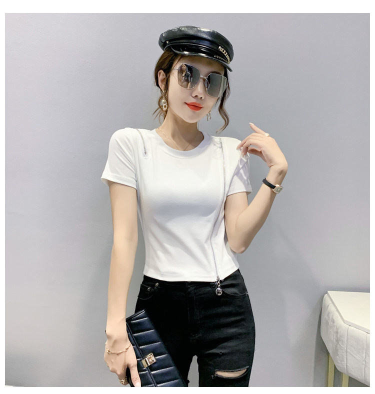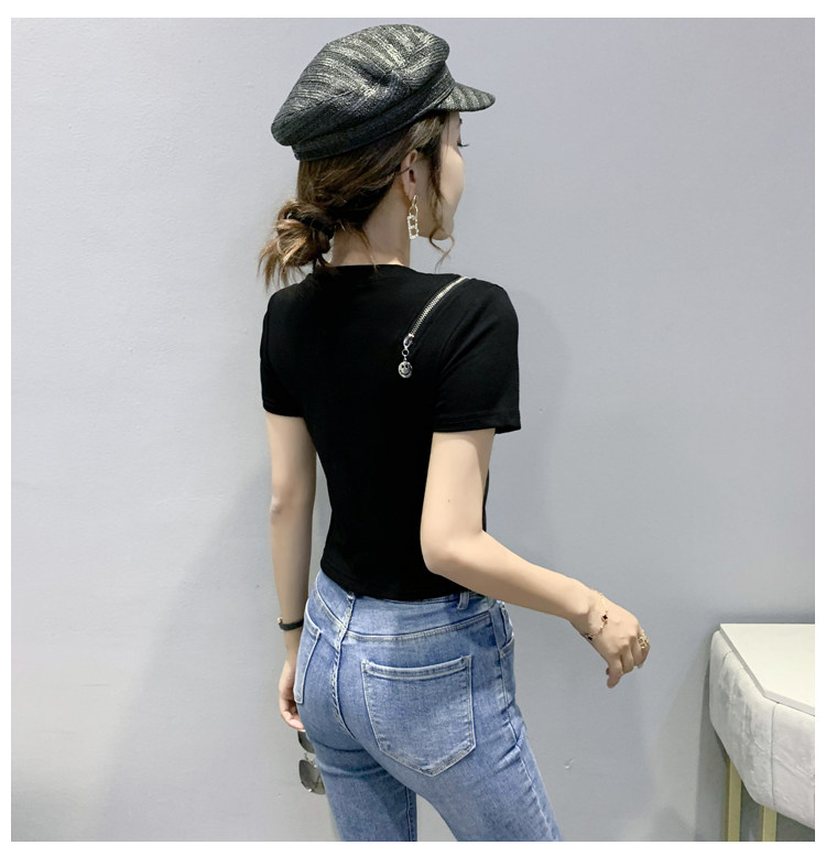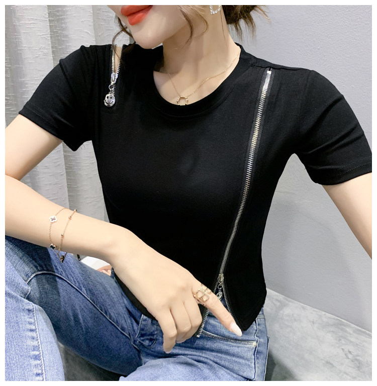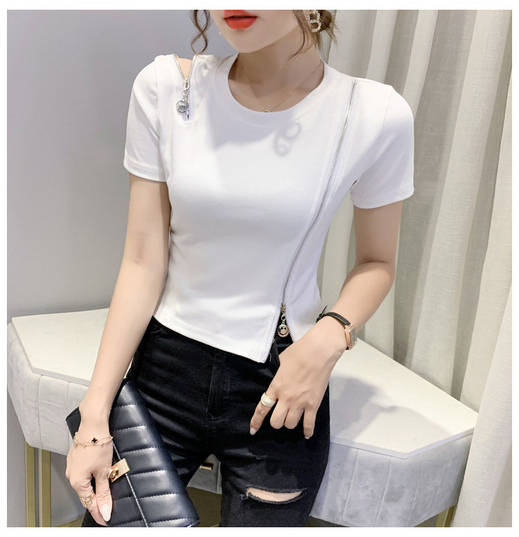 2021春夏新款韩版修身拉链设计感时尚个性不规则打底衫
