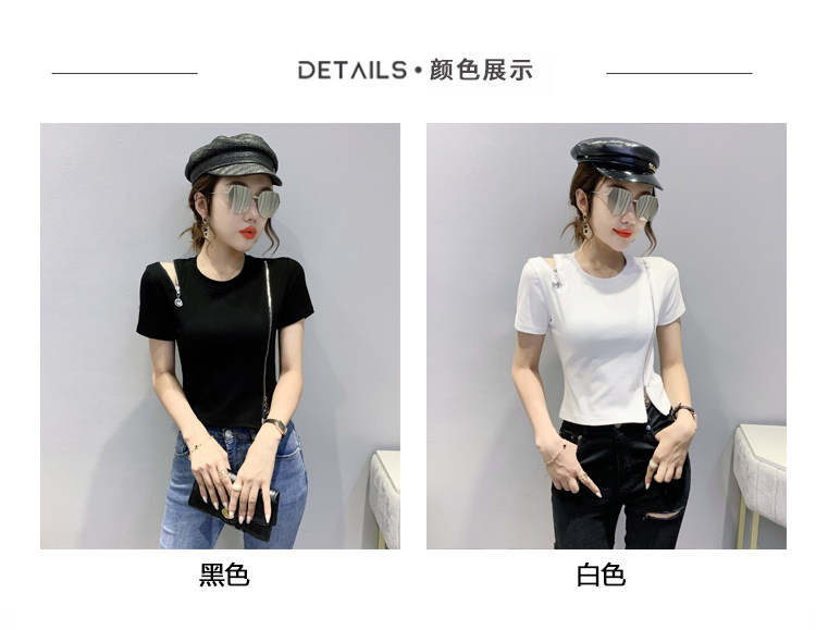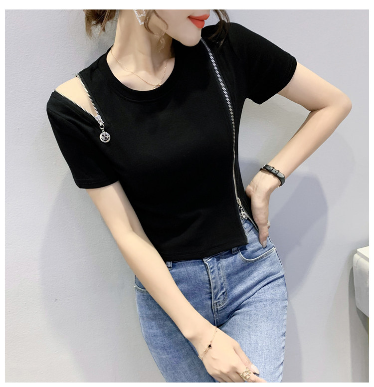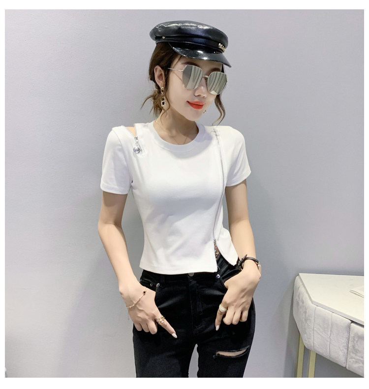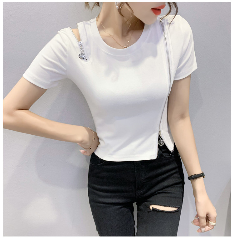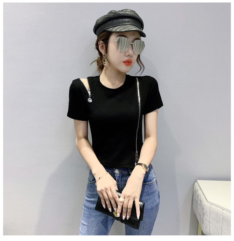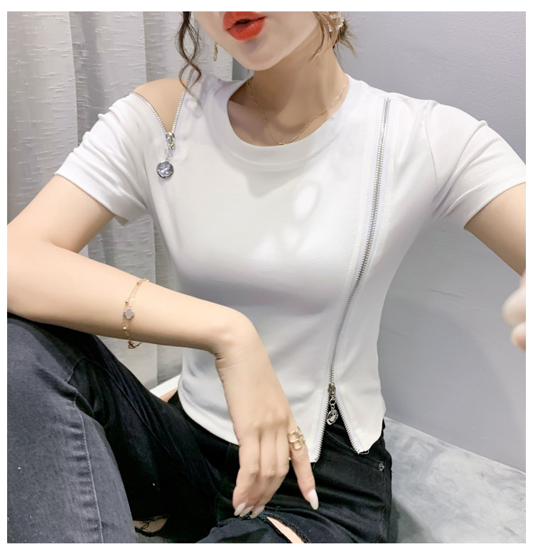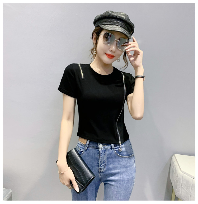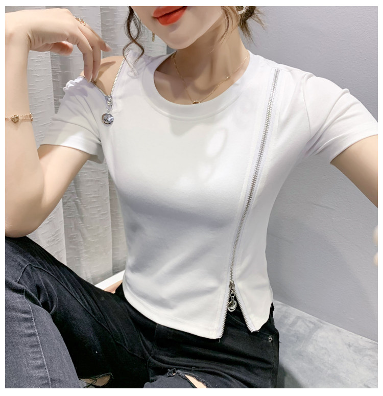 2021春夏新款韩版修身拉链设计感时尚个性不规则打底衫