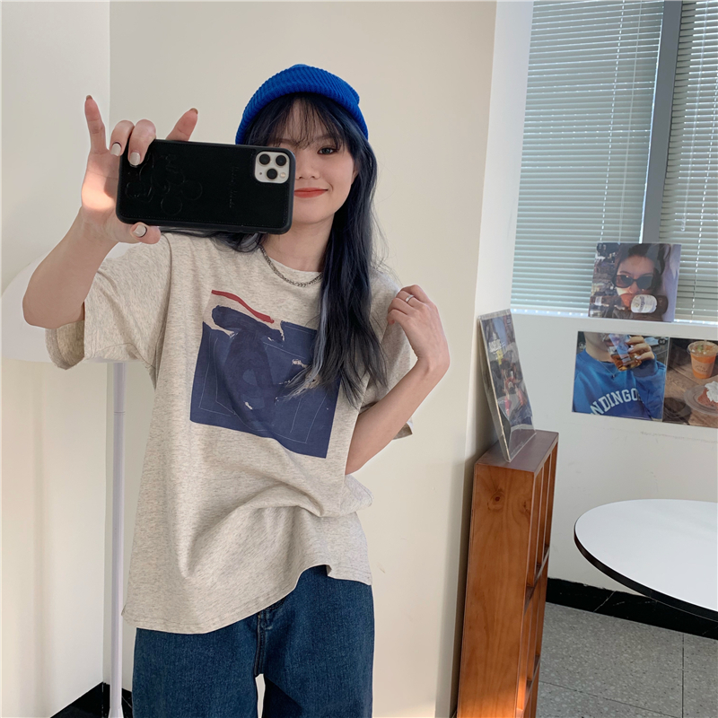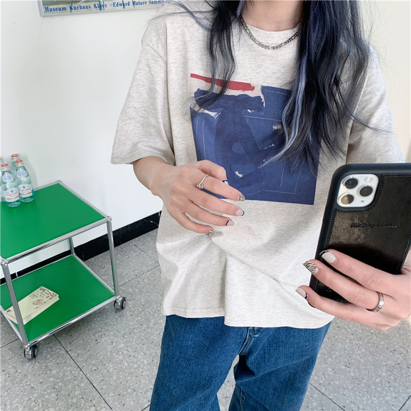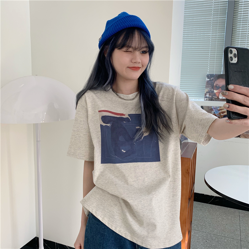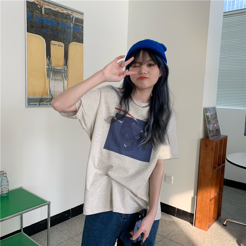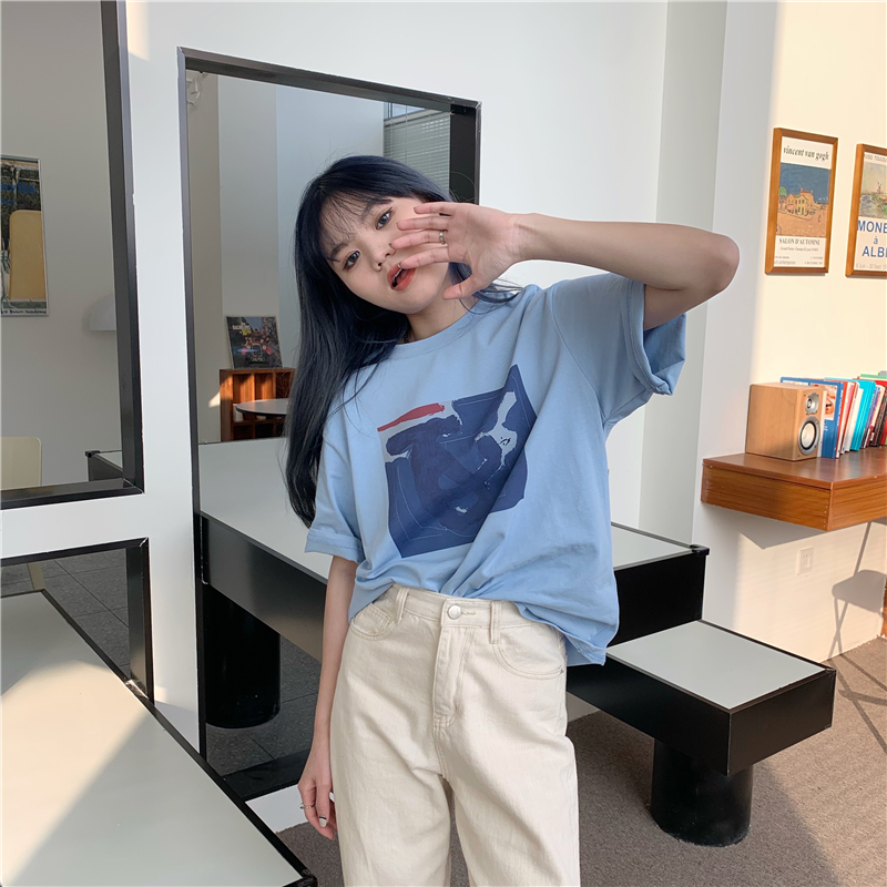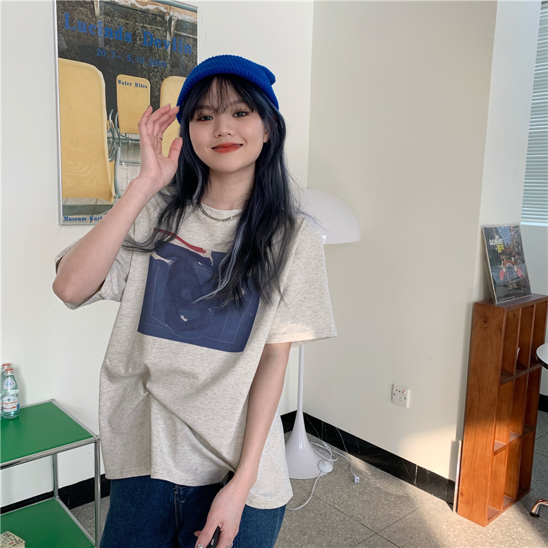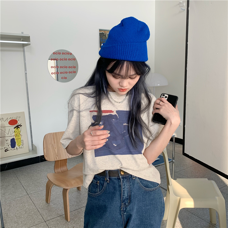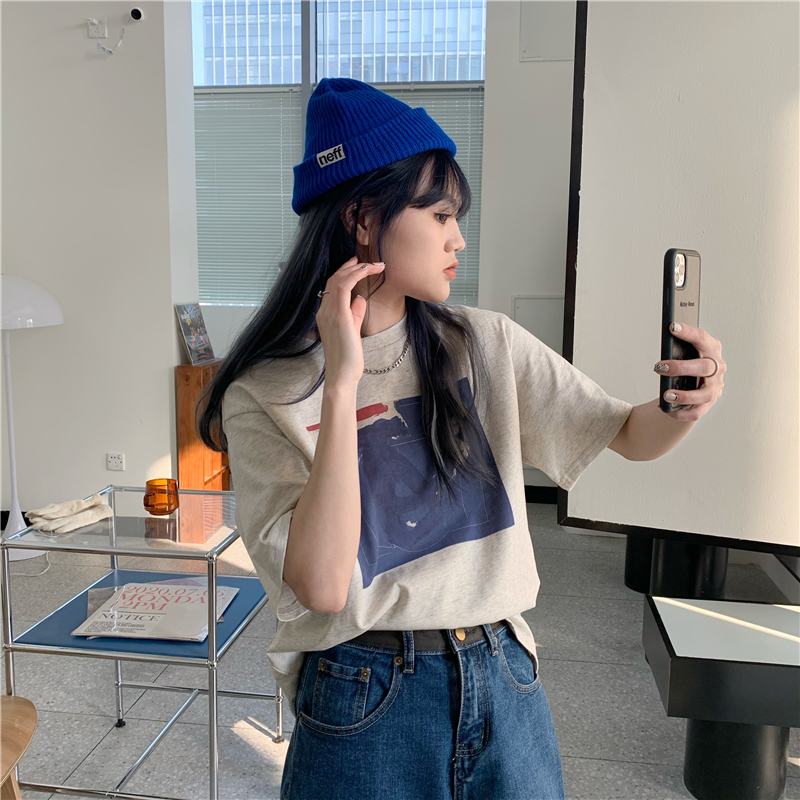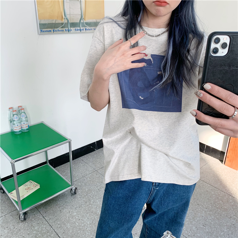 实拍实价 复古基础宽松印花上衣圆领短袖t恤
