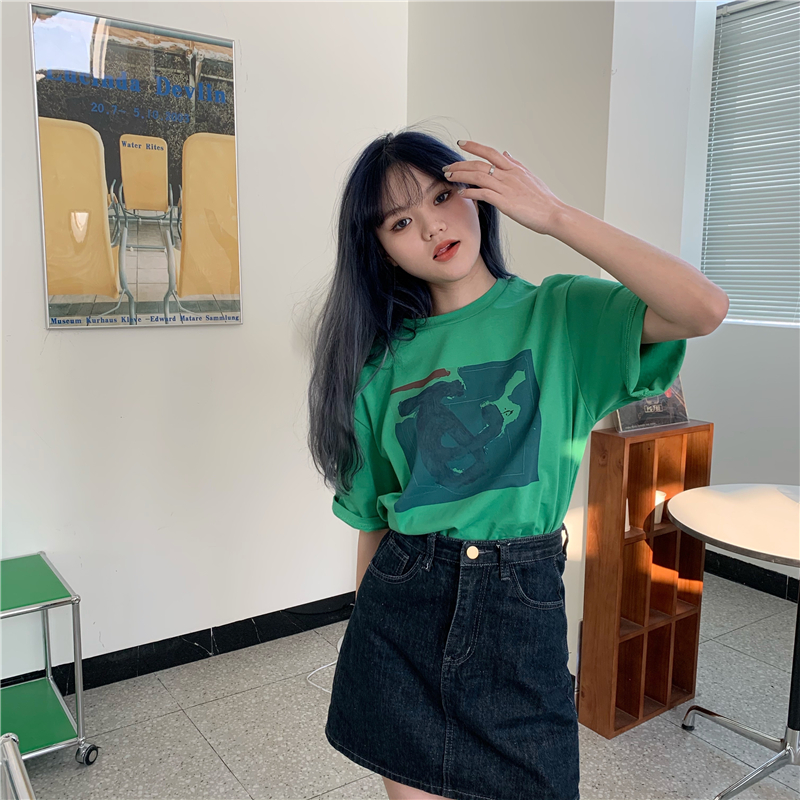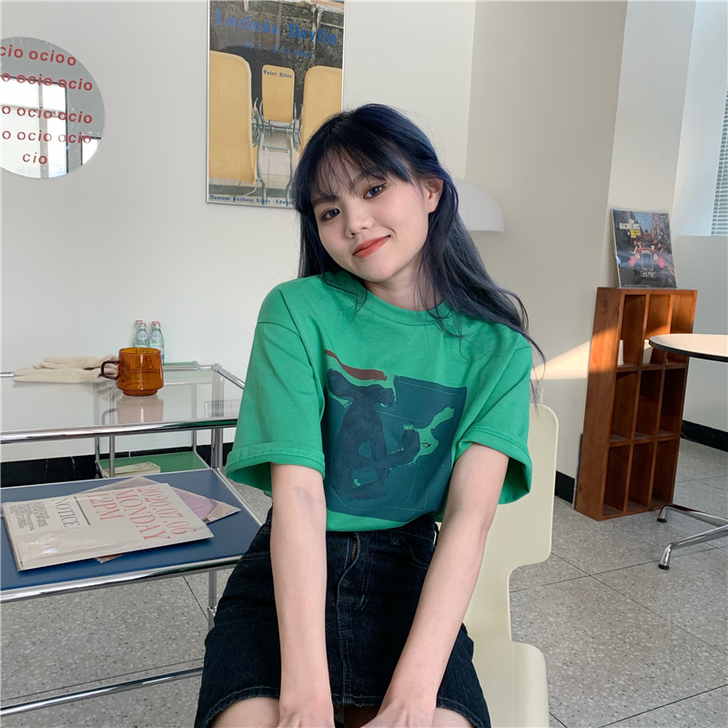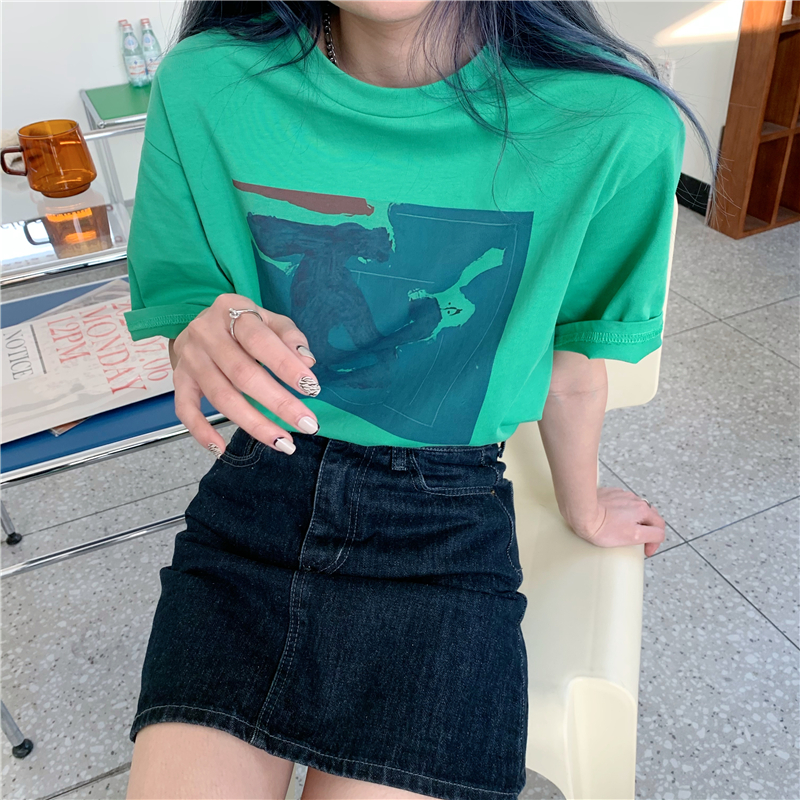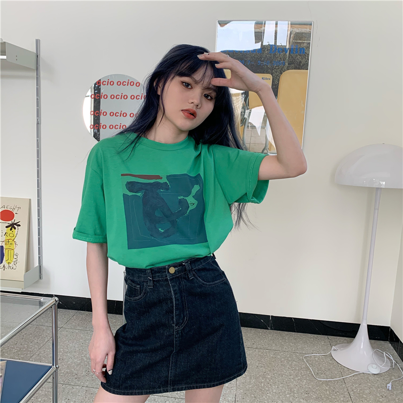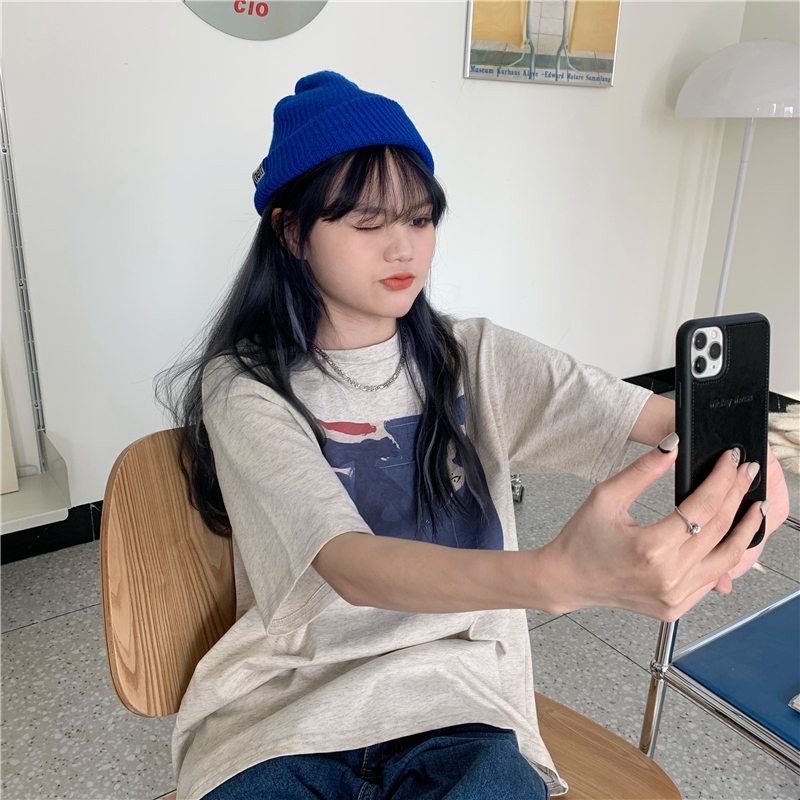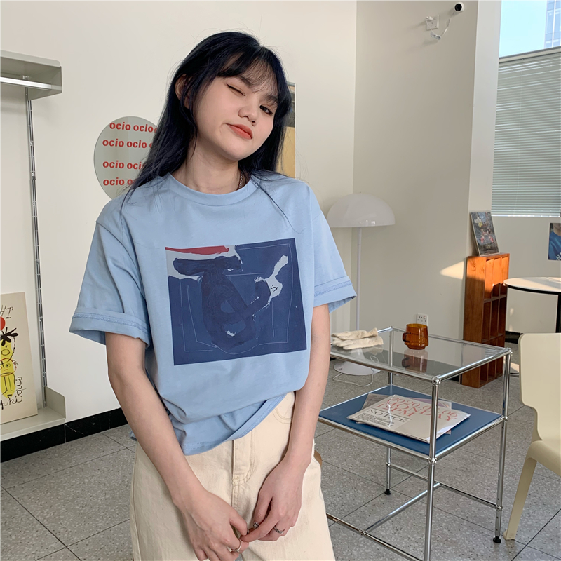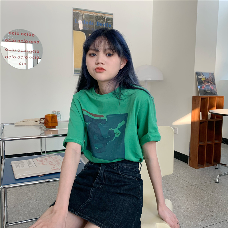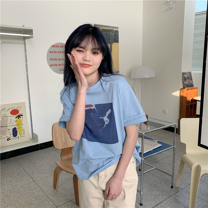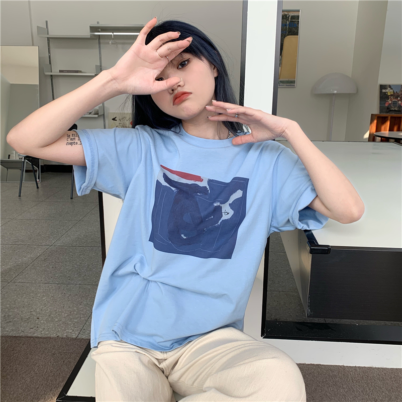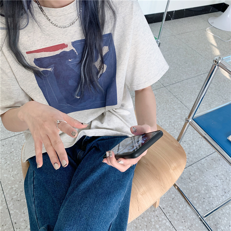 实拍实价 复古基础宽松印花上衣圆领短袖t恤