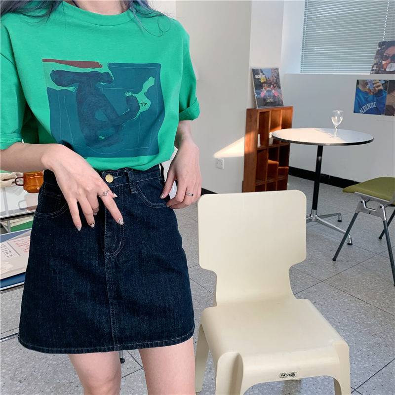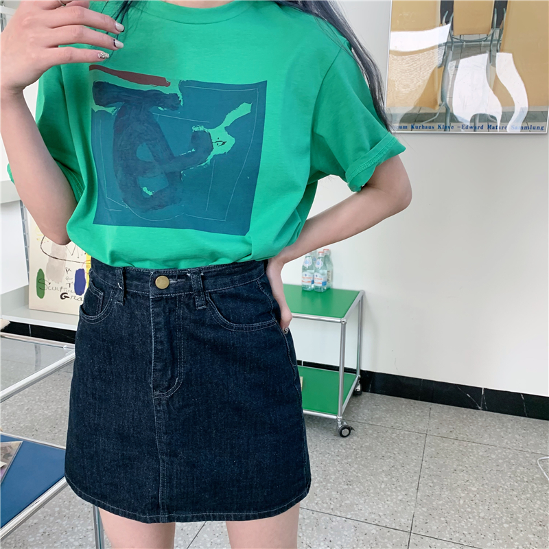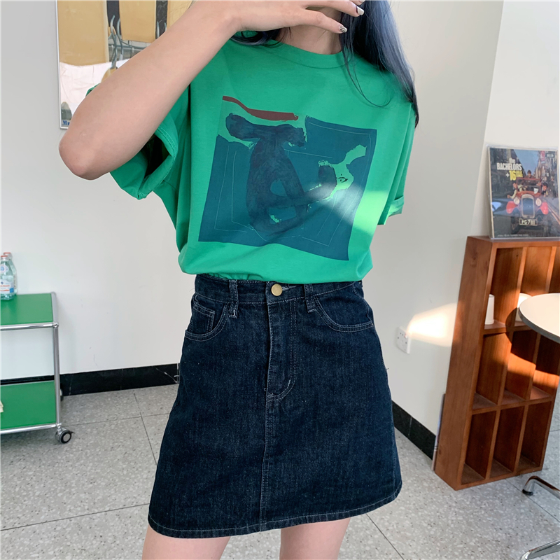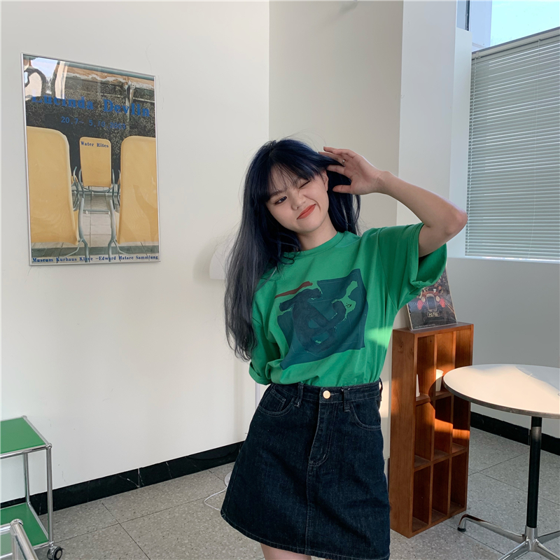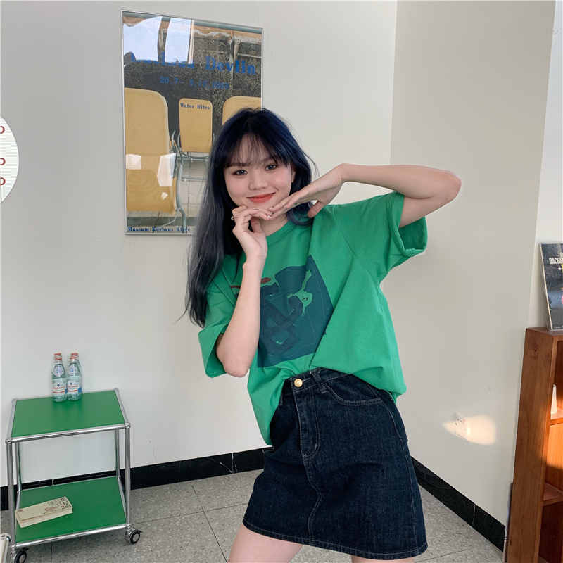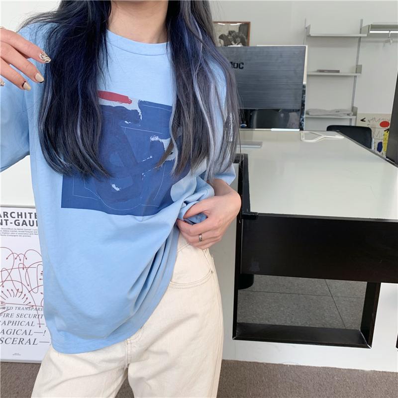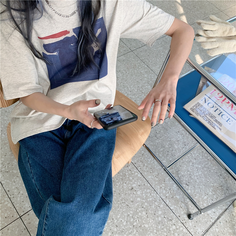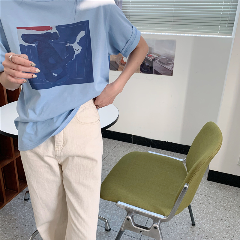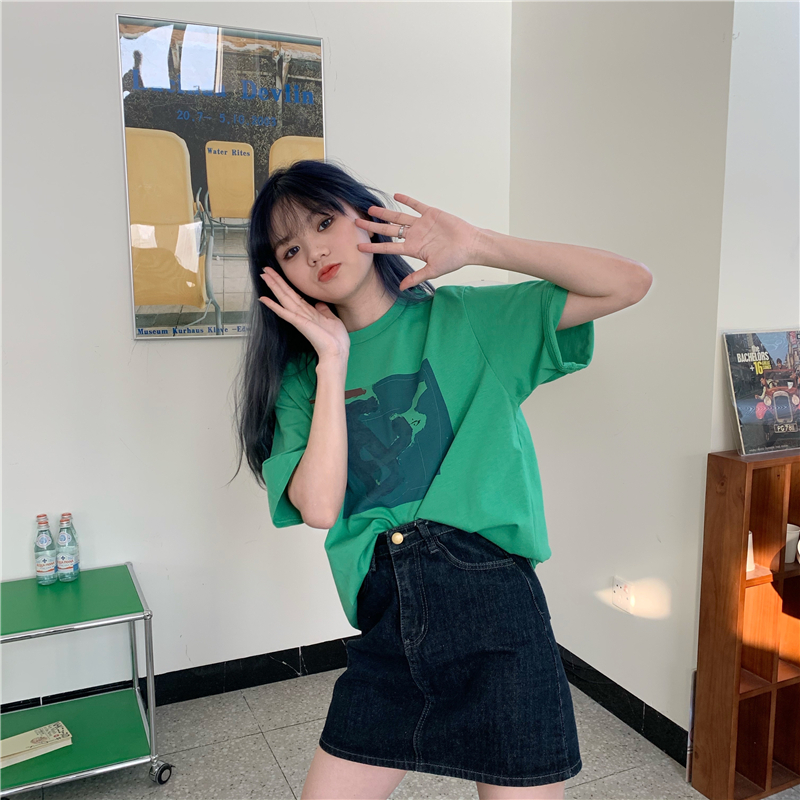 实拍实价 复古基础宽松印花上衣圆领短袖t恤