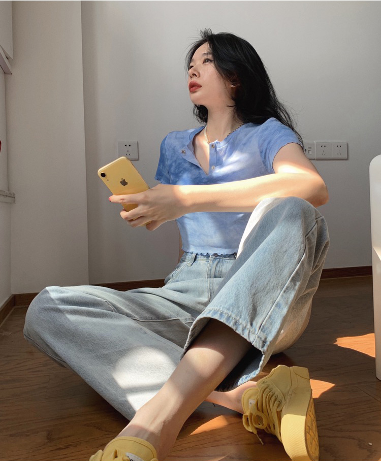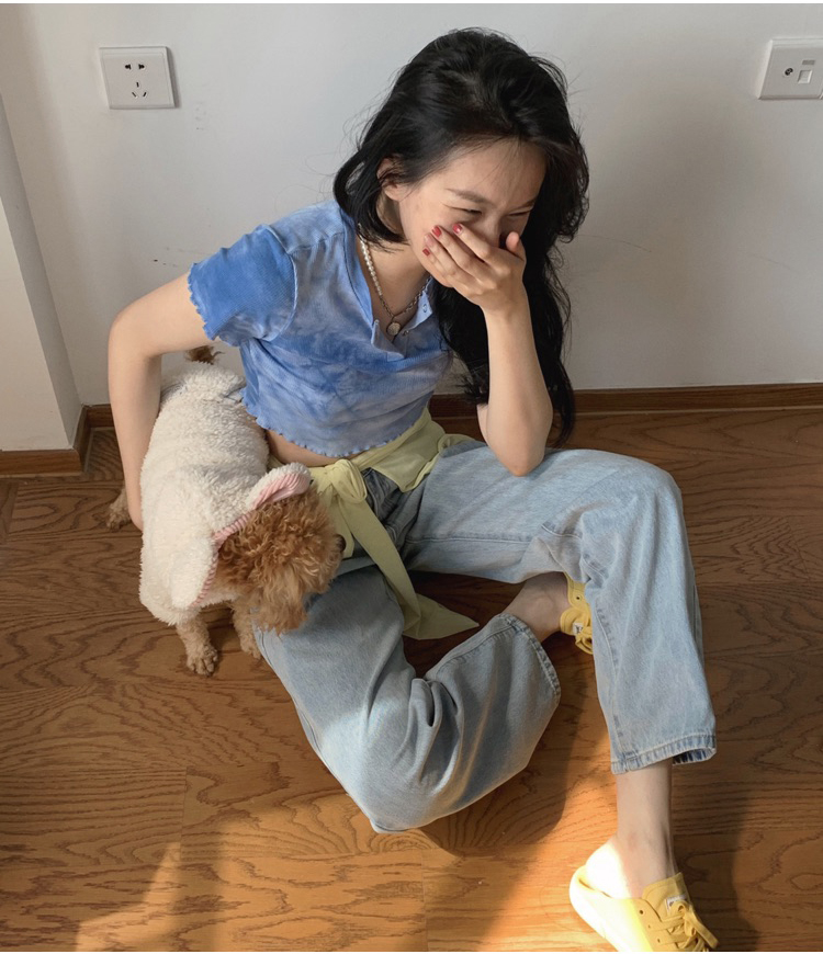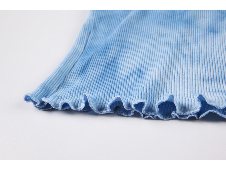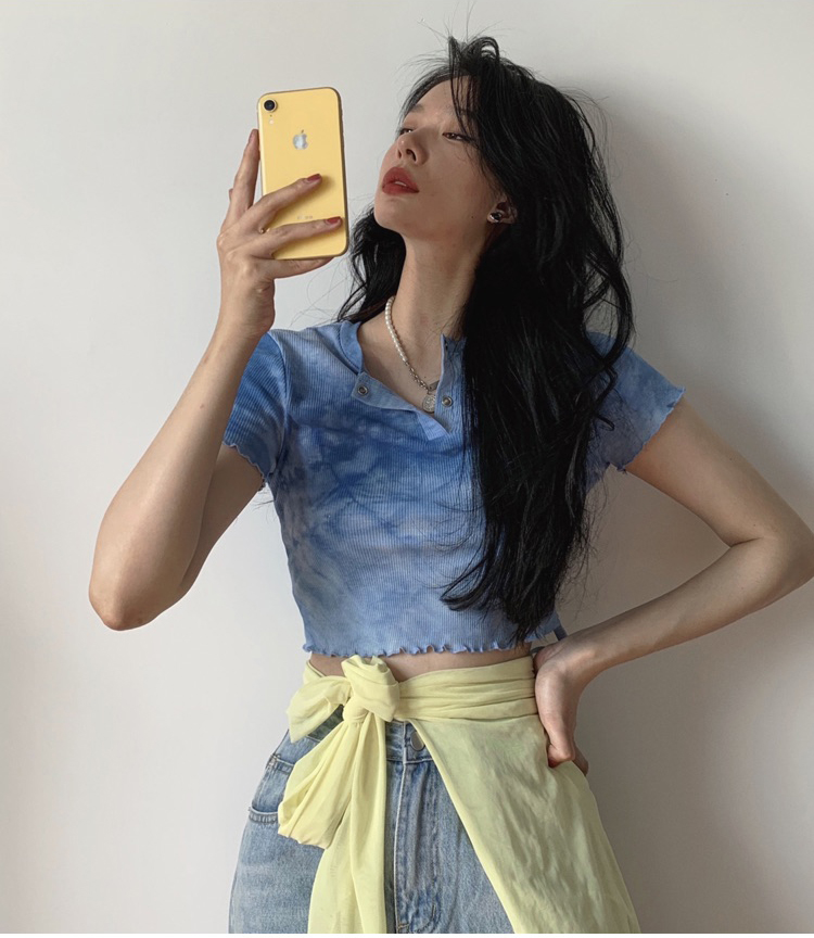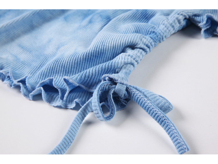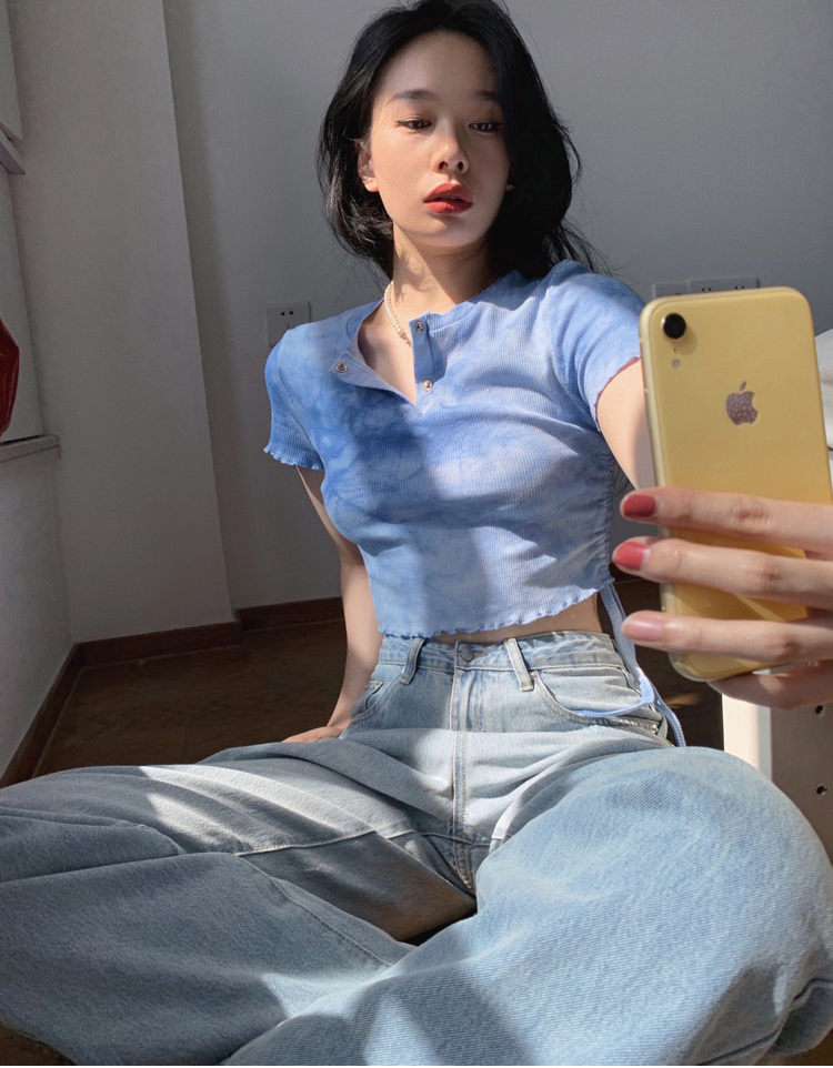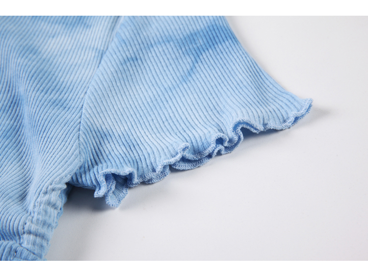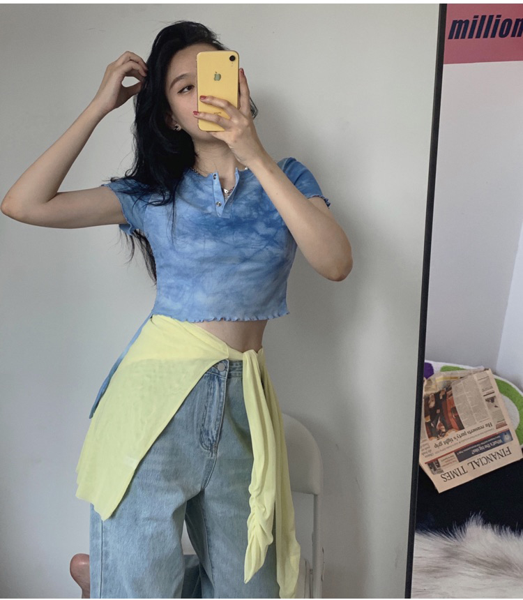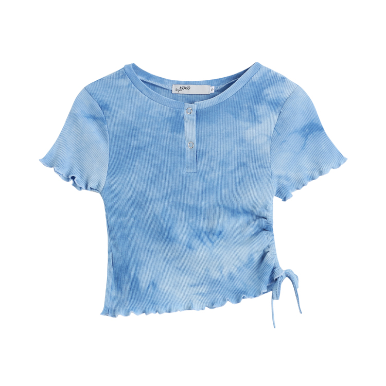 实拍 辣妹短抽褶上衣女扎染设计感高腰露脐网红炸街短袖T恤ins潮