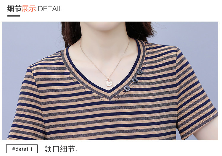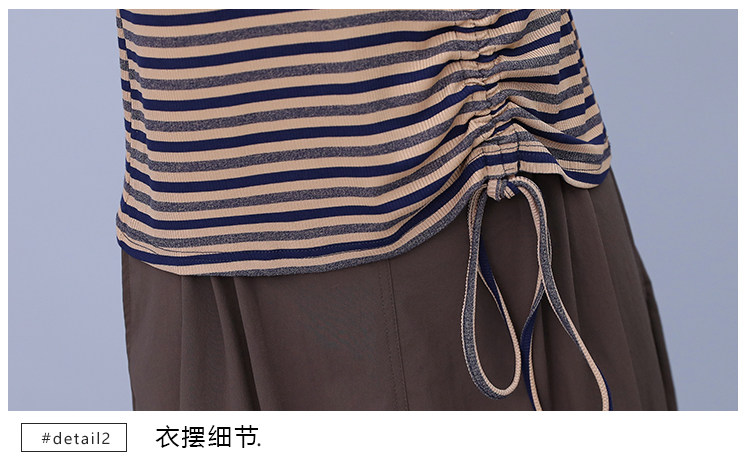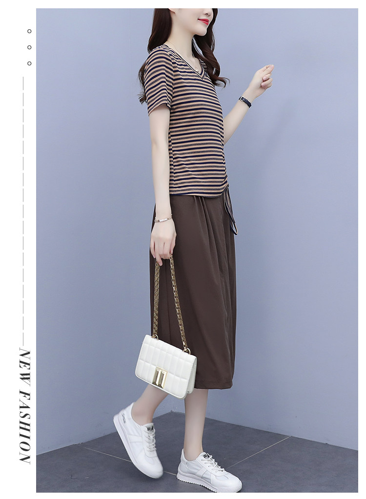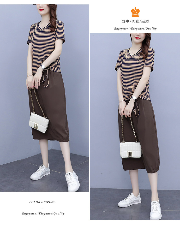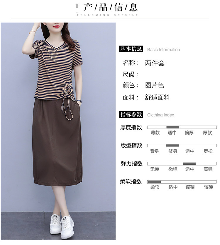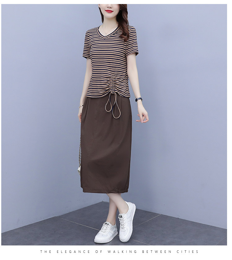 时尚套装裙女休闲2021夏装新款韩版条纹短袖洋气减龄两件套棉裙子