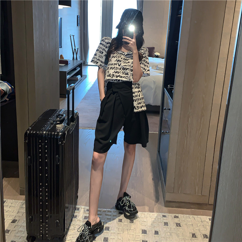 SIZE INFO (因人工测量,可能存在1~3cm误差,敬请谅解) 上衣 : 衣长61 胸围104 肩宽43 袖长21 裤子 : 腰围60-72(魔术贴) 裤长51