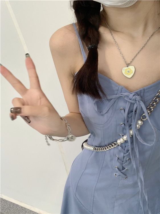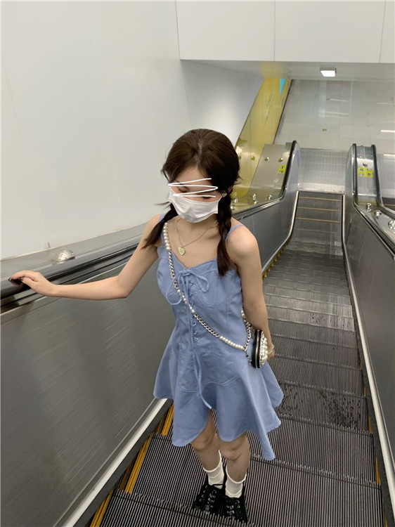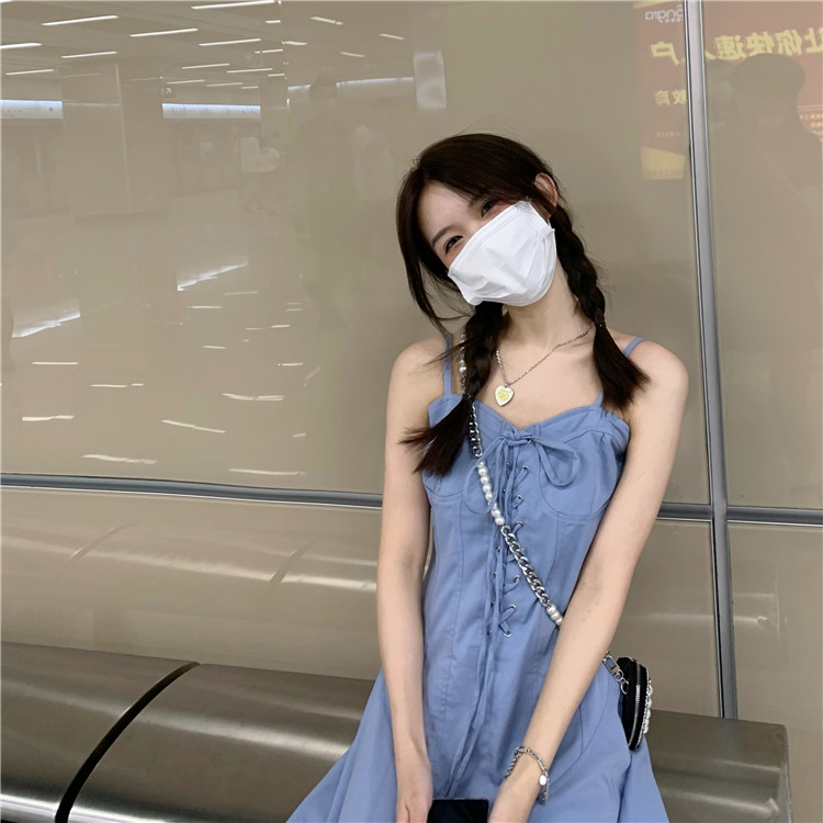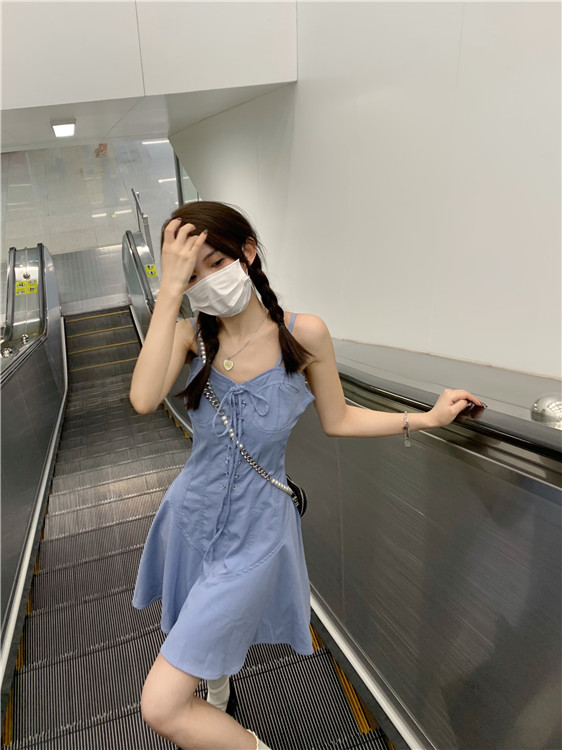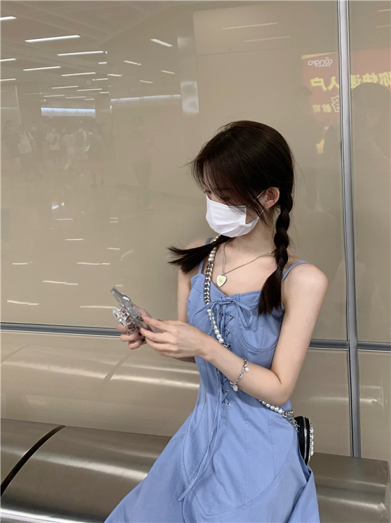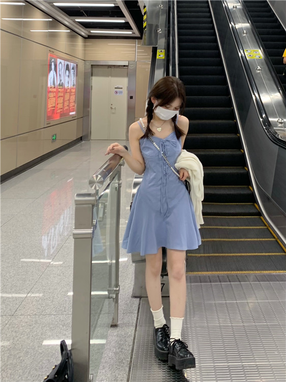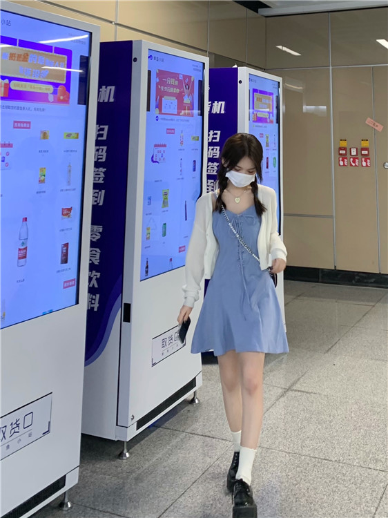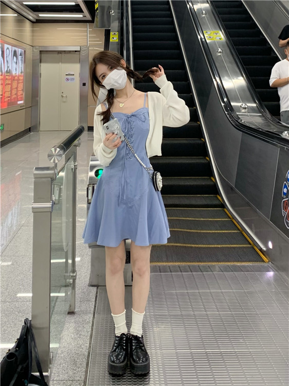 实价实拍 实拍 v领法式初恋甜吊带裙+白色短款针织开衫
