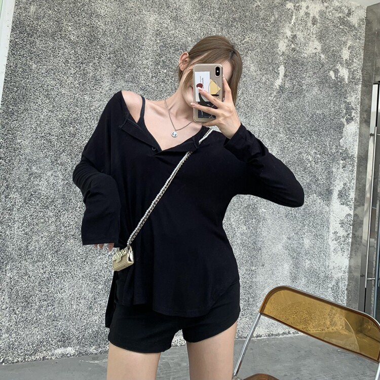 面料: 薄棉 颜色:白色 黑色 灰色 均码尺寸:上衣 衣长65CM 胸围104-160CM 袖长连肩70CM 短裤 :S 裤长30CM 腰围62-82CM 臀围80-108CM M 裤长31CM 腰围66-86CM 臀围84-112CM (手工测量准许1-3误差)