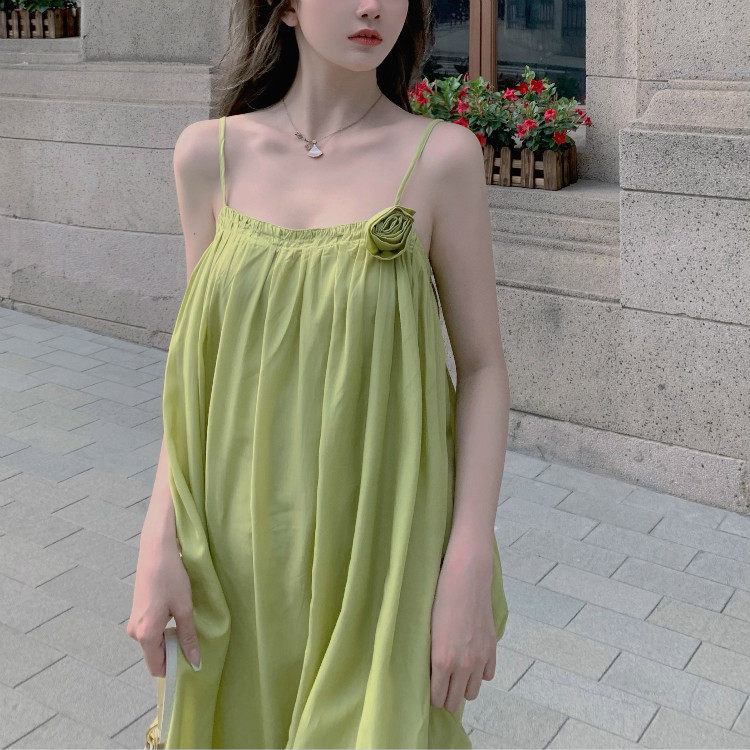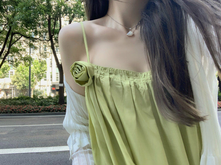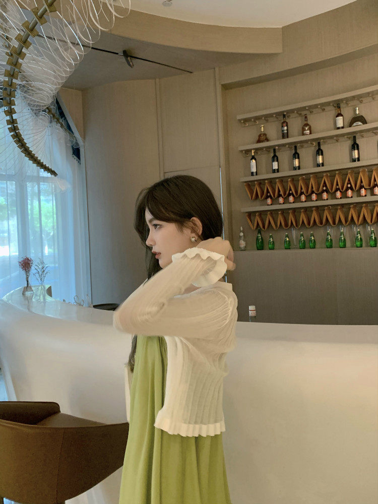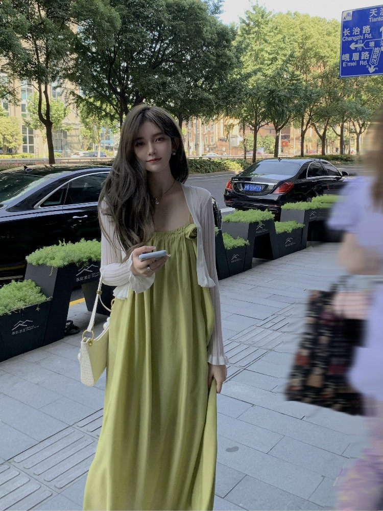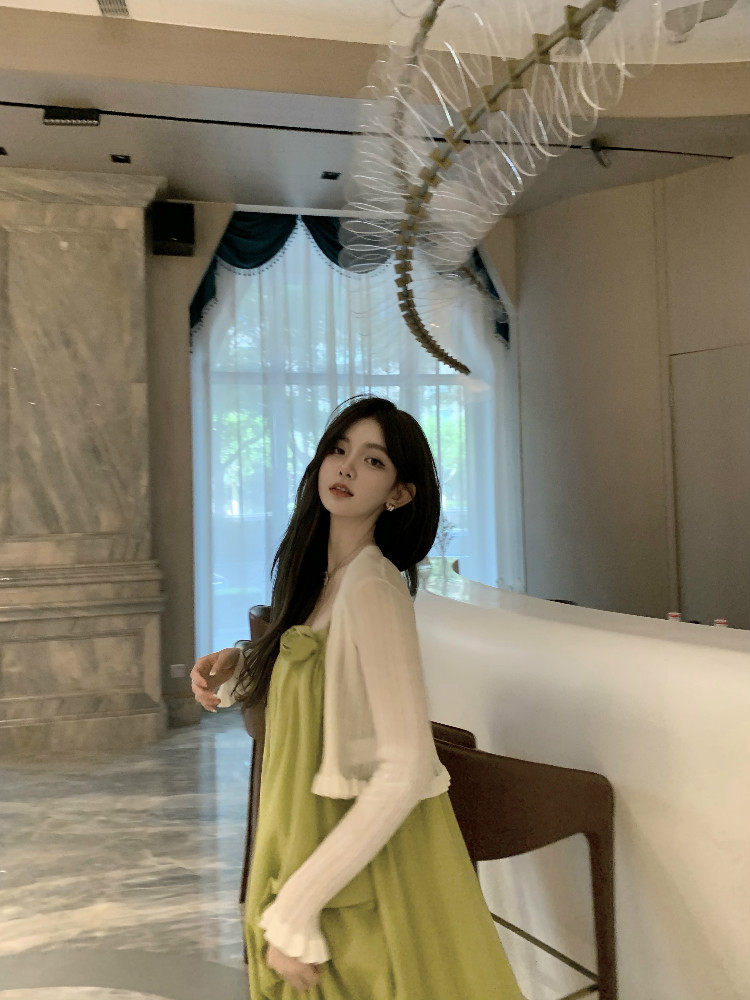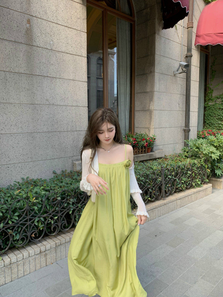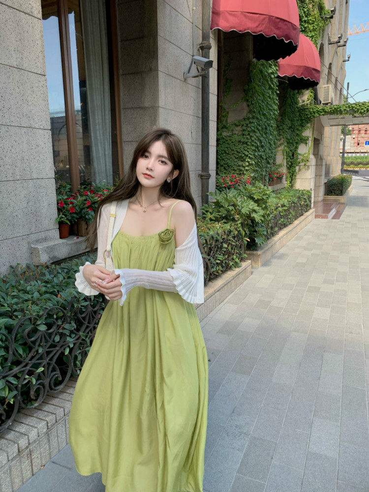 实价实拍 嫩绿山茶花连衣裙 冰丝防晒开衫