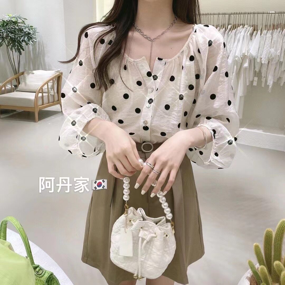 颜色分类:杏色波点上衣